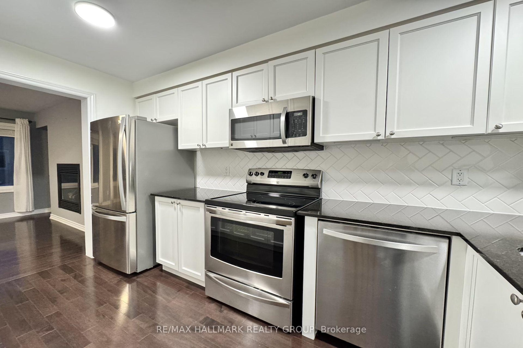 Nestled in one of Kanata's most sought-after communities, this stylish townhome offers the perfect blend of comfort and sophistication. The main floor features a family room with a walkout to the fully fenced backyard, complete with a cozy pergola and a large deck. The second level welcomes you with a bright living room, rich hardwood floors, and large windows that flood the space with natural light. The modern kitchen boasts quartz countertops, ample cabinetry, and stainless steel appliances, opening seamlessly to the sunlit dining area. Gleaming hardwood floors and abundant natural light create a warm, inviting atmosphere throughout. Upstairs, the spacious primary bedroom, two additional bedrooms, and a full bath complete the third level. Conveniently located near top-rated schools, parks, trails, shopping, restaurants, transit, and major highways. This stunning townhome truly has it all. Style, function, and location come together beautifully. Don't miss your chance to call it home!