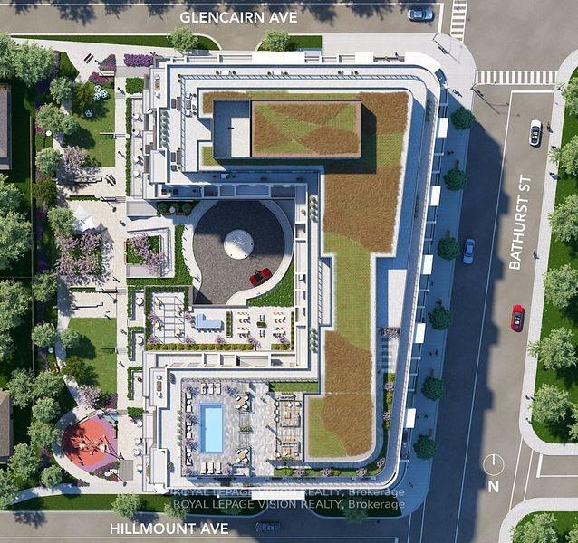 Live at one of the most luxurious buildings in Toronto managed by The Forest Hill Group. This one of one floorplan overlooks the outdoor BBQ lounge common area with direct from the unit Terrace gate access. North facing new never lived in One bedroom and seperate room den 932 sq ft per builders floorplan plus terrace, one parking spot, one locker, all engineered hardwood / ceramic / porcelian floors, ( no carpet ), marble tub wall tile in washroom, upgraded stone counters, upgraded stone kitchen backsplash, upgraded kitchen cabinets, upgraded Miele Appliances. Next door to Bialik Hebrew Day School and Synagogue, building and amenities under construction to be completed in Spring 2026, 23 room hotel on site ( $ fee ), 24 hr room service ( $ fee ), restaurant ( $ fee ) and other ground floor retail - to be completed by end of 2026, Linear park from Glencairn to Hillmount - due in 2027. Landlord will consider longer than 1 year lease term.
