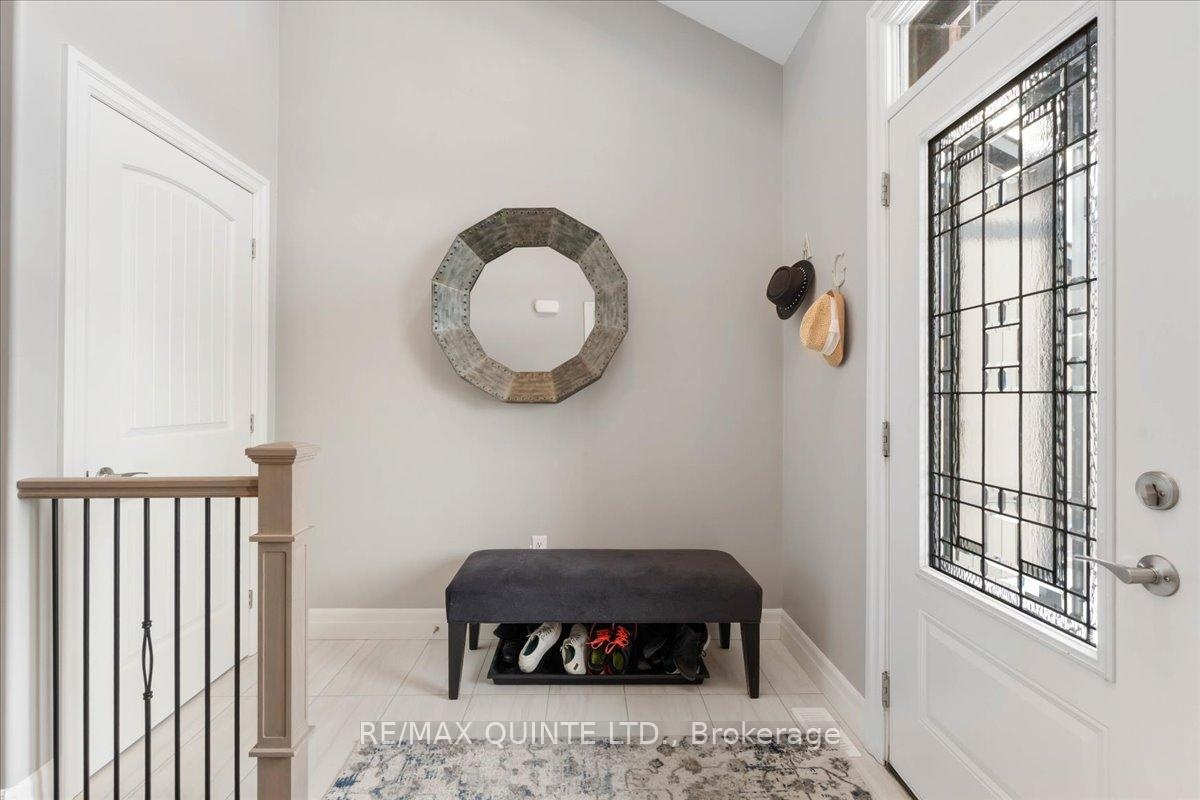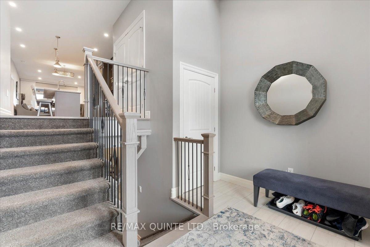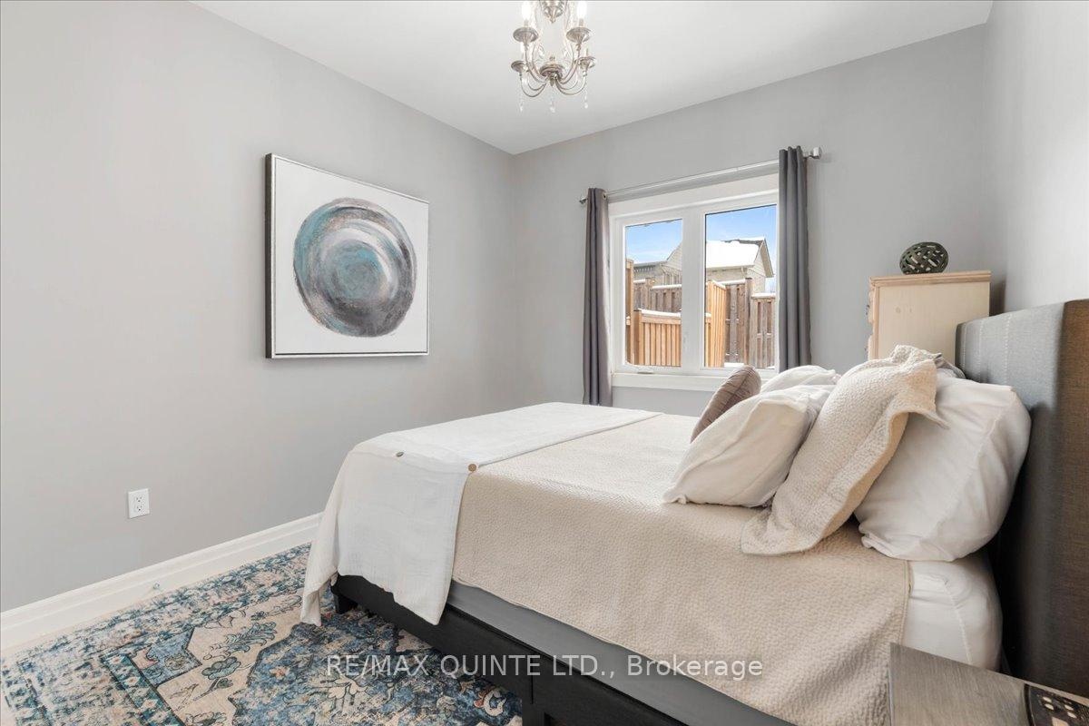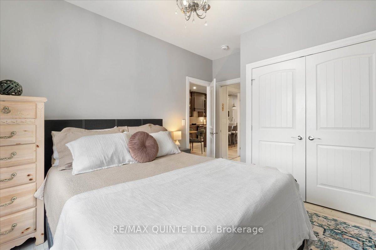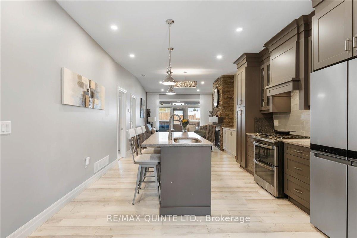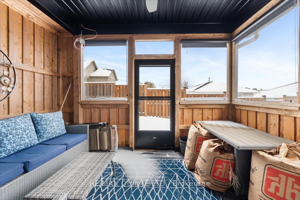 Modern Comfort Meets Country Calm in Stirling. Welcome to this stunning end-unit townhome-a rare find tucked into a quiet cul-de-sac surrounded by nature and beautiful views of the Oak Hills. Thoughtfully upgraded and meticulously maintained, this home blends modern convenience with peaceful, easy living just minutes from all Belleville and Quinte West amenities while taking in the small town charm and history in Stirling. You will notice the impressive curb appeal, with a paved driveway offering parking for four vehicles and inside entry to a fully finished garage-complete with its own water spout for easy cleaning. Step inside to a spacious foyer and an open-concept main floor with warm finishes and natural light throughout. The designer kitchen features ceiling-height cabinetry, a central island, and a built-in buffet. Enjoy extended space for entertaining during holiday meals that flows seamlessly into the dining area-perfect for gatherings. The living room features a vaulted ceiling, a cozy gas fireplace with stone surround, and large patio doors leading to a screened-in sunroom where you can unwind and take in the panoramic views. The primary bedroom offers a spa-inspired semi-ensuite with heated floors, a deep soaker tub, and a tiled glass shower. A separate den or guest room sits conveniently beside the main bath-ideal for a home office. Downstairs, the fully finished lower level offers a spacious rec room, a second built-in buffet perfect for a coffee or cocktail bar, a large guest bedroom with walk-in closet, and a full 3-pc bath. Extra features include a Kohler generator, tankless water heater (owned), gas BBQ hookup, Levolor blinds water softener and backup hydro to the garage door-plus a partially fenced yard for added privacy. Move-in ready and filled with thoughtful upgrades, this home offers the best of low-maintenance living in a quiet, sought-after Stirling neighbourhood.