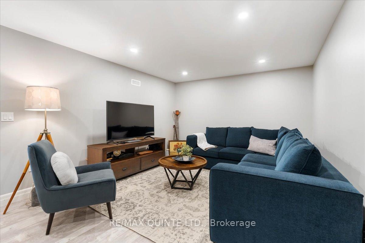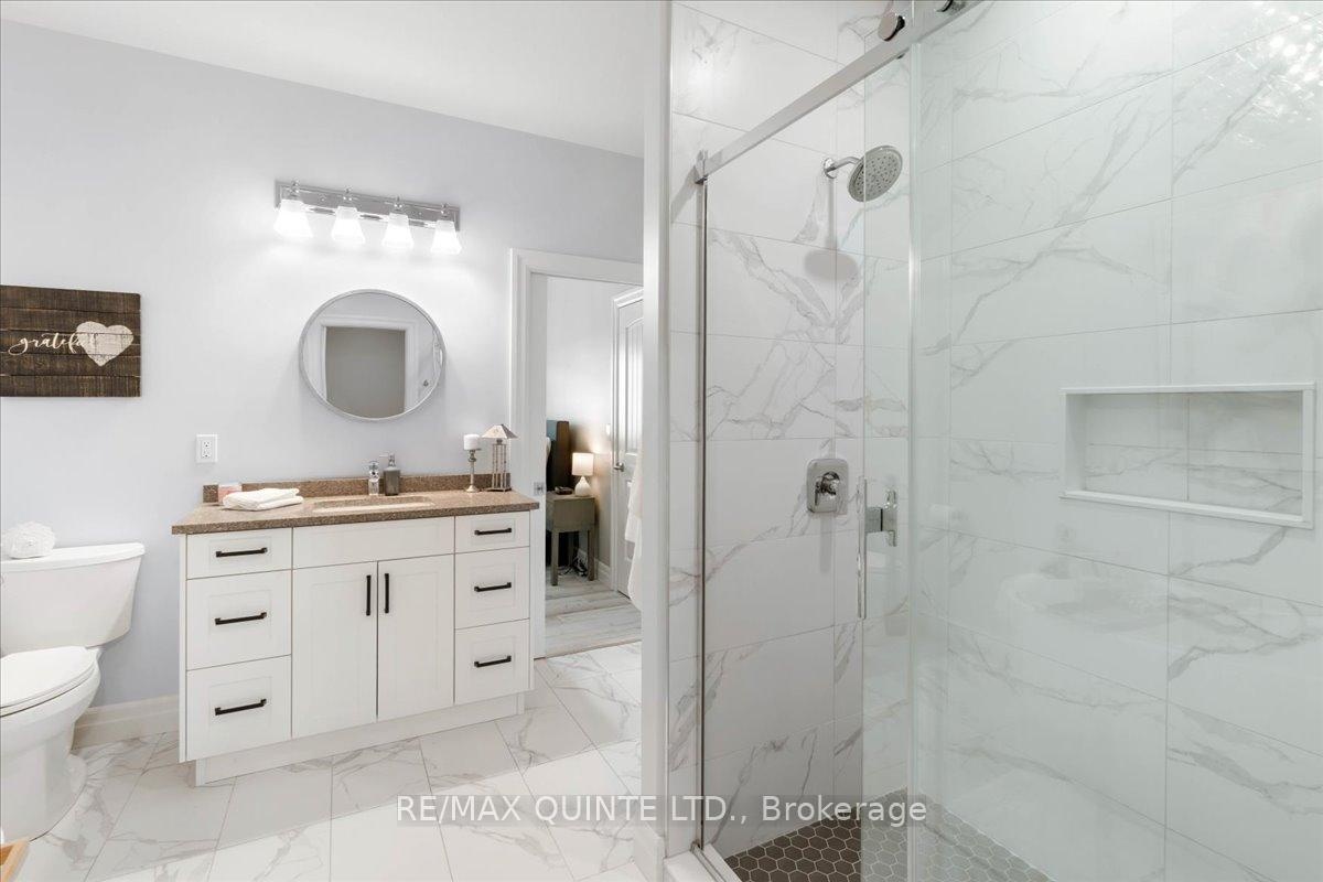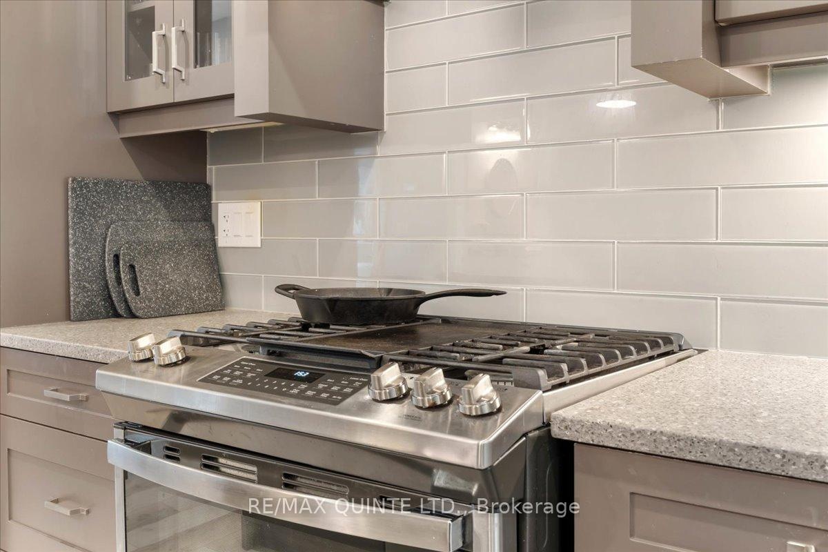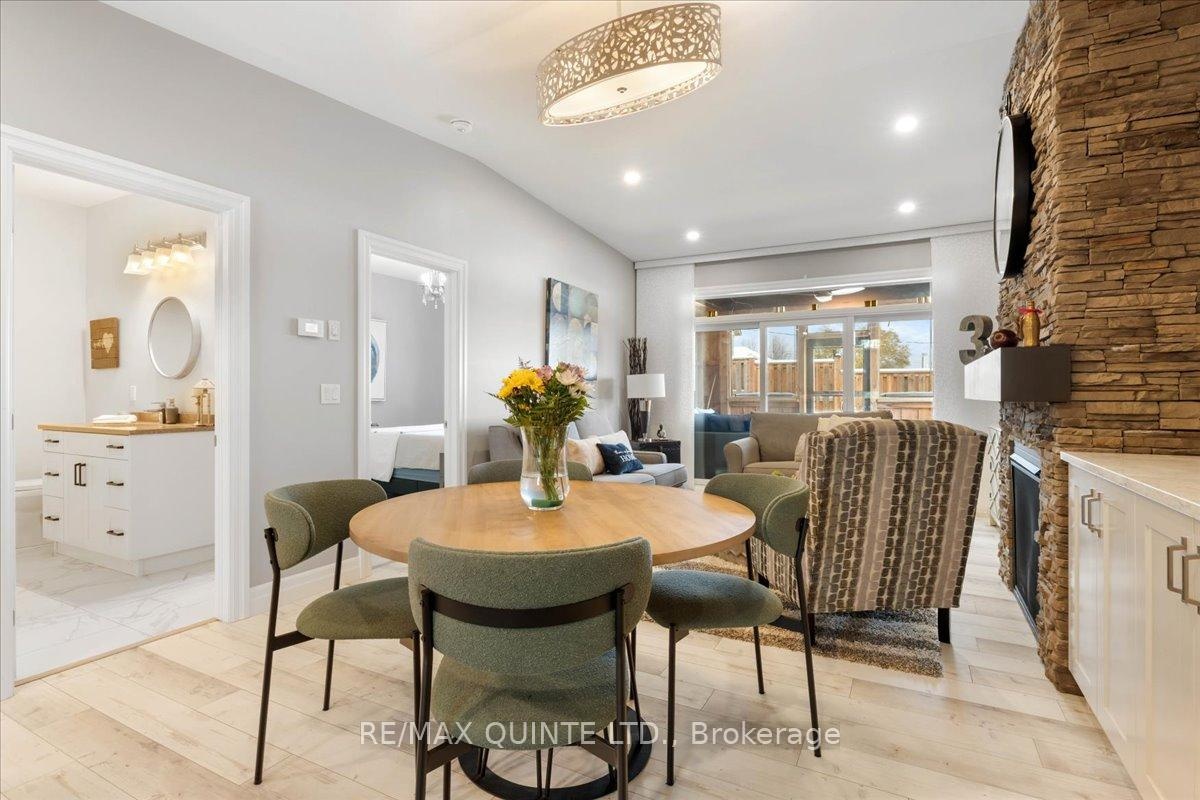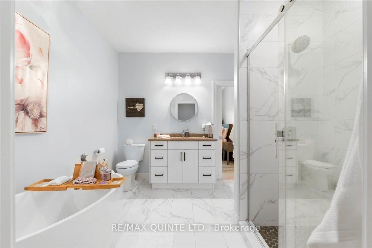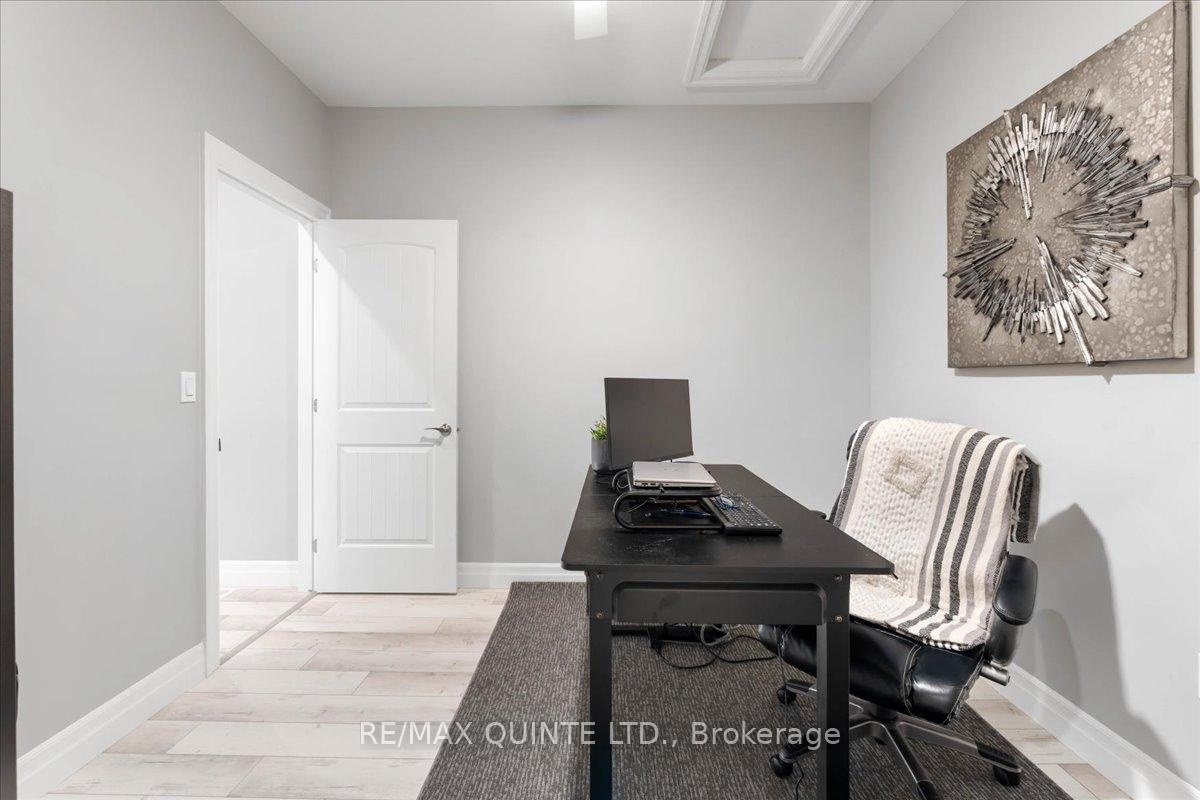 Modern Comfort Meets Country Calm in Stirling. Welcome to this stunning end-unit townhome-a rare find tucked into a quiet cul-de-sac surrounded by nature and beautiful views of the Oak Hills. Thoughtfully upgraded and meticulously maintained, this home blends modern convenience with peaceful, easy living just minutes from all Belleville and Quinte West amenities while taking in the small town charm and history in Stirling. You will notice the impressive curb appeal, with a paved driveway offering parking for four vehicles and inside entry to a fully finished garage-complete with its own water spout for easy cleaning. Step inside to a spacious foyer and an open-concept main floor with warm finishes and natural light throughout. The designer kitchen features ceiling-height cabinetry, a central island, and a built-in buffet. Enjoy extended space for entertaining during holiday meals that flows seamlessly into the dining area-perfect for gatherings. The living room features a vaulted ceiling, a cozy gas fireplace with stone surround, and large patio doors leading to a screened-in sunroom where you can unwind and take in the panoramic views. The primary bedroom offers a spa-inspired semi-ensuite with heated floors, a deep soaker tub, and a tiled glass shower. A separate den or guest room sits conveniently beside the main bath-ideal for a home office. Downstairs, the fully finished lower level offers a spacious rec room, a second built-in buffet perfect for a coffee or cocktail bar, a large guest bedroom with walk-in closet, and a full 3-pc bath. Extra features include a Kohler generator, tankless water heater (owned), gas BBQ hookup, Levolor blinds water softener and backup hydro to the garage door-plus a partially fenced yard for added privacy. Move-in ready and filled with thoughtful upgrades, this home offers the best of low-maintenance living in a quiet, sought-after Stirling neighbourhood.