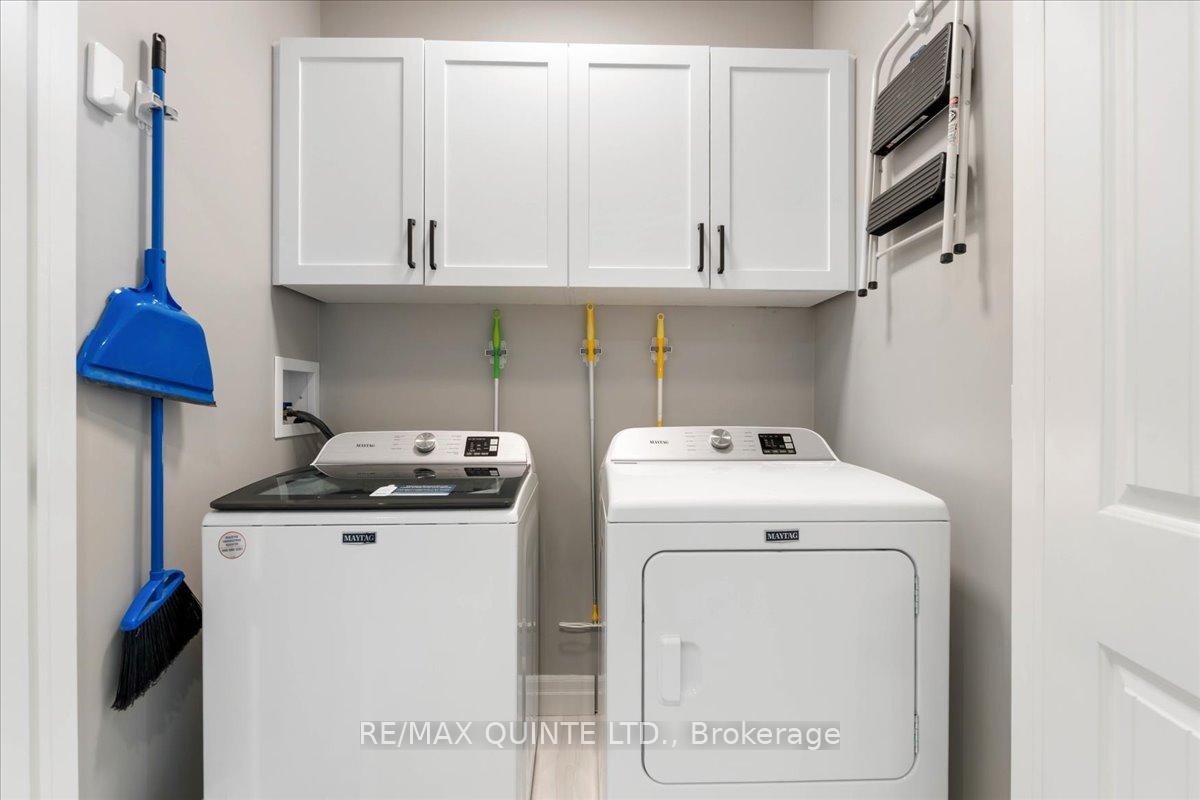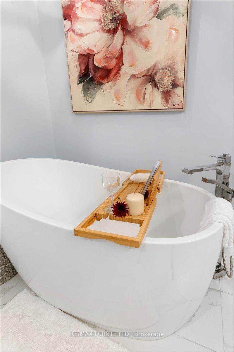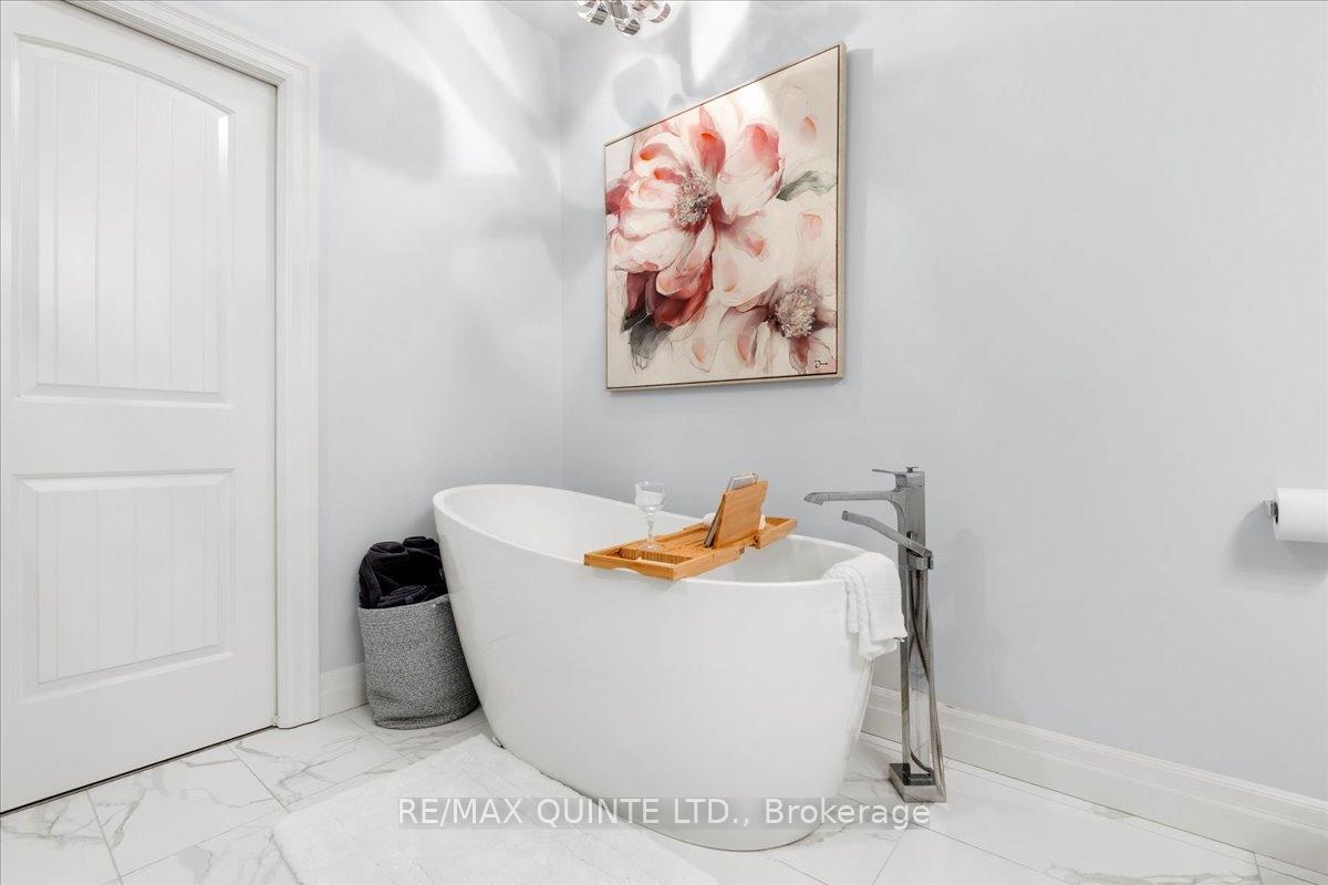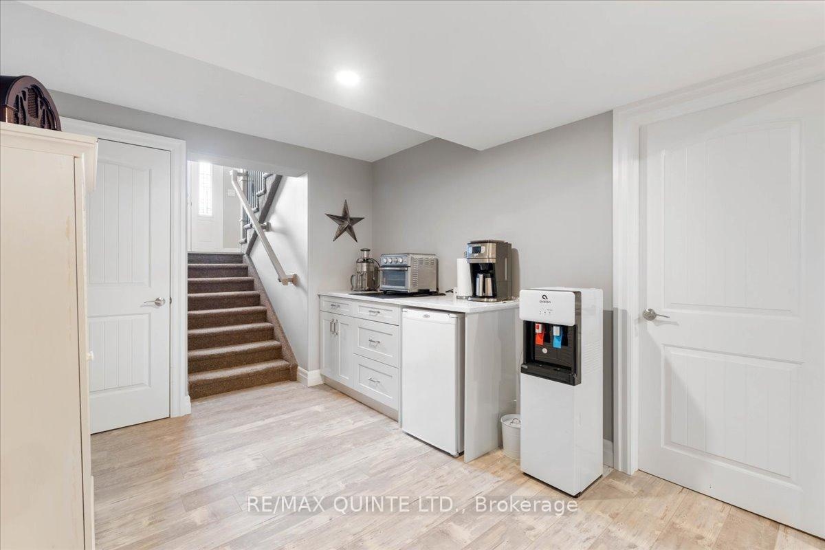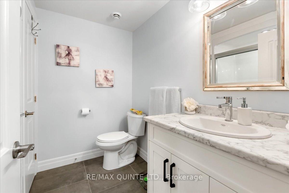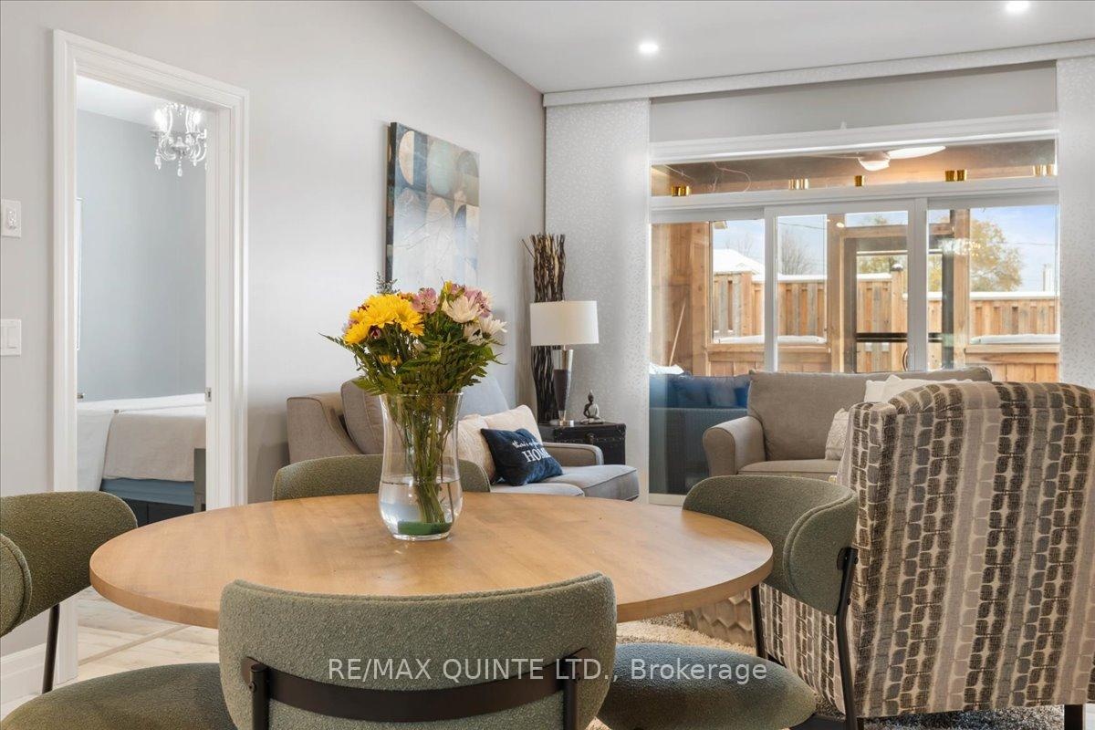 Modern Comfort Meets Country Calm in Stirling. Welcome to this stunning end-unit townhome-a rare find tucked into a quiet cul-de-sac surrounded by nature and beautiful views of the Oak Hills. Thoughtfully upgraded and meticulously maintained, this home blends modern convenience with peaceful, easy living just minutes from all Belleville and Quinte West amenities while taking in the small town charm and history in Stirling. You will notice the impressive curb appeal, with a paved driveway offering parking for four vehicles and inside entry to a fully finished garage-complete with its own water spout for easy cleaning. Step inside to a spacious foyer and an open-concept main floor with warm finishes and natural light throughout. The designer kitchen features ceiling-height cabinetry, a central island, and a built-in buffet. Enjoy extended space for entertaining during holiday meals that flows seamlessly into the dining area-perfect for gatherings. The living room features a vaulted ceiling, a cozy gas fireplace with stone surround, and large patio doors leading to a screened-in sunroom where you can unwind and take in the panoramic views. The primary bedroom offers a spa-inspired semi-ensuite with heated floors, a deep soaker tub, and a tiled glass shower. A separate den or guest room sits conveniently beside the main bath-ideal for a home office. Downstairs, the fully finished lower level offers a spacious rec room, a second built-in buffet perfect for a coffee or cocktail bar, a large guest bedroom with walk-in closet, and a full 3-pc bath. Extra features include a Kohler generator, tankless water heater (owned), gas BBQ hookup, Levolor blinds water softener and backup hydro to the garage door-plus a partially fenced yard for added privacy. Move-in ready and filled with thoughtful upgrades, this home offers the best of low-maintenance living in a quiet, sought-after Stirling neighbourhood.