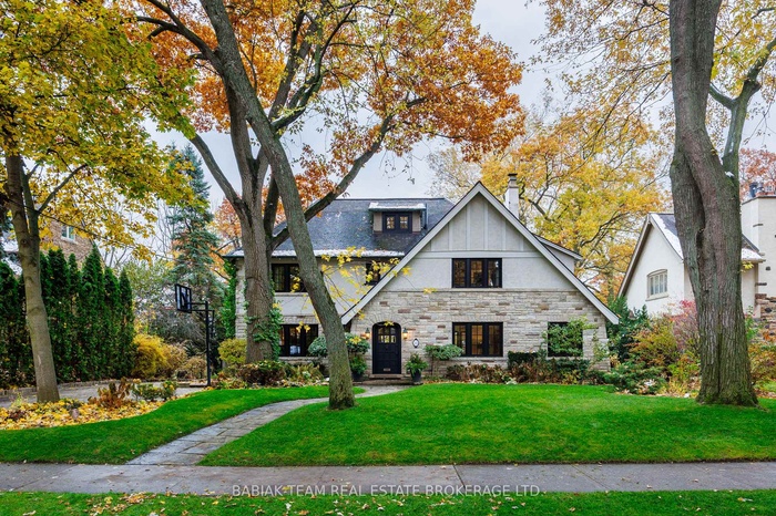 Majestic 6 +1 bedroom residence, set on a spectacular 75' x 190' Muskoka-like ravine lot in the heart of prestigious Baby Point! This property of distinction offers the discerning buyer an impressive combination of features including grand principal rooms, a luxurious saltwater pool, an oversized heated garage with indoor parking for 3 cars, and an expansive show-stopping great room with meticulous architectural details. Featured in Style At Home, this extraordinary property has been carefully renovated and designed with great care and attention to detail. Centre hall foyer open to elegant living and dining rooms with sublime windows on multiple sides and treed views. Chef's kitchen with adjoining breakfast room and floor-to-ceiling sliding glass doors to resort-like outdoor living with covered stone patio with barbecue area, marvelous fiberglass pool with automatic cover and adjacent composite deck, lower patio with gas fire table, and private ravine views on all levels. Main floor office and powder room. Built above the garage but connected through the main house, the sensational great room designed by Brian McCourt Designs boasts a vaulted ceiling, gas fireplace with soapstone mantel, impeccable custom millwork throughout with built-in office and wet bar, balcony overlooking ravine, delightful 3-piece bath, and separate gym. The second level includes a wonderful primary bedroom retreat with captivating ravine vistas, balcony, custom dressing room, and a hotel-inspired 5-piece spa bathroom. Three additional lofty bedrooms are located on this level, together with a 4-piece family bath. The third level includes two more bedrooms, two walk-in closets, and another full bathroom. Rounding out this exceptional offering the lower level includes a large recreation room, laundry and mudroom with custom cubbies, separate entry, seventh bedroom, lovely 3-piece bath, and storage room. Extensively landscaped with irrigation, fabulous plantings, and an abundance of parking.