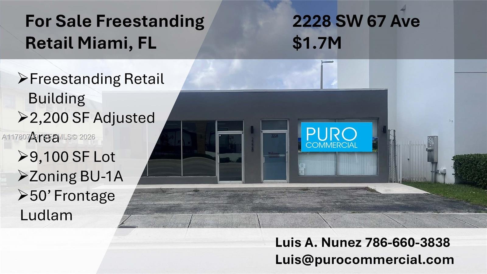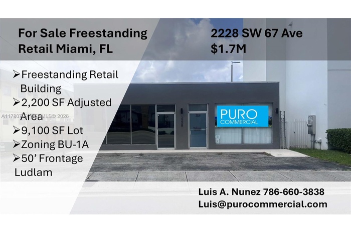 Excellent opportunity to own a freestanding retail property in a highly desirable Miami location. This property features 50 feet of frontage on Ludlam (67th Ave), offering strong visibility and accessibility.