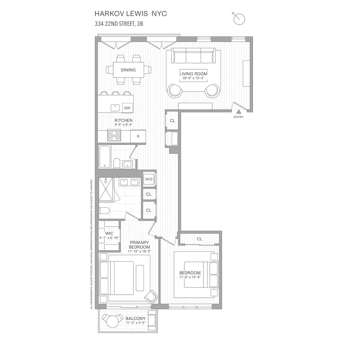 Set on a quiet, tree-lined block in Greenwood, Residence 3B at 334 22nd Street offers abundant space with 1251 interior square feet, modern design, ample natural light, and private outdoor space in a boutique condominium setting.