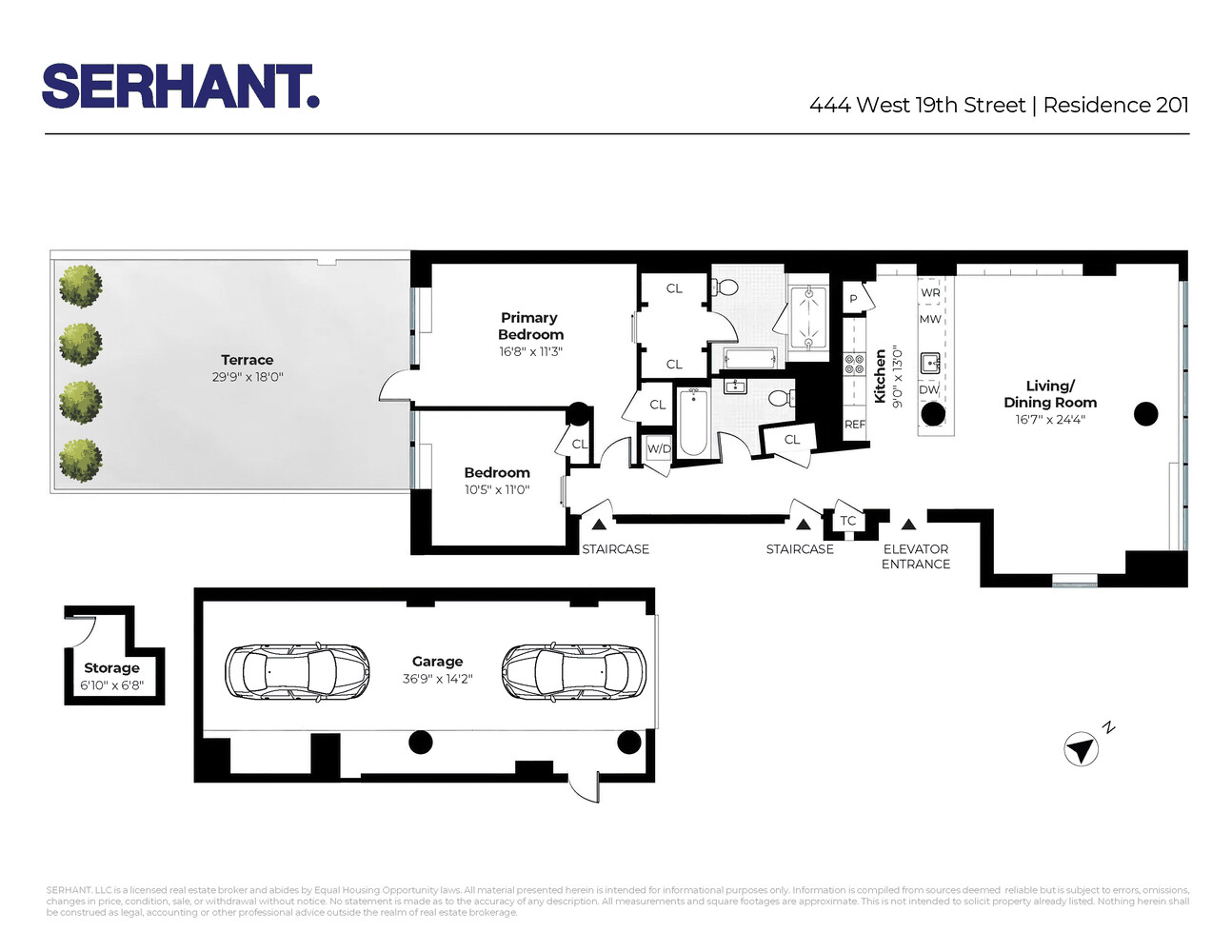 Welcome to Residence 201 at The Chelsea Club - a truly rare offering where privacy, space, and sophistication converge in the heart of West Chelsea. This two-bedroom, two-bathroom home is one of only a handful in Manhattan to feature a private two-car garage, direct keyed-elevator access, and a 530 SF private Terrace an ideal sanctuary for those who value discretion and understated luxury.