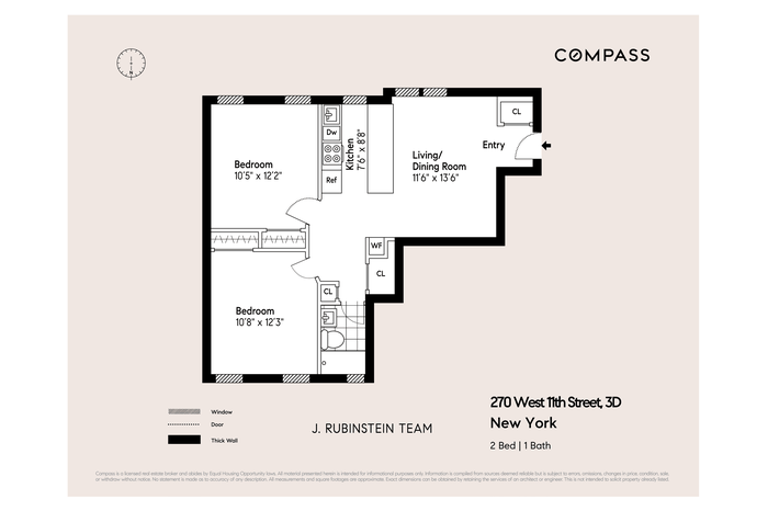 With generously proportioned bedrooms, high ceilings, a large living room, open kitchen, and windowed bath, this pristine West Village co-op offers a perfect two-bedroom home in a coveted downtown setting. Storage is abundant, with five closets thoughtfully distributed throughout the space. This apartment was completely renovated in 2020 and features beautiful natural hardwood floors, custom cabinetry and lighting, pristine quartzite countertops, meticulously restored pre-war exposed brick, a 24-bottle wine refrigerator, and an immaculate bathroom with an oversized shower. The home can also be sold furnished.