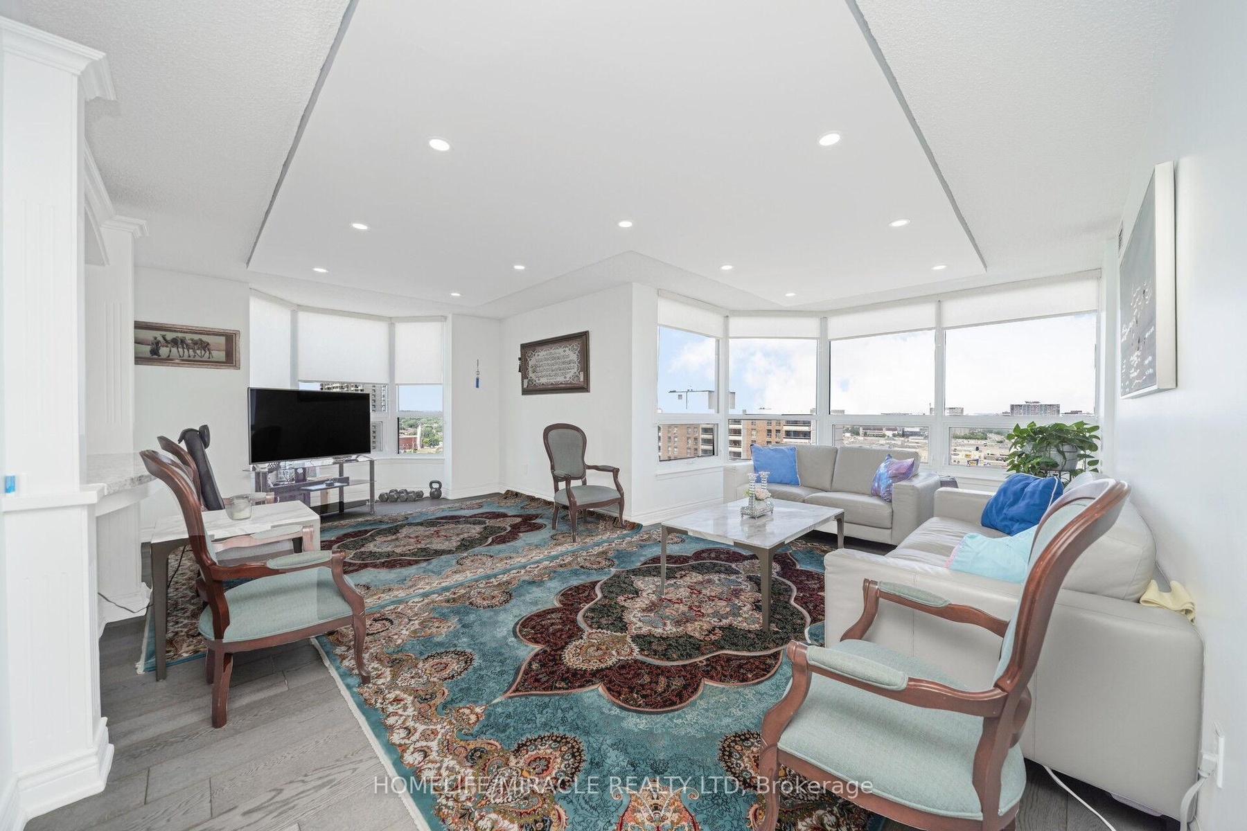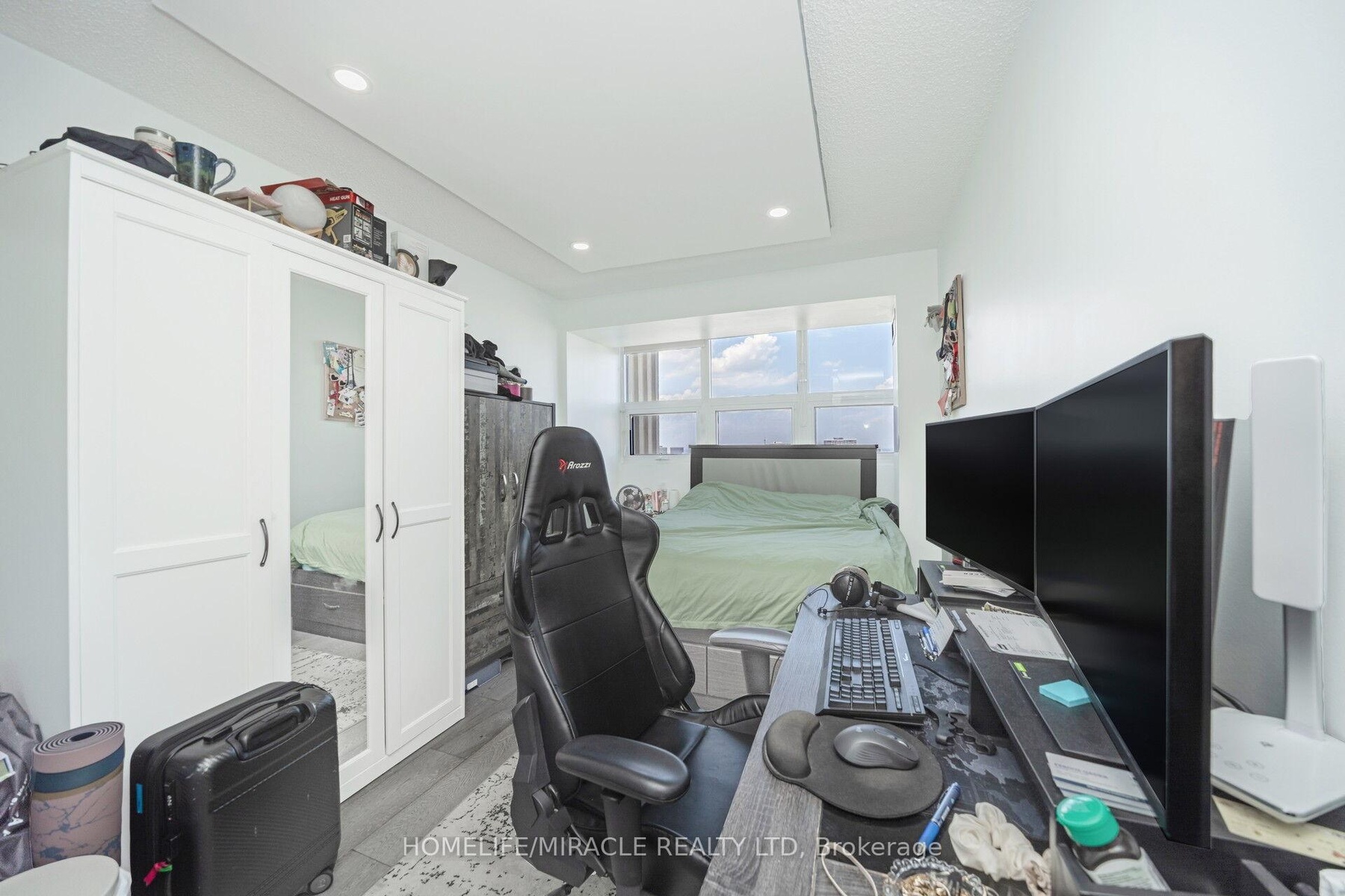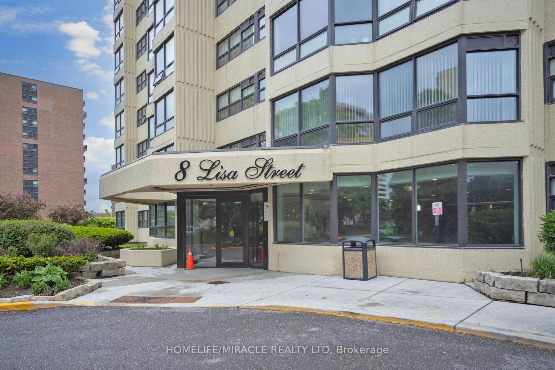 Welcome to Unit 1802 at 8 Lisa Street a beautifully renovated corner unit, move-in ready 2-bedroom, 2-bathroom condo with stunning open views. This spacious unit is fully renovated, features wide windows that flood the space with natural light and offers a large bedroom comfortable enough to fit a king-size bed plus additional furniture. Enjoy the convenience of in-suite laundry, a 4-piece bathroom, and included appliances. Two parking spots included for your ease. Located just minutes from the mall and highway, this home combines comfort with unbeatable access to shopping, dining, and commuting. Building amenities elevate your lifestyle with an indoor and outdoor pool, sauna, gym, party room, ping pong and billiards, and more. Don't miss this opportunity to live in a vibrant community with everything you need right at your fingertips!