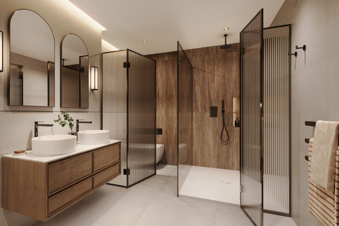Full-height Victorian windows flood living spaces with natural light, while underfloor heating, comfort cooling, and private terraces ensure year-round luxury.