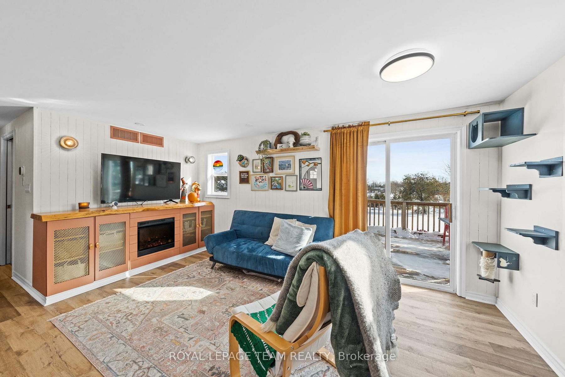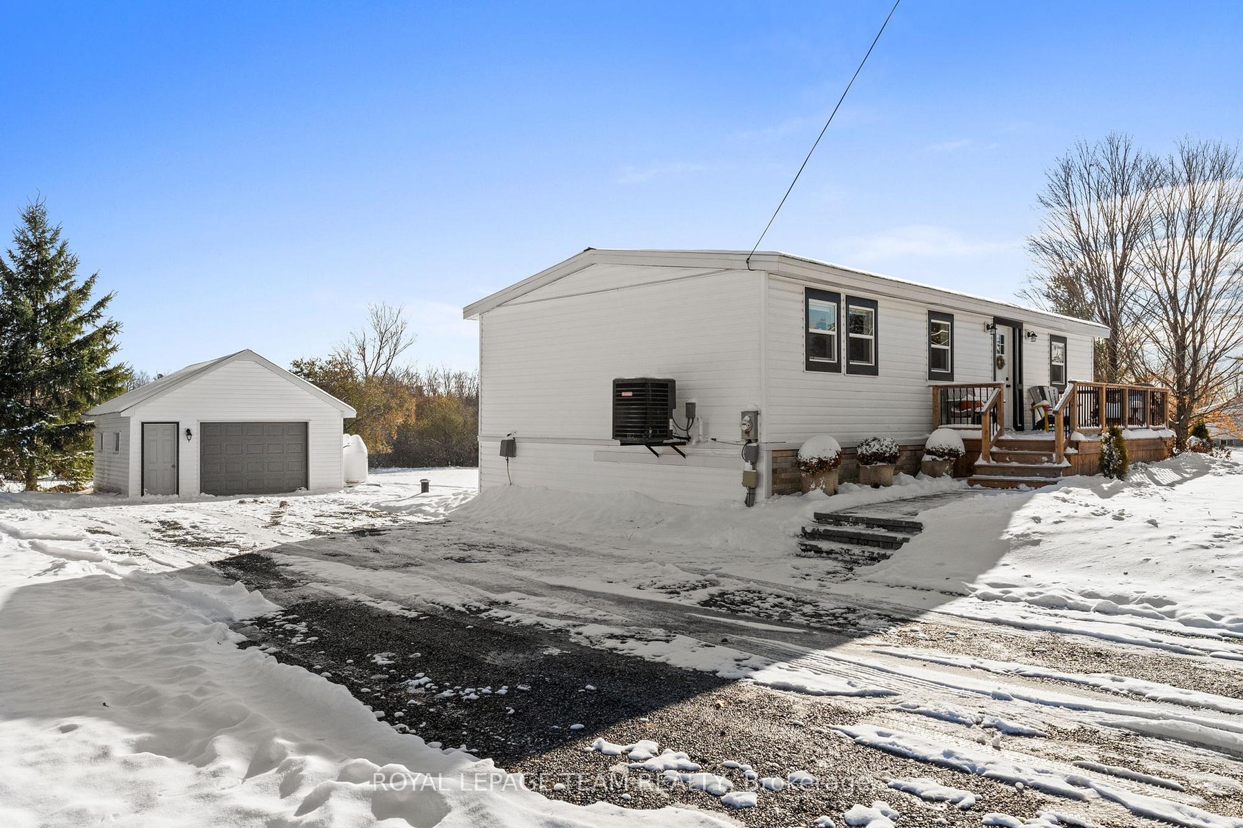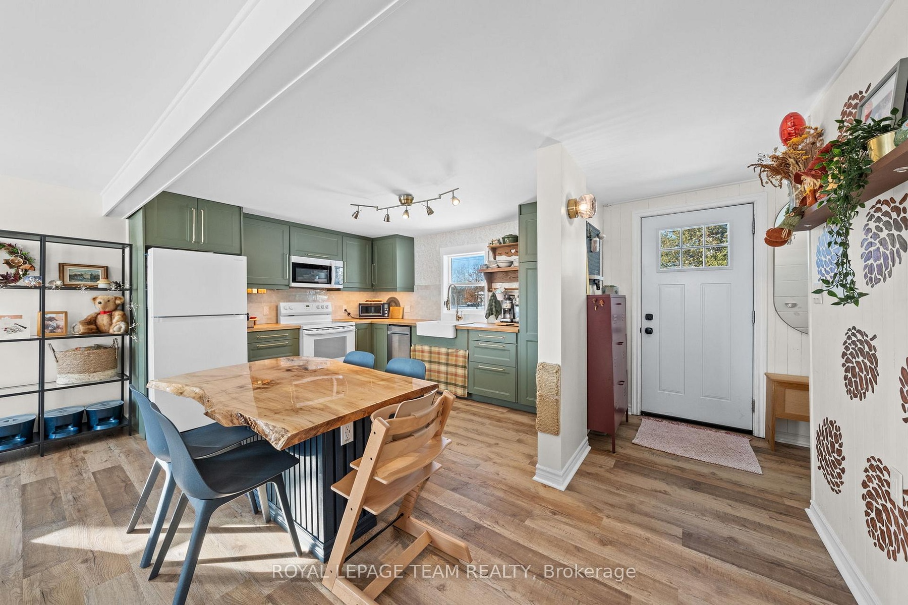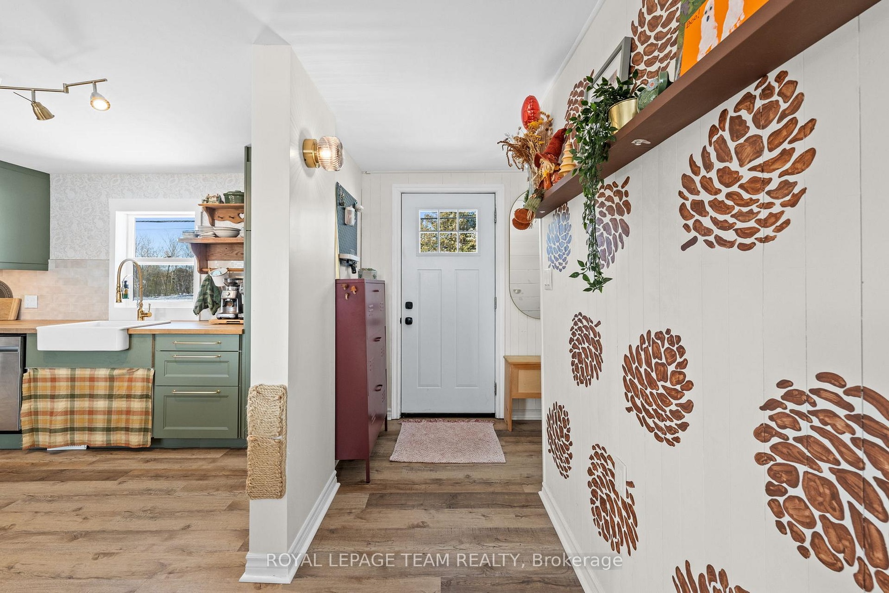 Quiet country living awaits you, just minutes from town. Sitting on 1-acre, this beautifully renovated 3-bedroom, 1-bath home offers a thoughtful layout and seamless organization. The front entrance welcomes you into a bright, modern interior featuring new flooring, a beautifully updated kitchen with live-edge island, and built-in shelving w/fireplace in the inviting living room. Other improvements include: Renovated bathroom w/ laundry, three bedrooms with full sized closets, exterior landscaping, interlock & more! Have peace of mind with a new heat pump for year-round comfort and energy efficiency. The solid ICF foundation encloses an unfinished walkout basement providing a large amount of dry additional storage space. Outside, enjoy the private yard lined with cedar trees, relaxing by the fire pit or reading a book on the large back deck. The new flowerbeds in the front yard, vibrant lilac bushes and enclosed raised garden beds are perfect for any hobby gardener. Make use of the oversized detached 1-car garage - great for parking, hobbies or extra storage. This property is in a fantastic location, only 5 minutes to drive to Carleton Place, 20 minutes to Kanata or take a scenic walk, bike ride or snowmobile trip into town on the nearby Ottawa Valley Rail Trail. This home perfectly blends comfort, efficiency and convenience.