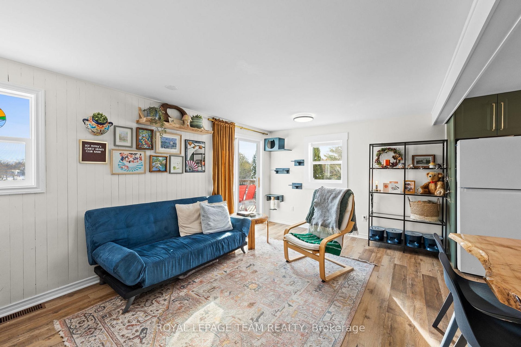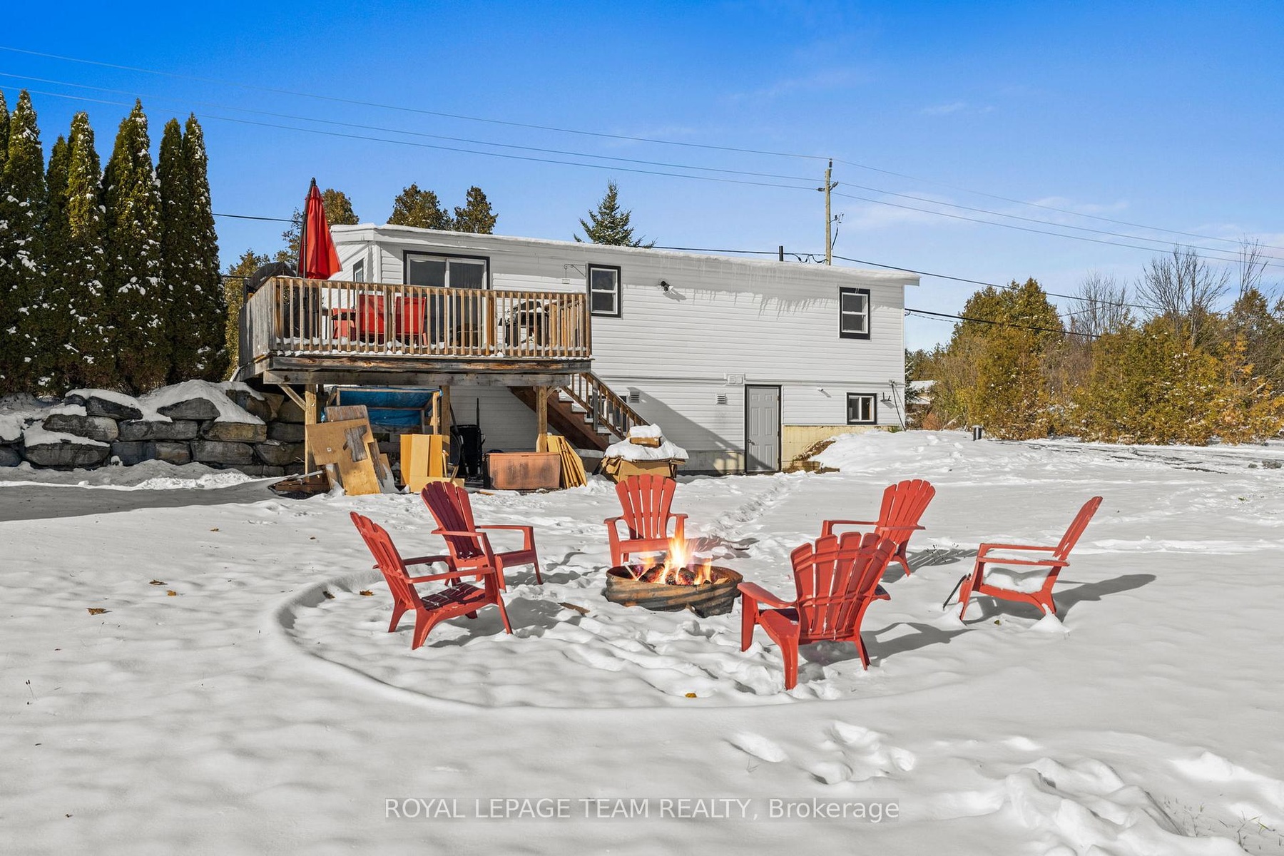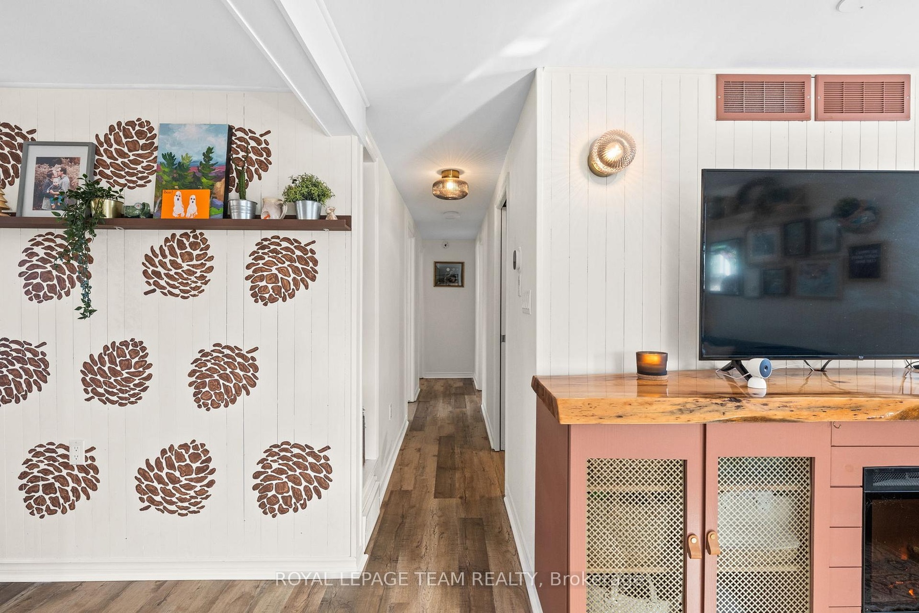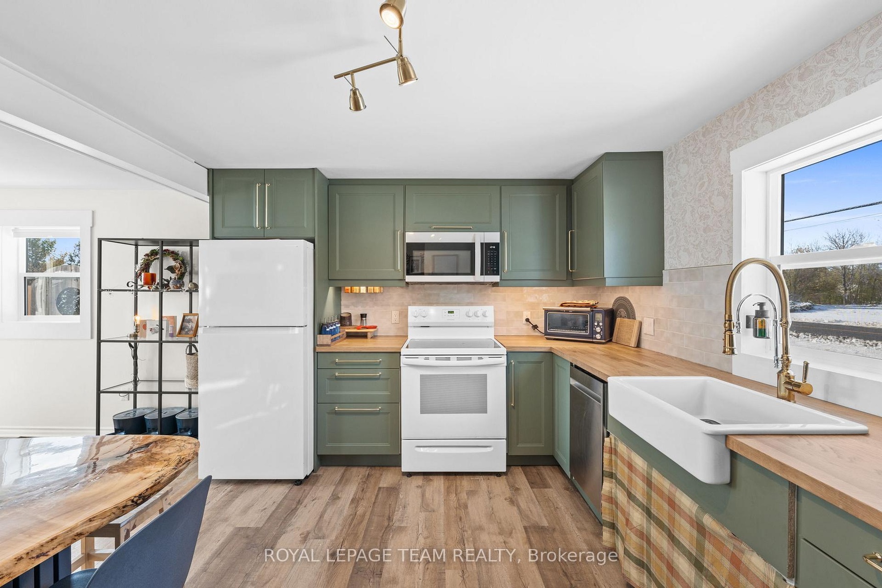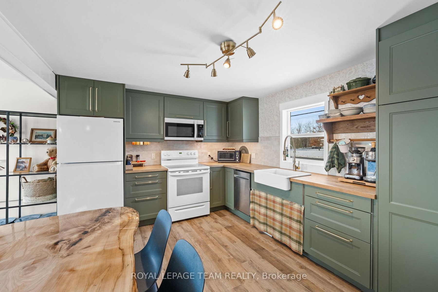 Quiet country living awaits you, just minutes from town. Sitting on 1-acre, this beautifully renovated 3-bedroom, 1-bath home offers a thoughtful layout and seamless organization. The front entrance welcomes you into a bright, modern interior featuring new flooring, a beautifully updated kitchen with live-edge island, and built-in shelving w/fireplace in the inviting living room. Other improvements include: Renovated bathroom w/ laundry, three bedrooms with full sized closets, exterior landscaping, interlock & more! Have peace of mind with a new heat pump for year-round comfort and energy efficiency. The solid ICF foundation encloses an unfinished walkout basement providing a large amount of dry additional storage space. Outside, enjoy the private yard lined with cedar trees, relaxing by the fire pit or reading a book on the large back deck. The new flowerbeds in the front yard, vibrant lilac bushes and enclosed raised garden beds are perfect for any hobby gardener. Make use of the oversized detached 1-car garage - great for parking, hobbies or extra storage. This property is in a fantastic location, only 5 minutes to drive to Carleton Place, 20 minutes to Kanata or take a scenic walk, bike ride or snowmobile trip into town on the nearby Ottawa Valley Rail Trail. This home perfectly blends comfort, efficiency and convenience.