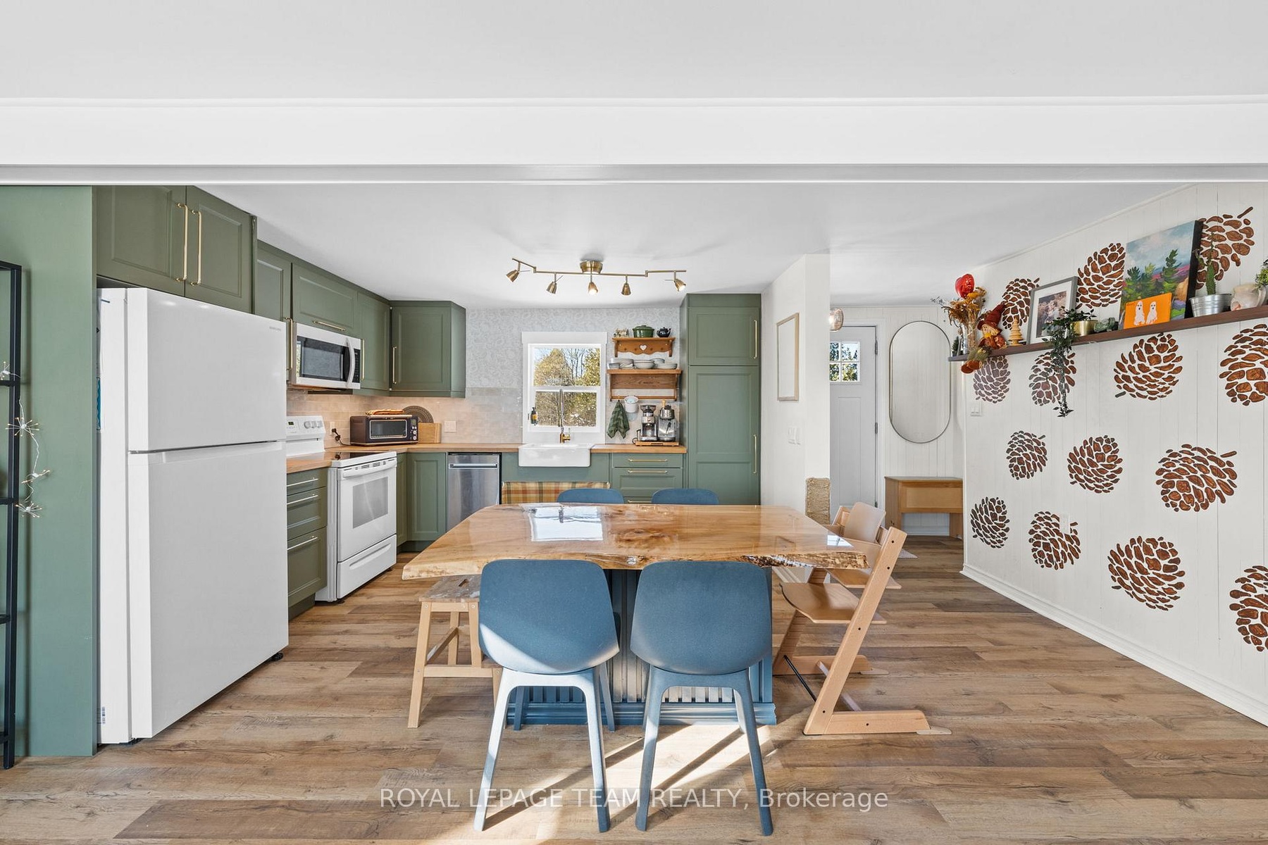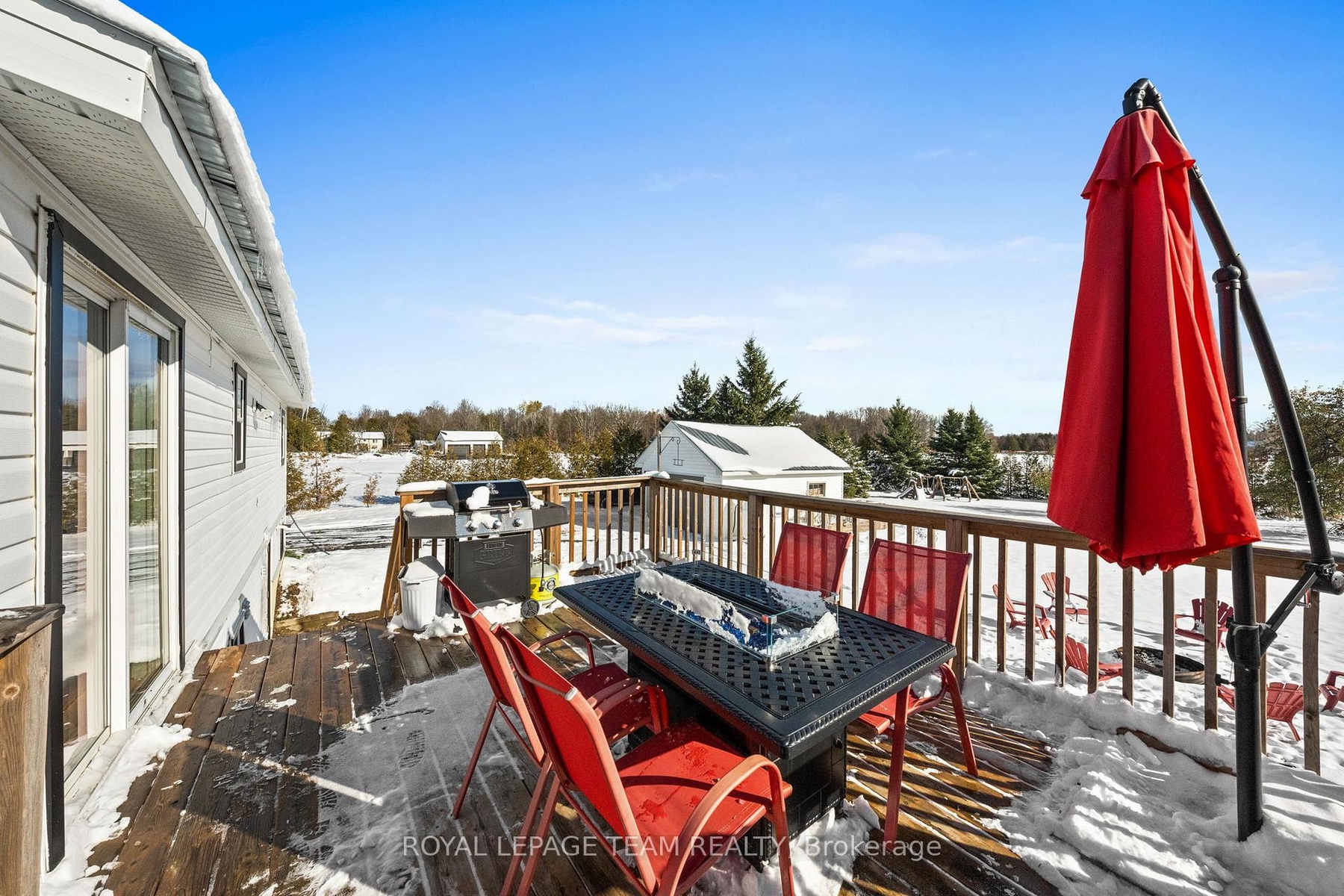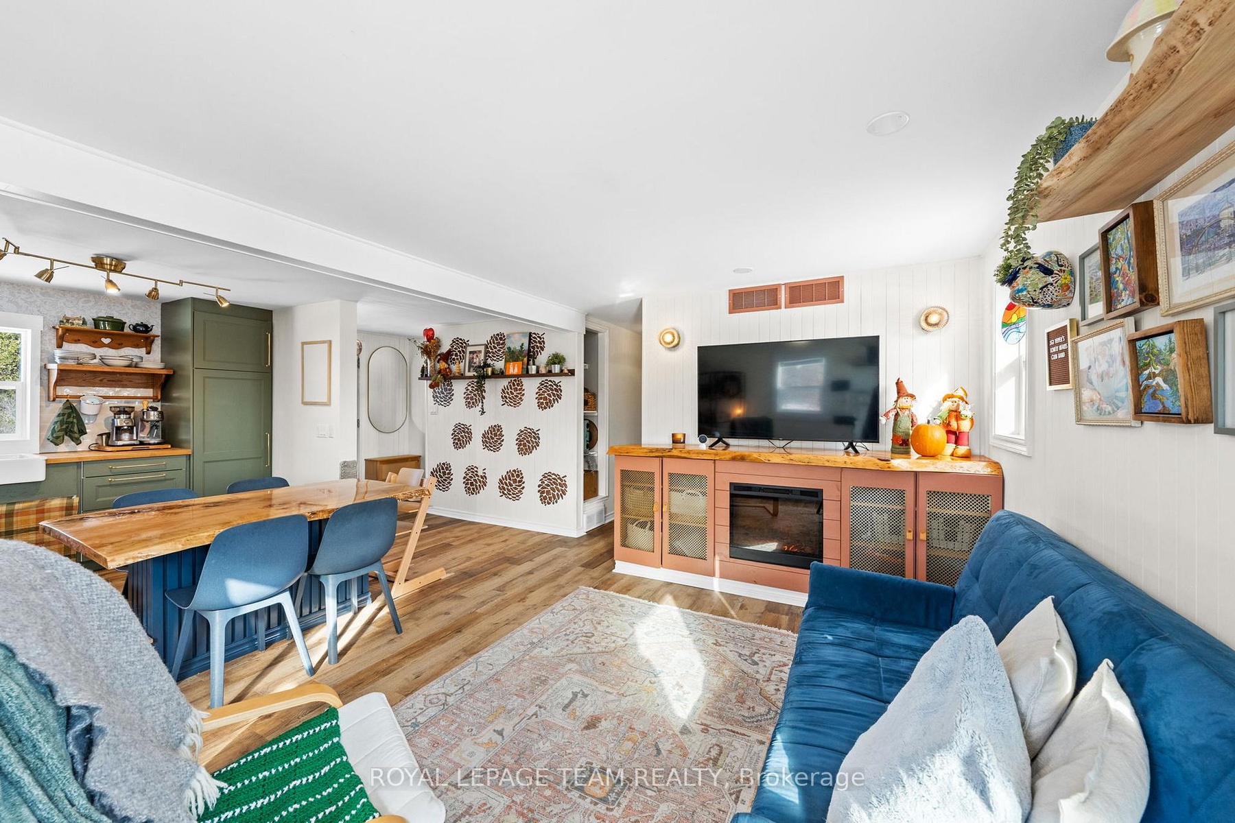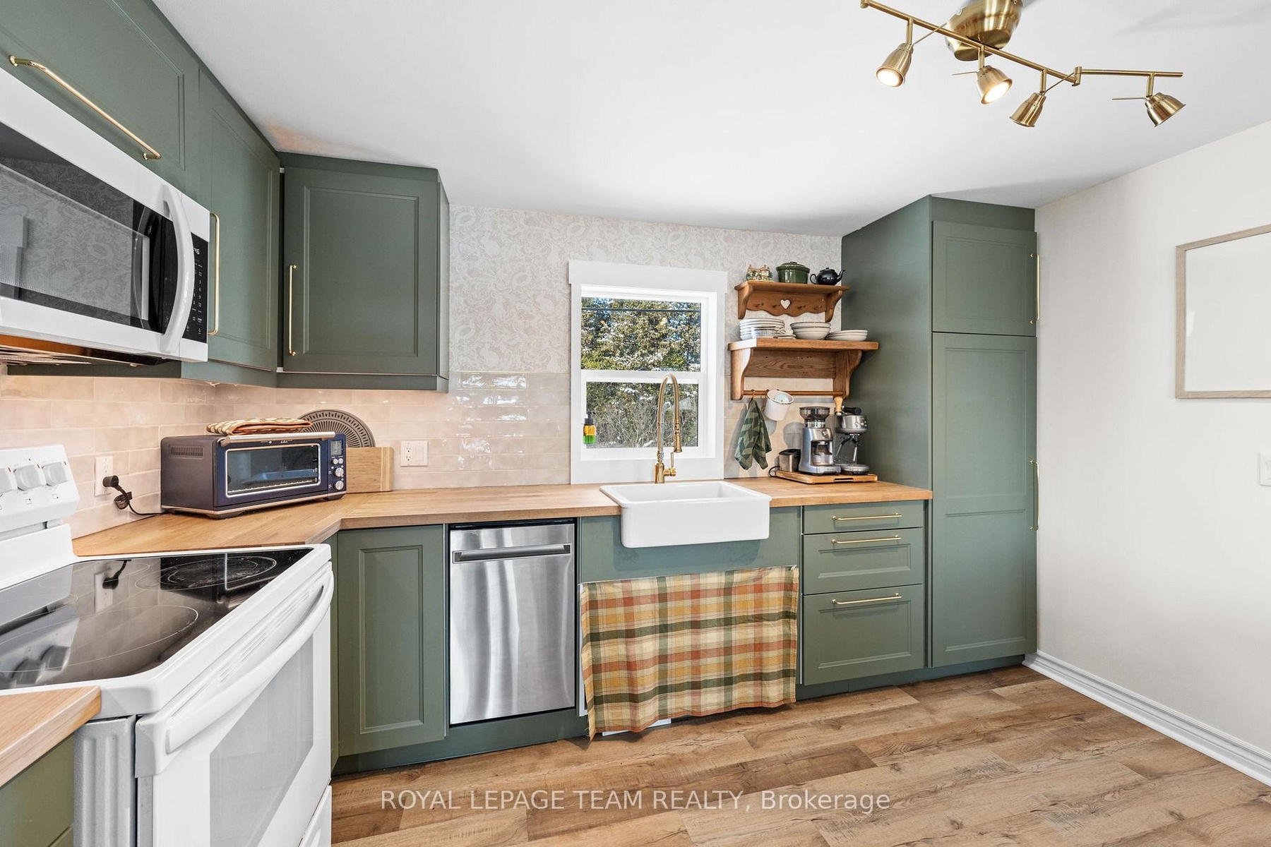 Quiet country living awaits you, just minutes from town. Sitting on 1-acre, this beautifully renovated 3-bedroom, 1-bath home offers a thoughtful layout and seamless organization. The front entrance welcomes you into a bright, modern interior featuring new flooring, a beautifully updated kitchen with live-edge island, and built-in shelving w/fireplace in the inviting living room. Other improvements include: Renovated bathroom w/ laundry, three bedrooms with full sized closets, exterior landscaping, interlock & more! Have peace of mind with a new heat pump for year-round comfort and energy efficiency. The solid ICF foundation encloses an unfinished walkout basement providing a large amount of dry additional storage space. Outside, enjoy the private yard lined with cedar trees, relaxing by the fire pit or reading a book on the large back deck. The new flowerbeds in the front yard, vibrant lilac bushes and enclosed raised garden beds are perfect for any hobby gardener. Make use of the oversized detached 1-car garage - great for parking, hobbies or extra storage. This property is in a fantastic location, only 5 minutes to drive to Carleton Place, 20 minutes to Kanata or take a scenic walk, bike ride or snowmobile trip into town on the nearby Ottawa Valley Rail Trail. This home perfectly blends comfort, efficiency and convenience.