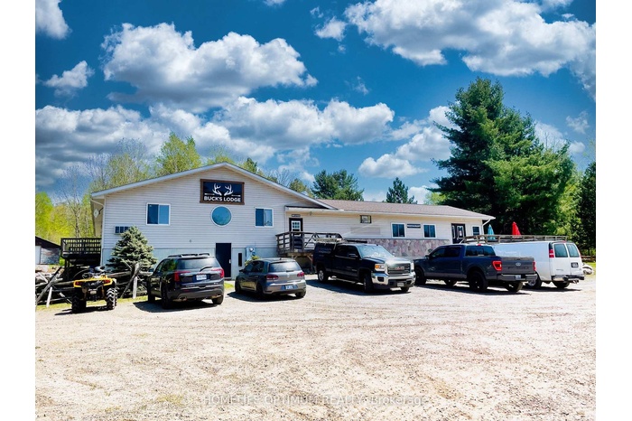 Turnkey Restaurant & Lodge Investment Opportunity. Exceptional opportunity featuring a licensed restaurant, bar, and lodge on 2.34 acres, offering steady commercial income and flexible accommodation revenue. Ideally located steps from Restoule Lake, snowmobile and walking trails, year-round recreation, and a public boat launch just 500 ft away. Close to shopping, amenities, and only 7 km from Restoule Provincial Park.The restaurant and bar are leased to a Master Chef through June 30, 2027, providing $2,500/month in rental income. Enjoy immediate cash flow while maintaining full control of four fully furnished lodge suites-perfect for short- or long-term rentals. Each suite includes a 4-pc bath and queen bed; three feature full kitchens and living areas, and one has a fridge and microwave. Guests have access to a shared commercial laundry with one washer and two dryers.The basement includes a full kitchen and two bathrooms, ideal for staff, storage, or future expansion. Since 2022, the owner has invested approximately $210,000 in renovations, keeping the property in excellent condition and a 15KW Generac Generator is included. Sale includes two adjoining parcels (sold together): PIN 522250078 - approx. 1.558 acres PIN 522250075 - approx. 0.778 acres