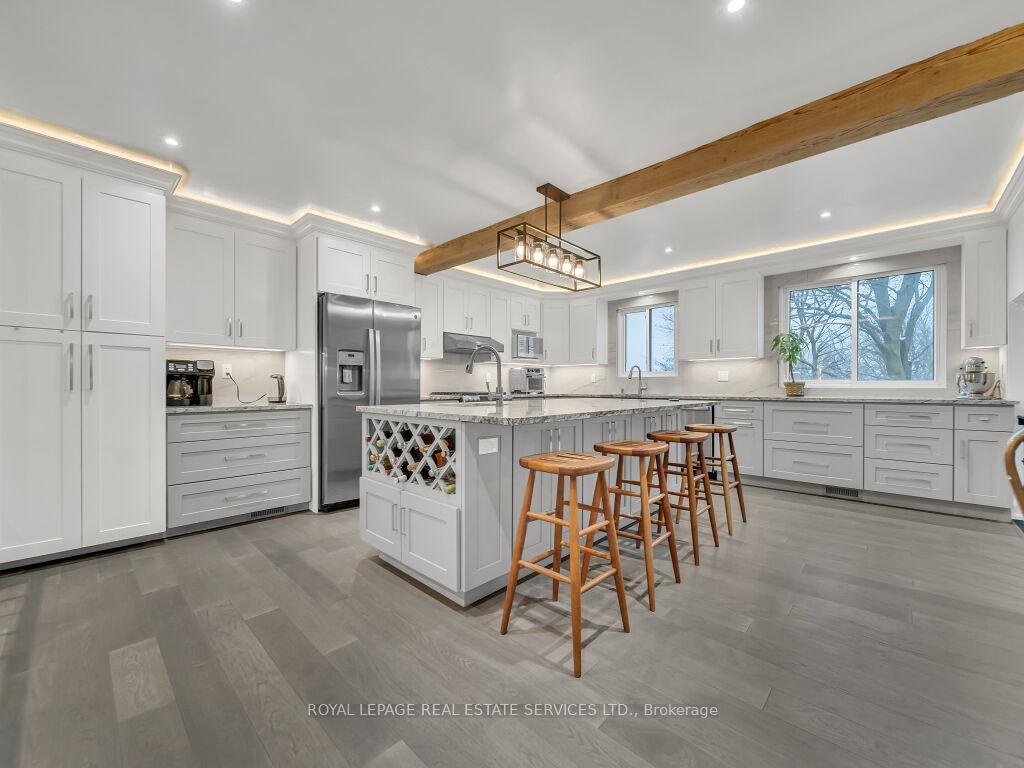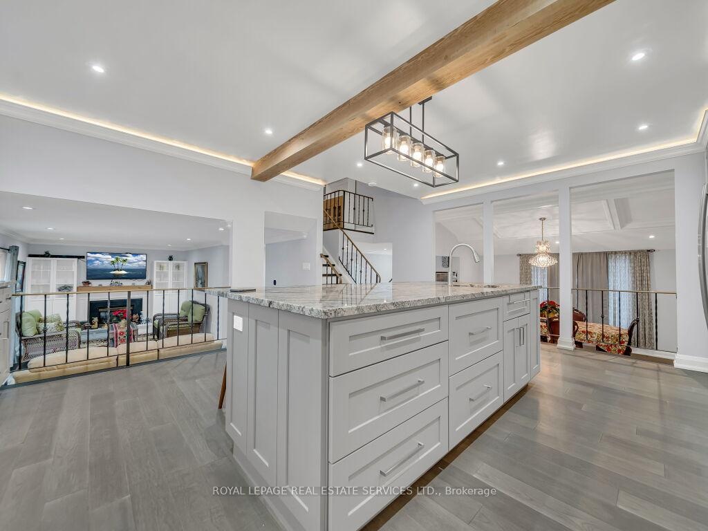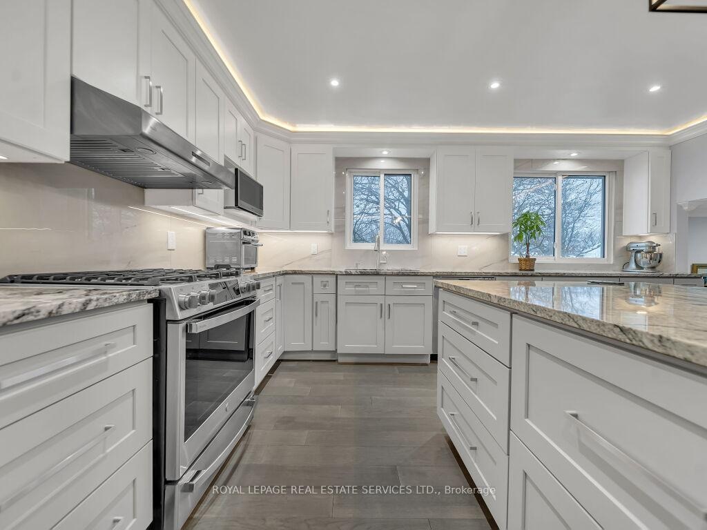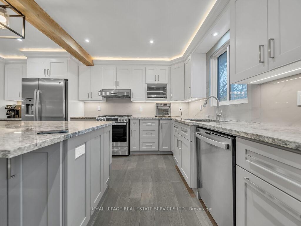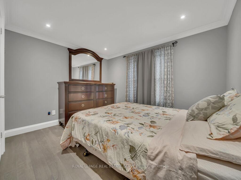 Welcome to this beautifully upgraded home showcasing luxury, comfort, and efficiency in every detail. Featuring a brand-new high-efficiency Trane furnace and air conditioner (installed July 2025) with a 10-year parts and labour warranty, this property is truly move-in ready and built to last.Enjoy the benefits of a new upgraded water softener with chlorine remover and a fully upgraded 200 AMP electrical system (ESA approved). The entire home has been enhanced with modern pot lighting throughout the interior and outdoor soffits, creating a warm and inviting ambiance day and night.Elegant plaster crown moulding adorns every room, complemented by decorative plaster beams in the dining area, adding timeless character and craftsmanship.Step outside to beautifully landscaped grounds featuring paver stone walkways and patios surrounding the front, side, and backyard. The home offers parking for five or more vehicles, including two covered spaces for added convenience.Inside, enjoy porcelain tile flooring in the hallways and bathrooms, paired with engineered hardwood floors throughout the main living areas, kitchen, and stairs. The heated garage features a 100 AMP panel, as well as a side door and window for extra functionality.The modern kitchen (2023) is a chef's delight, complete with a large island (8'3" 4'3"), sleek cabinetry, and premium brand-name appliances including a refrigerator, gas stove with air fryer, dishwasher, washer, and dryer.Every bathroom has been beautifully renovated with custom cabinetry and upgraded fixtures, while crystal chandeliers in the dining room, hallways, and primary bedroom add a touch of elegance and sophistication.This exceptional home seamlessly blends modern upgrades with classic finishes-offering comfort, efficiency, and style in every corner. Partially Finished with updated wall studs and Insulation. All electrical completed. Ready for drywall. High ceilings.