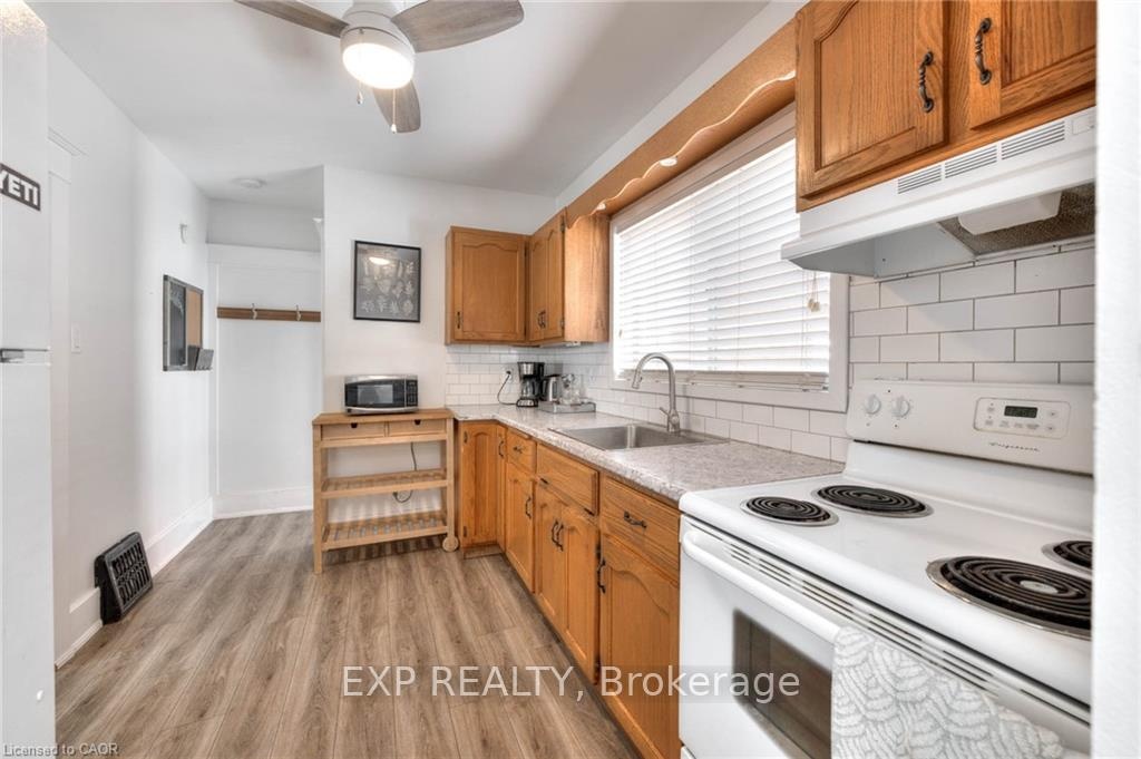 Welcome to this charming brick two-story home nestled in one of Kitchener's most desirable downtown neighbourhoods. Currently set up as a legal non-conforming duplex with two separate hydro meters, this property offers flexibility-continue to use it as an income-generating investment or easily convert it back into a spacious single-family home, with the upper-level kitchen easily transformed into a fourth bedroom. Inside, you'll find three bedrooms and two bathrooms, with timeless character throughout, including original hardware, wood floors in select areas, and a classic clawfoot bathtub in the upper bathroom. Step out onto the back balcony for a quiet retreat or enjoy your morning coffee in the private backyard surrounded by mature trees. Additional features include a concrete driveway and charming curb appeal, all just steps from vibrant shops, restaurants, and everything downtown Kitchener has to offer. A rare opportunity to own a home full of character in a truly walkable and highly sought-after location!