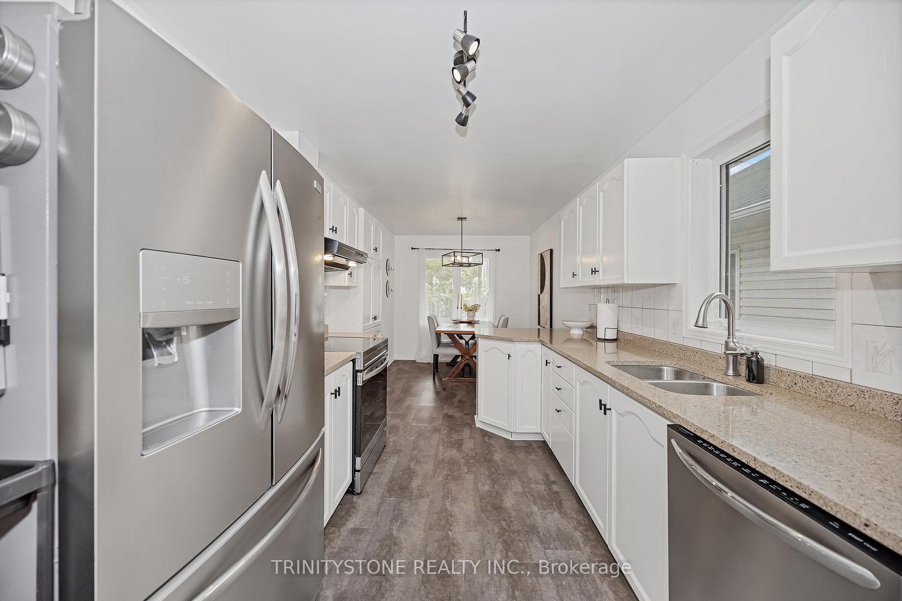 Welcome to this beautifully upgraded 2+1 bedroom, 2 bathroom bungalow in the heart of Stittsville, just minutes from the Trans Canada Trail! From the moment you step inside, you're greeted by a spacious foyer with inside access to the garage convenience at its best. The main level is bathed in natural light, offering an open and airy feel throughout. The bright living room features patio doors that lead to your private deck, ideal for relaxing or entertaining. The chefs kitchen is a true standout, boasting stainless steel appliances, quartz countertops, a double sink, and ample cabinet and counter space. The layout flows seamlessly between the kitchen, dining area, and living room perfect for everyday living and hosting guests. The generous primary bedroom offers double closets and a peaceful view of the landscaped backyard. A second bedroom and a full 4-piece bath complete the main floor. Downstairs, the newly finished lower level provides endless possibilities! Enjoy a large rec room perfect as a family room, home gym, or media space. You'll also find a spacious third bedroom and a gorgeous second 4-piece bathroom. Outside, the private deck and beautifully landscaped backyard create the perfect setting for summer gatherings or quiet mornings. This home is a true gem tastefully upgraded, move-in ready, and located in a prime Stittsville location. Roof (2017), Furnace and A/C (2020), Updated Lower Level (2023). Last Furnace Maintenance (2024). Book your private showing today!
