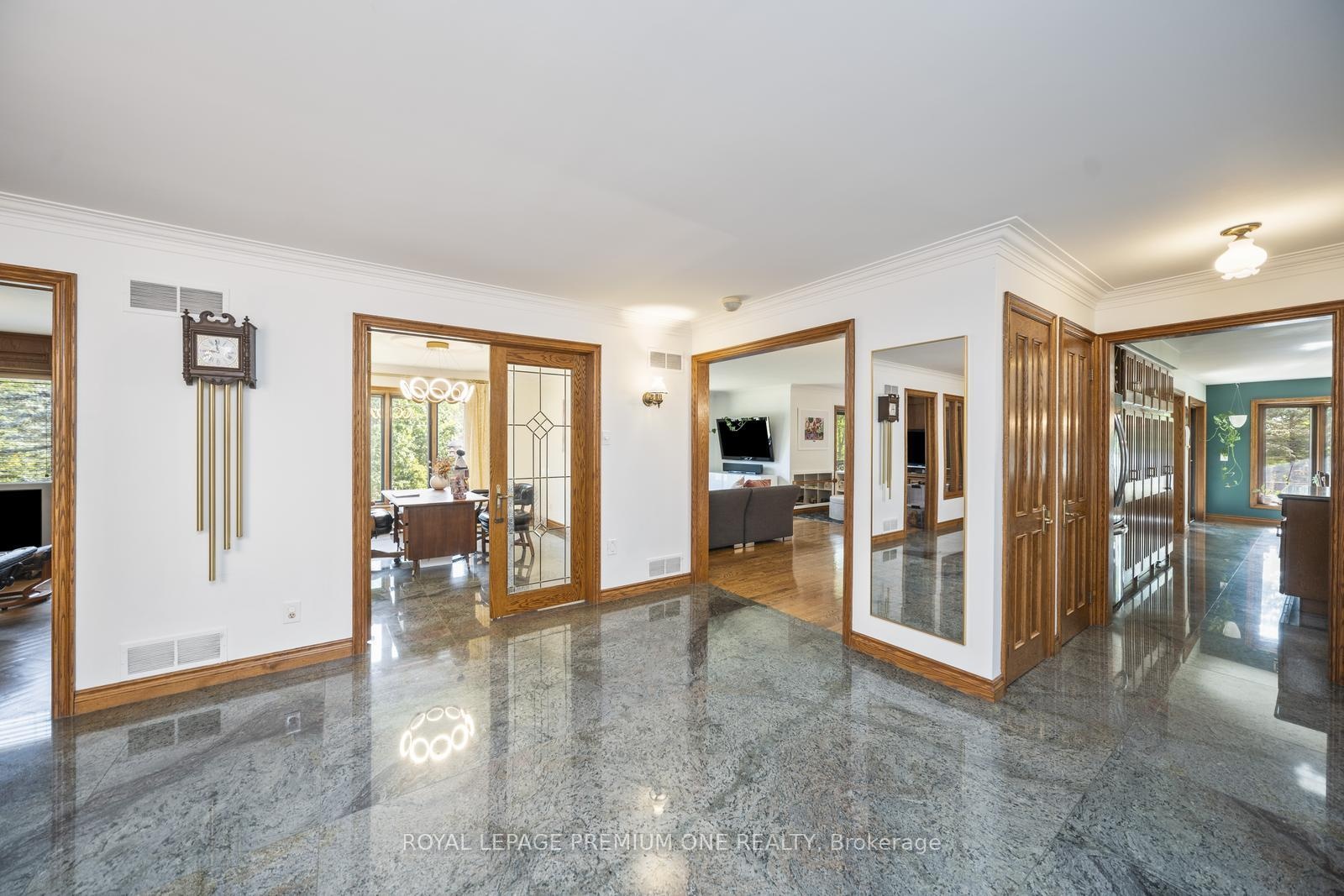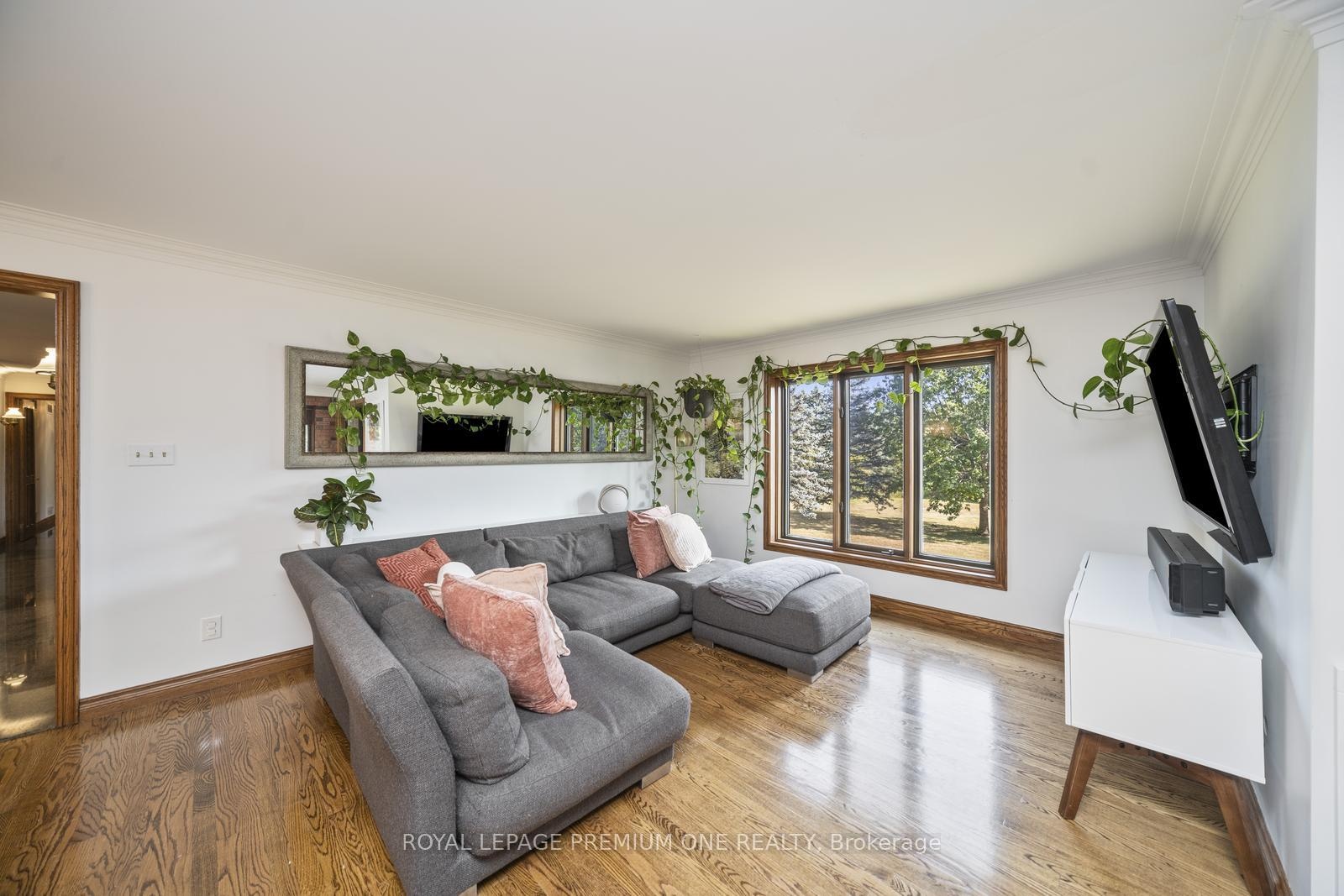 Charming estate bungalow nestled in a quiet & mature cul-de-sac setting in rural Brampton. This expansive home sits on approx. 2.2 acres and features a large semi-circular drive with ample parking and a 3-car garage. The double door entry leads to an expansive and inviting front foyer. The interior boasts 3 bedrooms & 3 baths with a full walk-out basement overlooking a serene ravine setting. Enjoy family entertaining with a large & cozy family & sitting room area with a rustic brick fireplace. The kitchen & dinette areas provide a walk-out to a wrap-around balcony with beautiful backyard views perfect for rest and relaxation. The lower level provides endless opportunities for additional living space with walk-out areas to the backyard featuring numerous mature trees for privacy. The newly updated and expansive laundry area provides direct access to the garage. Don't miss out on this unique opportunity to put your personal touches on this estate bungalow in a quiet and mature setting!