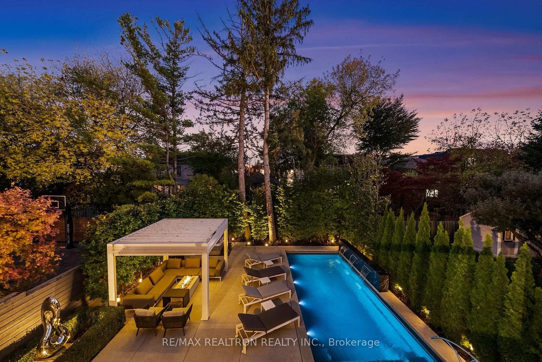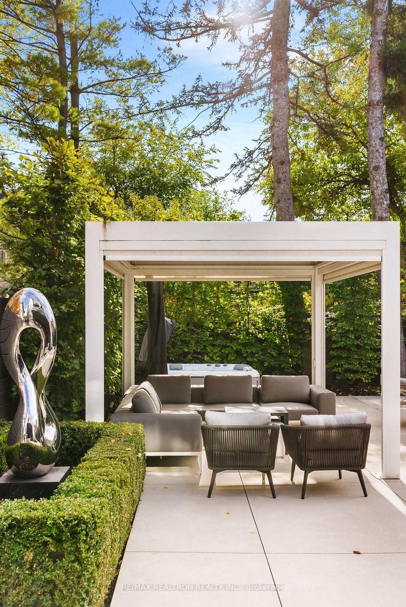 A south facing modern classic where architecture, natural materials, and comfort meet in perfect proportion. Set in one of Toronto's most sought after pockets, this Ledbury Park masterpiece was built by Oakland Custom Homes with architecture by Lauren Rose. Interiors by Wolfe Interior Design and landscape by Mark Pettes of MDP create a seamless flow from indoors to out. Every surface and system was selected without compromise. Ten foot ceilings on the main and eleven foot ceilings in the walk out lower level create volume and balance. Morning to evening light moves through open spaces that brings warmth and authenticity. The chef's kitchen features a complete Miele suite with built in coffee system, double ovens, two dishwashers, and a generous island that opens to the terrace and backyard.Control4 automation manages lighting, temperature, blinds, and sound from any device. Heated floors run throughout the home including the basement and the garage. The driveway and walkway feature a snow melt system for effortless winter comfort. Wellness is built in. Natural finishes in key living areas, abundant daylight from the south exposure, and a fully equipped gym on the lower level support daily routines with ease. The backyard is a private resort with a maintenance free saltwater pool, three waterfalls, an automated safety cover, a spa grade hot tub with Smart Tub control, and a metal cabana with retractable roof, fire feature, and custom lighting. Mature trees create complete privacy and calm. Security is professional and discreet. Dual camera systems, reinforced entry upgrades provide quiet peace of mind. The home also features a 26 kW whole house generator and Kinetico water filtration systems. Three gas fireplaces and a heated epoxy garage that functions year round as a gym or workshop complete the picture. Avenue Road convenience includes short walks to cafés, restaurants, schools, wellness studios, medical clinics, and boutiques. A rare turnkey home