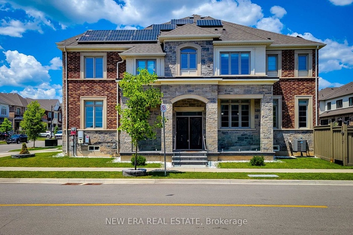 Welcome to this stunning 2198 sq ft home in the heart of Milton. This two storey semi-detached home is situated on a nice corner lot & has an all brick/stone exterior w/ enclosed porch w/ glass railings. There are many high-end, quality upgrades throughout the entire property. Spacious open concept main floor features 9' ceilings, hardwood floors, pot lights, Den & walk-out to back. The beautiful eat-in kitchen includes granite countertops, tiled backsplash, stainless steel appliances & ample cupboard space. Upstairs has 4 bedrooms w/ laundry & 4pc main bath w/ walk-in glass shower. Primary bedroom has a walk-in closet & 5pc ensuite bath w/ dual sinks, separate shower & bath tub. This carpet free home offers lots of natural light throughout the entire house. Full basement has 2nd laundry area & tankless water heater. Fully fenced backyard. The home also comes equipped w/fully owned solar panels. Close to schools, parks, transit & all major amenities. This gem is a definite must see!