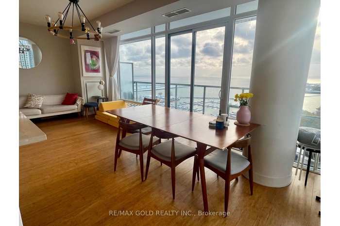 Experience waterfront living at its best in this sun-filled corner suite at Luxury Quay West This spacious 2-bedroom, 2-bath residence offers 1005 sq. ft. of living space plus a 115 sq. ft. balcony with stunning lake and city views. Featuring 9-ft ceilings, hardwood floors, and a modern open-concept layout with quartz countertops, stainless steel appliances, and upgraded finishes throughout. The primary bedroom includes a walk-in closet and a 3-piece ensuite. Enjoy top-tier building amenities and an unbeatable location just steps to the Harbour front, TTC, Lake Ontario, and Toronto's finest dining and entertainment.