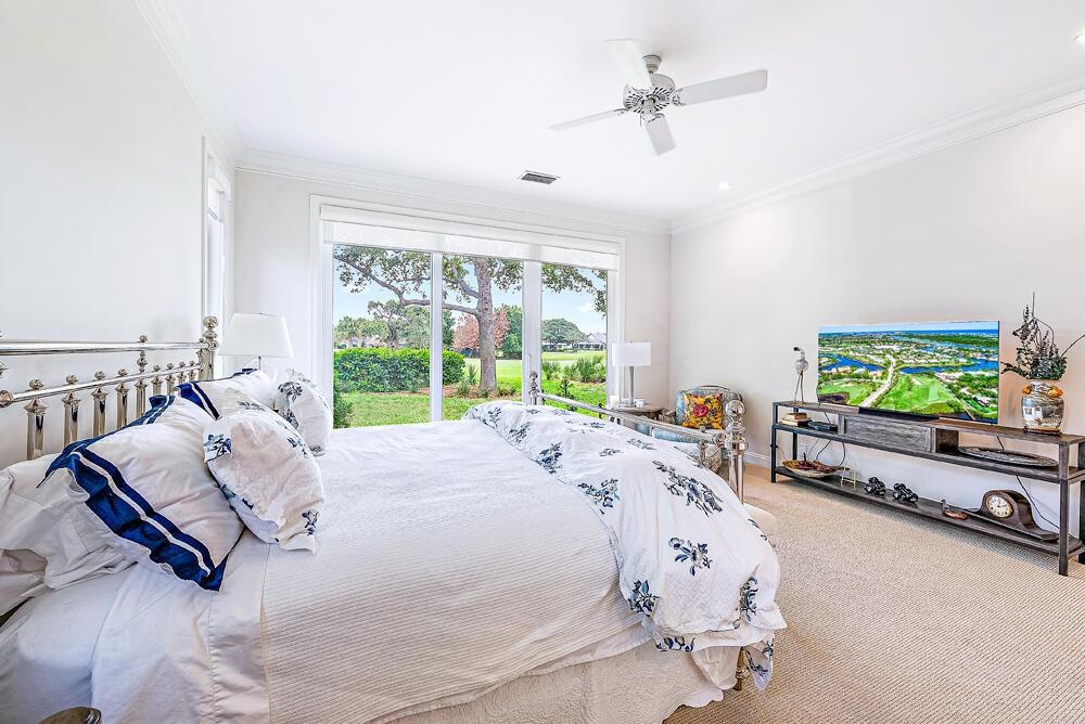 Sleek with an open floor plan, this amazing Prestwick model offers the best of everything. Clean lines and light-filled rooms make this home one of a kind. Located on one of the most highly sought after cul-de-sacs in the community, this 3 bedroom, 3 bath home has it all. Oversized sliders capture the lovely views of the 15th hole on the Village Course. The primary bedroom is large, and the spa-like bath makes one feel like they are truly on vacation. Two guest bedrooms with ensuite baths are perfect for entertaining family and friends. If you would like to write a note or want to browse the internet, the light and bright office located adjacent to the kitchen is just the place to do it. A two-car garage with golf cart storage completes this picture.