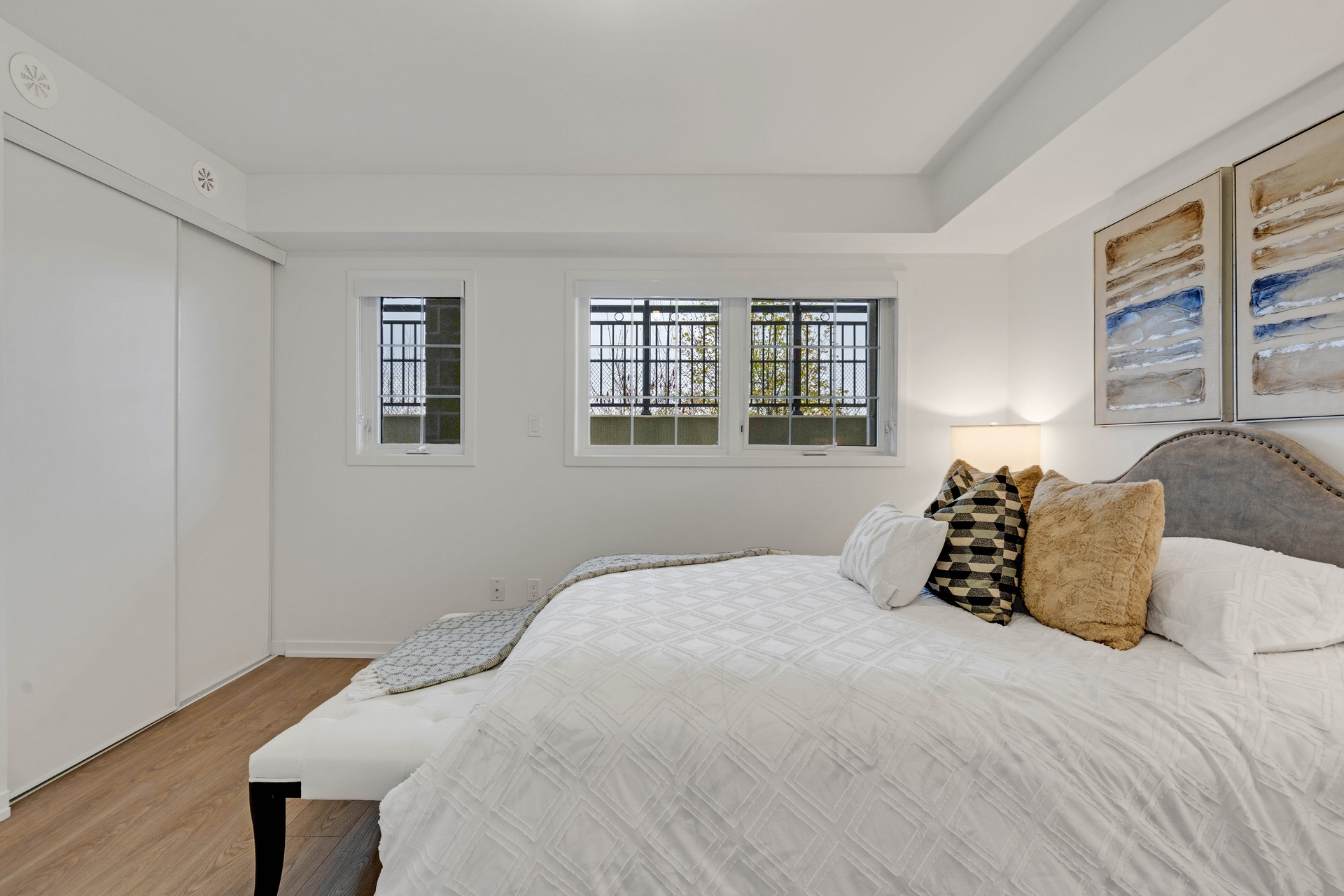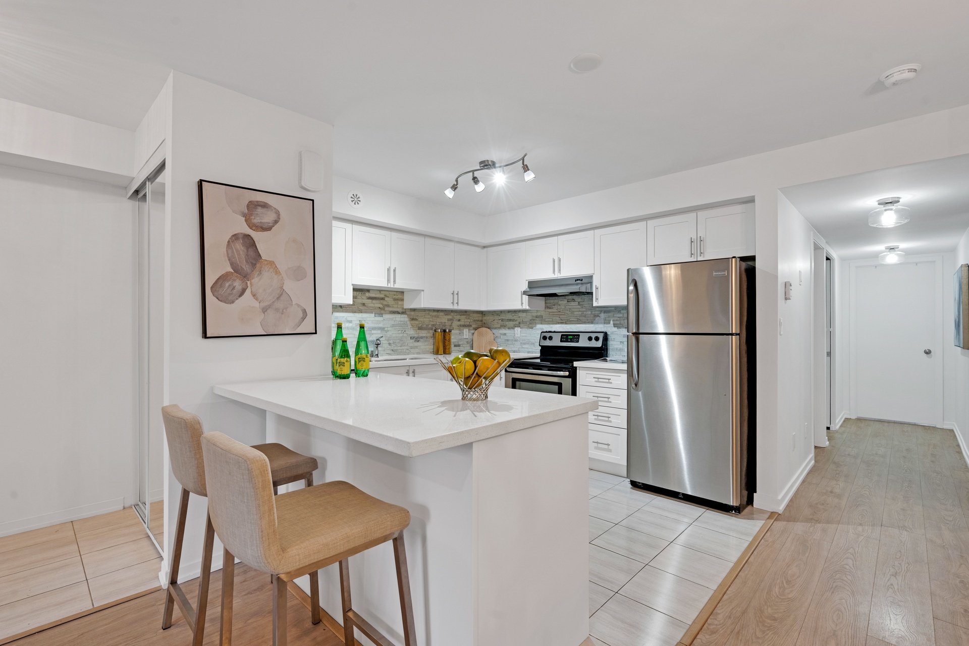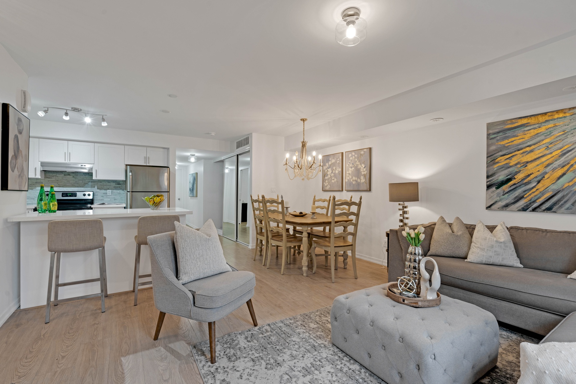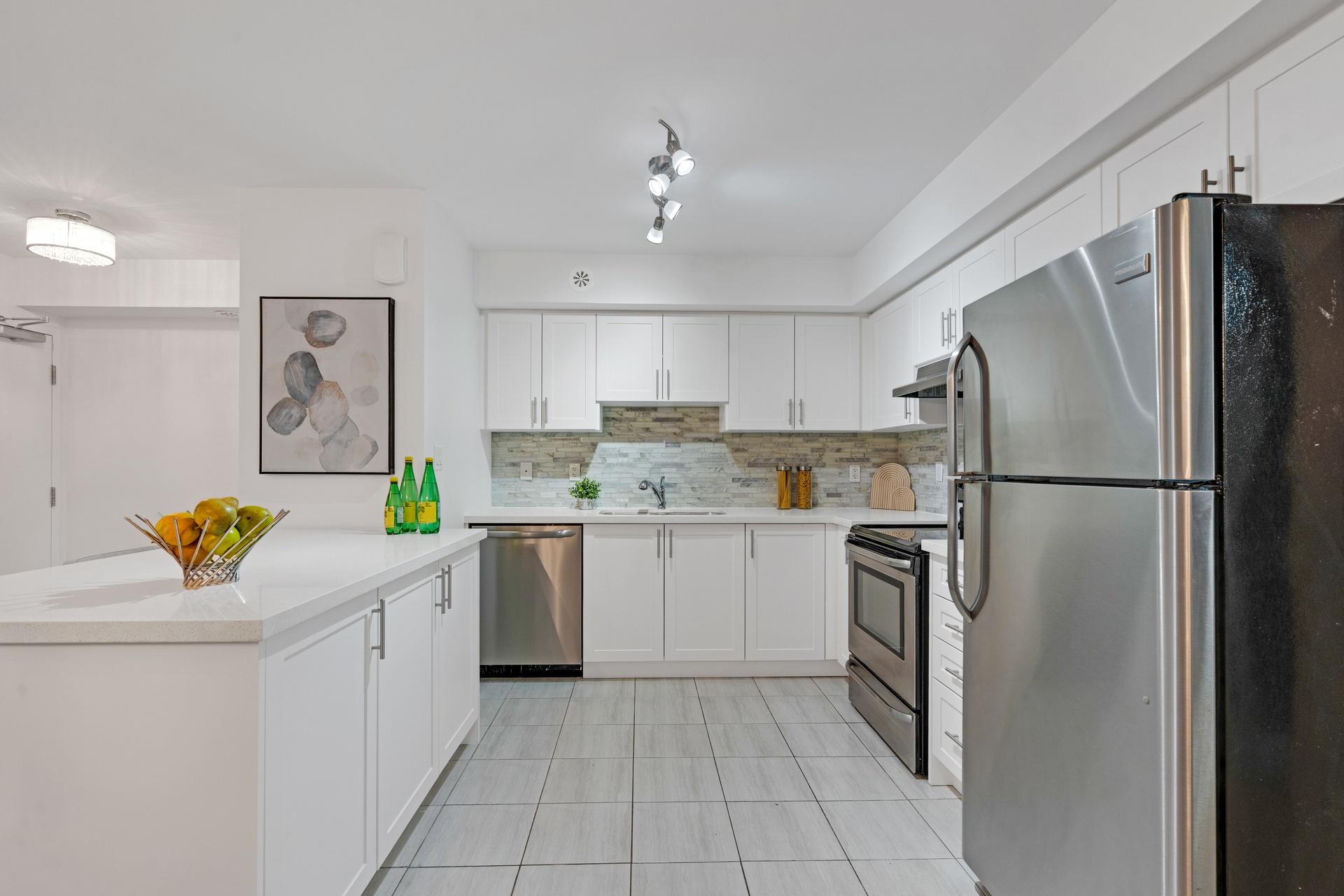 Welcome to this well-kept, turnkey condo townhome located right on the vibrant Highway 7transit corridor in the heart of Vaughan. This bright and spacious one-level residence offers977 sq. ft. of thoughtfully designed living space featuring 2 bedrooms and 2 full bathrooms. Enjoy an open-concept layout with stylish finishes throughout, including sleek quartz countertops, stainless steel appliances, and large lookout windows that fill the home with natural light. The unit features no carpet for easy maintenance and a clean, modern aesthetic. Step out to your terrace perfect for morning coffee or evening BBQs-with a convenient gas line connection. Additional highlights include one locker and a private underground parking space ideally situated for easy access. Located steps from public transit and minutes to the TTC subway, major highways, shopping, restaurants, and entertainment, this home offers unmatched convenience and connectivity. Whether you're a first-time buyer, downsizer, or investor, this move-in-ready townhome combines comfort, style, and location in one exceptional package.