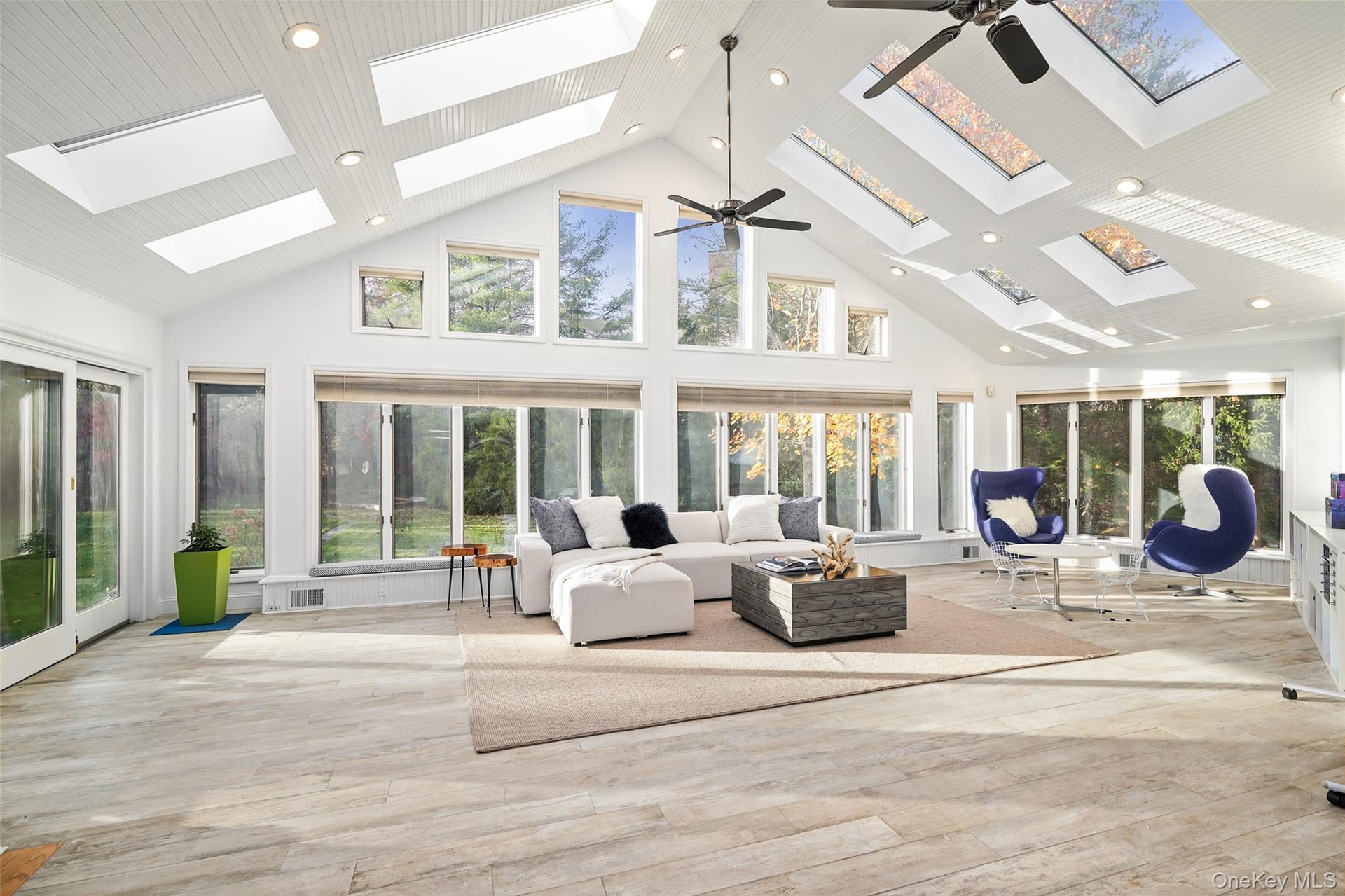Experience the ultimate blend of luxury and convenience in this stunning contemporary home, perfectly situated on over an acre of prime flat land in Purchase, New York just 45 minutes from Manhattan. This spacious, sun drenched home is located in the sought after Brae Burn community and offers comfort and easy living. You are just minutes from your tee time as Brae Burn Country Club is just a walk away, offering a vibrant community atmosphere. Upon entering, you'll be greeted by an elegant entry foyer that sets the tone for the rest of this fantastic home. The expansive sunroom/family room adjacent to the state-of-the-art kitchen is bathed in natural light, thanks to skylights and large windows that offer breathtaking views of the serene backyard. The multiple rooms—living room, family room, and den—are easily accessible from the kitchen and provide ample room for entertaining or relaxing. The den boasts an efficient wood-burning stove, a built-in wet bar with a beverage refrigerator, wine refrigerator and a dishwasher. A wall of doors provides access to a charming patio with an awning. The possibilities for how to use this space are endless. The home also features paid-in-full solar panels and an electric car charging outlet already installed in the 2 car garage (40amp), ensuring your energy needs are met sustainably. This updated home is move-in ready and offers a dedicated office space for your work-from-home needs, ensuring you have the perfect balance between productivity and comfort. With a fantastic floor plan that includes 5 bedrooms and 3.5 baths, there's plenty of room for guests, including an au pair or in-law suite. The finished basement is perfect for recreation, featuring a media area for movie nights and games. Additionally, a downstairs back room with outdoor egress is ideal for a workshop, studio, or wine cellar design. The heart of this home is the kitchen, seamlessly connected to the family room. It features a Sub-Zero refrigerator, an induction cooktop, a new large stainless sink, and a beautifully designed modern wet bar with ample storage. The kitchen's desk area serves as the command center for your suburban lifestyle. Enjoy the nostalgia of traditional milk delivery service right to your door, adding a charming touch to this extraordinary home. Outside, enjoy the tranquility of your own outdoor oasis with a bocce court, fire pit area and fenced-in garden area, perfect for creating your own mini-farmette. The expansive flat backyard space allows for great possibilities in the future for a pool and pool house. This peaceful setting is conveniently close to golf courses, grocery stores, train station, restaurants, farmer's markets, shopping, Purchase Community Center, private and public schools. This home is in the award winning Harrison School District which offers the International Baccalaureate Program (IB) and many sports playing fields for your athletes. The area offers a lot of green space for playing, hiking and enjoying the outdoors. The ability to add smart home features is enhanced with rooms fitted with wiring for Smart Home touch control panel capability, allowing you to customize your home environment with ease. All this within an easy to commute to NYC. Your new suburban lifestyle awaits. Many surrounding towns; Greenwich, Armonk, Rye, Rye Brook, White Plains... add to this incredible lifestyle with lower taxes.