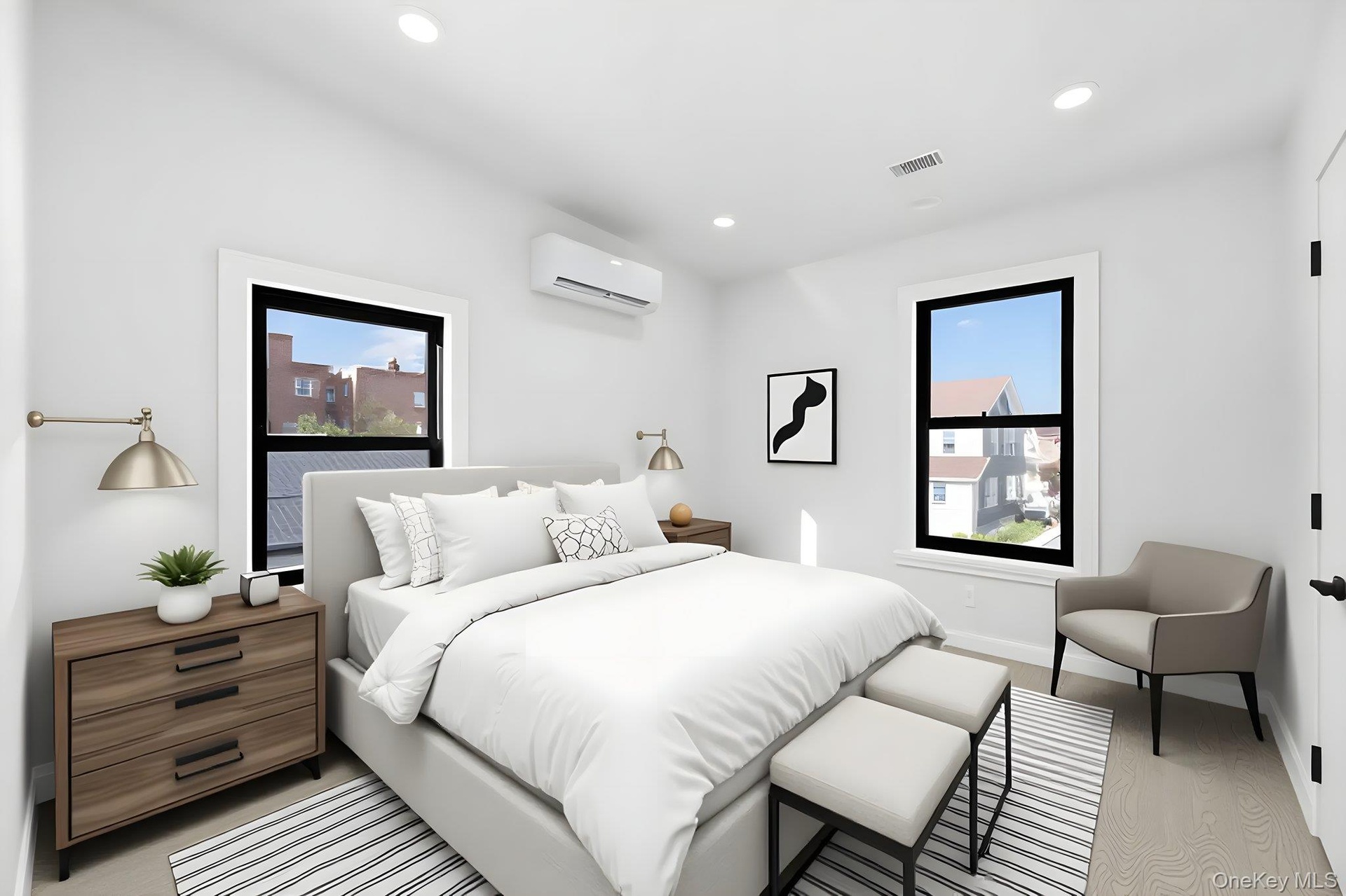 Renovations include brand new select wide oak wood flooring, recessed lighting, electrical, heating, plumbing and energy efficient split unit systems throughout.