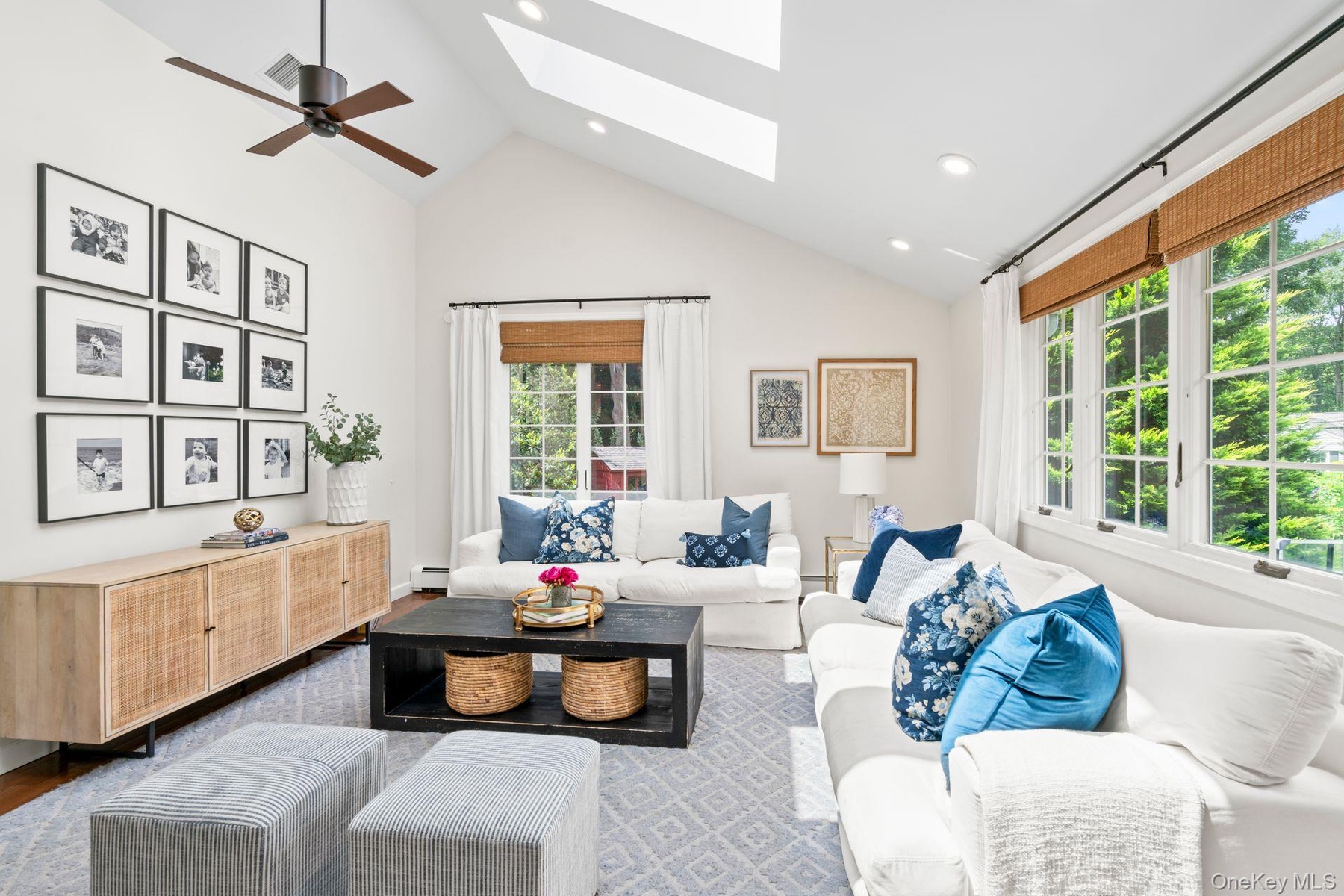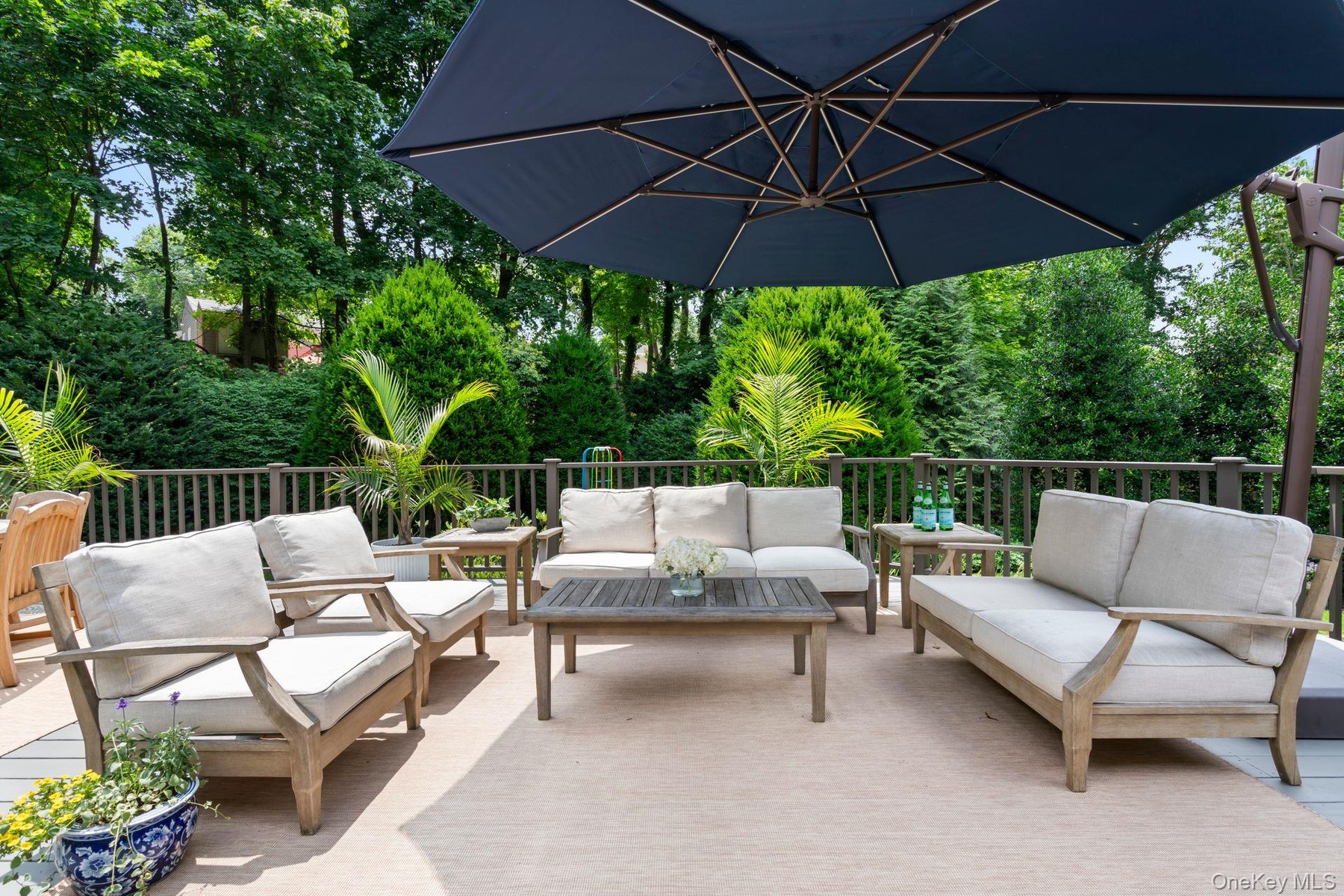 Pristine & Immaculate Ranch in Harborfields School District Beautifully decorated and move-in ready, this turn-key ranch offers style, comfort, and privacy in the sought-after Harborfields School District. A bright living room with a dual wood-burning fireplace flows seamlessly into a cozy den with cathedral ceilings — a welcoming retreat filled with natural light. The modern, updated eat-in kitchen features stainless steel appliances and opens to a dining area with sliders leading to an oversized, newly updated deck, ideal for dining al fresco or gatherings with friends. A dedicated work space with custom built-ins, a convenient laundry area, and a full bath enhance everyday living. The primary bedroom offers private access to the deck, while two additional bedrooms & full bath complete this level. The lower level provides exceptional bonus space including full bath, playroom with custom millwork, mudroom area, and direct access to the two-car garage. Set on a beautifully landscaped .33 acre of private, fenced property, this home is perfect for both relaxation and entertaining. Many updates throughout, including gas heat, siding, and windows, ensure comfort and peace of mind. A truly special home that combines tasteful design, thoughtful updates, and an unbeatable location. Close to Huntington Village, LIRR, Beaches & So Much More! This Is The One You Have Been Waiting For!!