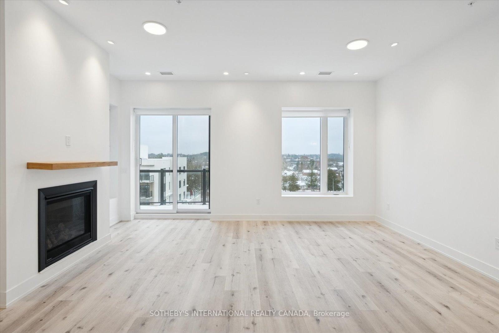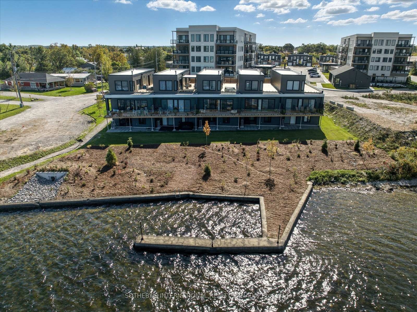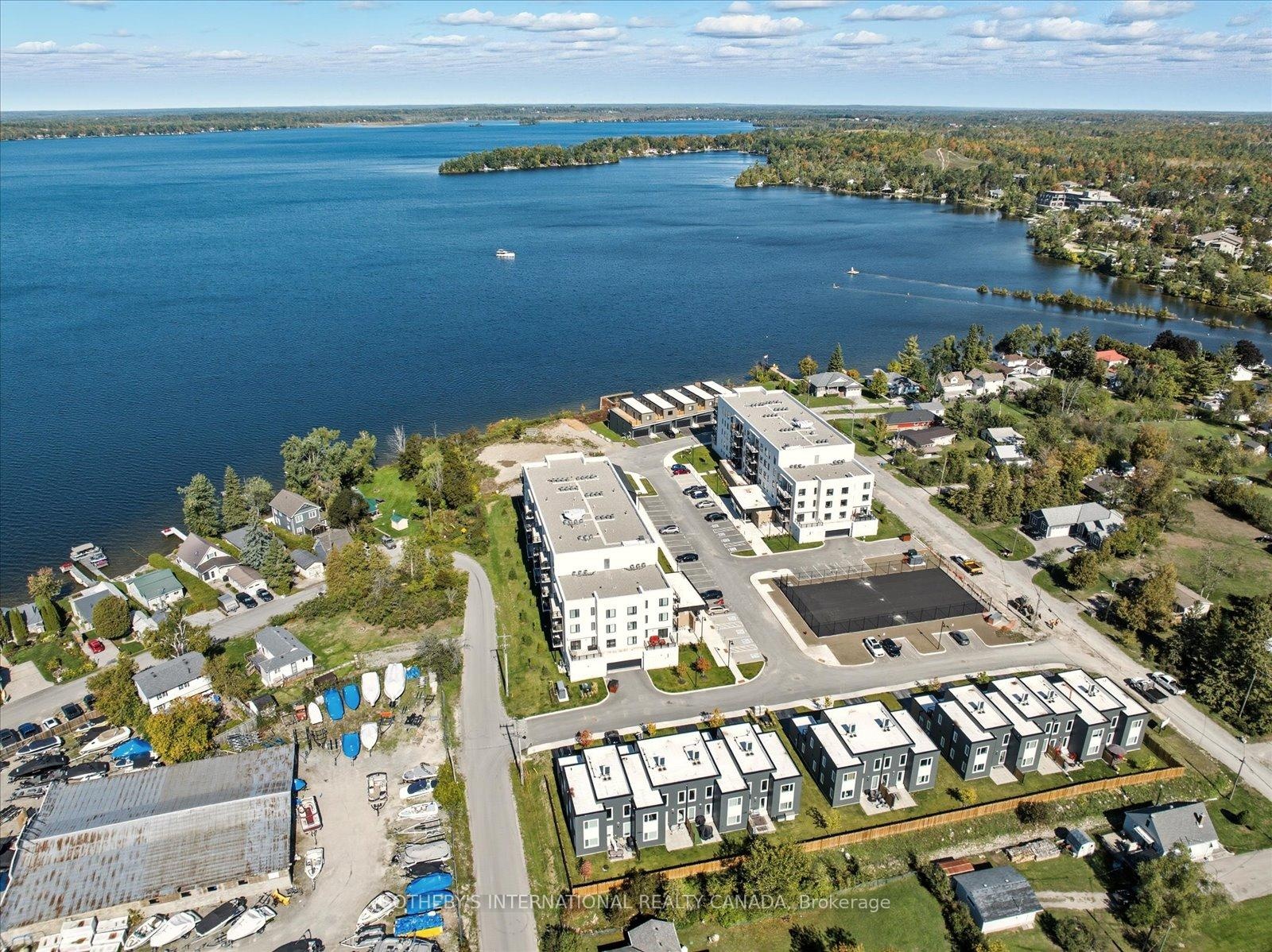 Dreaming of Penthouse living on Cameron Lake? Welcome to the Balsam House, Penthouse #1. The penthouse floor boasts 10 foot ceilings and fewer suites per floor given the sense of space the moment the elevator door opens. The suite has upgraded finishes with beautiful quartz counter tops and matching backsplash for a sleek look . A centre island for 2 featuring attractive pendant lights and upgraded pot lights throughout. Soaring 10 foot ceilings and an extra large fireplace elevate the living space. This suite is 1232 square feet featuring 2 bedrooms & 2 bathrooms and in-suite laundry. The primary has double closets, 4 piece ensuite with glass shower & double sinks. The 2nd bedroom is a great size acting as a 2nd primary with a 70 square foot walk in closet with it's own window! Utilize as a closet & flexed office space. The 4 piece bath is directly across from 2nd bedroom and there is great separation of space between bedrooms. Bright and airy with beautiful views. Access to the terrace from the living room and primary bedroom. The lake views from this terrace are SPECTACULAR complete with (BBQ hookup). There is enough space for a dining table for 4 plus a chaise. Shared amenities include a clubhouse, gym, outdoor pool, tennis/pickleball courts, and private dock area for residents with planned finger docks for daytime use. This is a pet friendly community with dog wash station in the parking garage. One indoor parking and 1 outdoor parking spot come with this suite. Maintenance free living, the snow is removed, the grass is cut and all the outdoors and indoor amenities are taken care of, giving you more time to do things you love. Discover the charming town of Fenelon Falls. Just a short stroll from the Fenelon Lakes Club, you'll find unique shops, delightful dining, and rejuvenating wellness experiences. Conveniently located 20 minutes from Lindsay and Bobcaygeon, and only 90 minutes from the GTA.