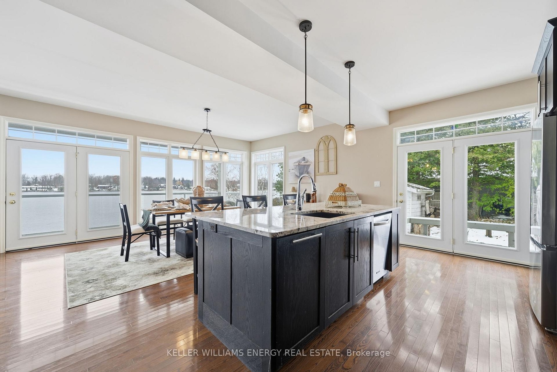 Welcome to this stunning 1+2 bedroom, 3 bathroom bungaloft nestled on the beautiful Trent Severn Waterway. Offering direct waterfront access and the ability to explore 5 lakes without passing through a single lock, this property is a true year-round retreat! Step inside through a spacious front entrance into an impressive open-concept layout with cathedral ceilings and wall-to-wall windows showcasing breathtaking water views. The main floor features a cozy fireplace, convenient laundry room, and seamless access to the wrap-around upper deck - perfect for entertaining or simply enjoying the Call of the Loons. The primary bedroom suite offers a private escape with a 3-piece ensuite and a walk-in closet, creating the perfect blend of comfort and functionality. The walk-out basement extends your living space, featuring a dry bar, ample storage, and direct access to the waterfront. Spend your days boating, fishing, or relaxing on your private dock, then enjoy skating or snowmobiling right from your backyard in the winter. Located in a mature, quiet neighbourhood, this home offers easy access to downtown Peterborough, PRHC hospital, and Hwy 115, while nearby golf courses and outdoor recreation make every day feel like a getaway. This Kawartha Lakes bungaloft delivers comfort, charm, and the perfect balance of relaxation and adventure.