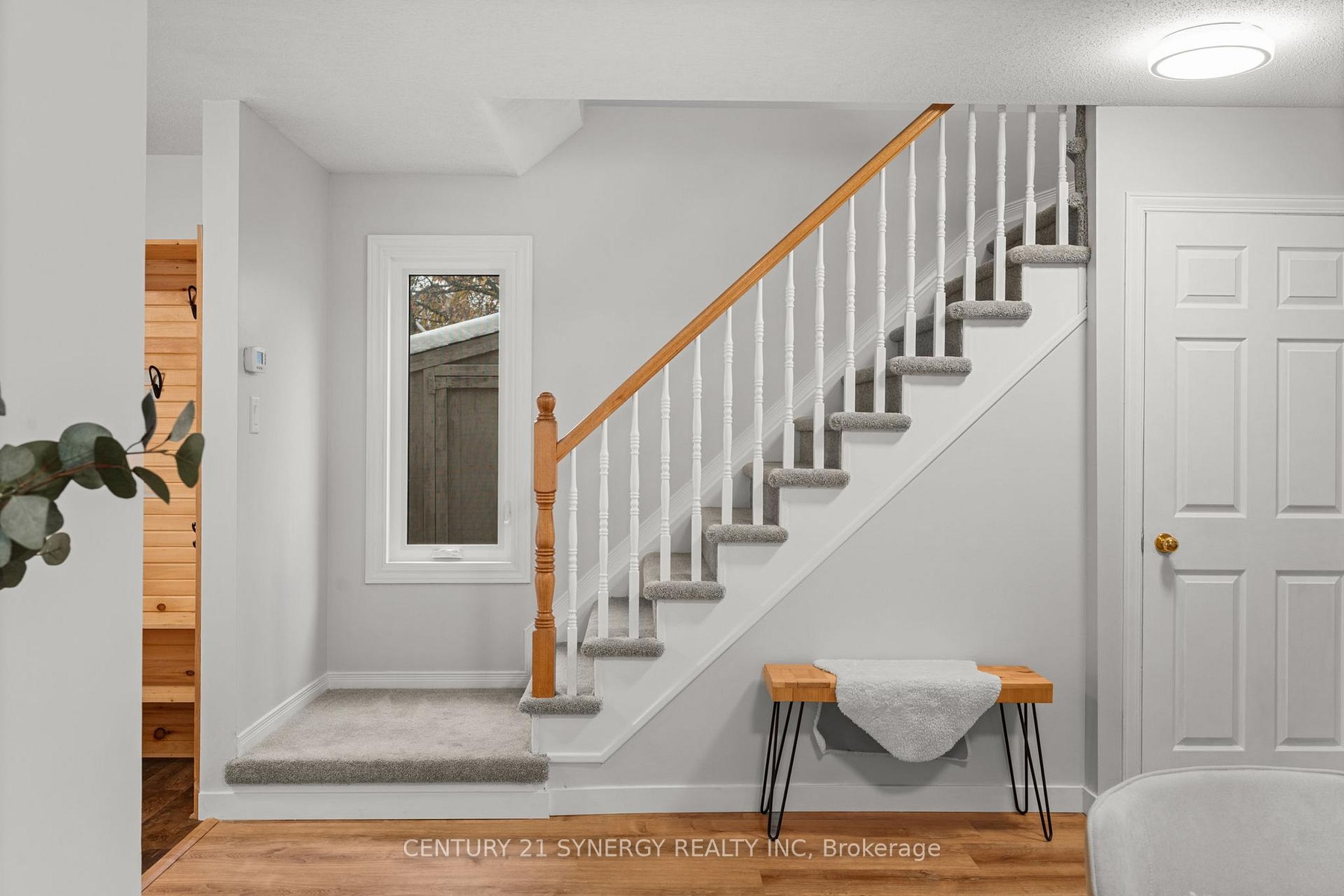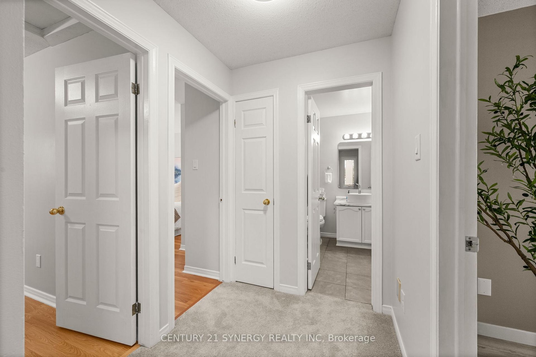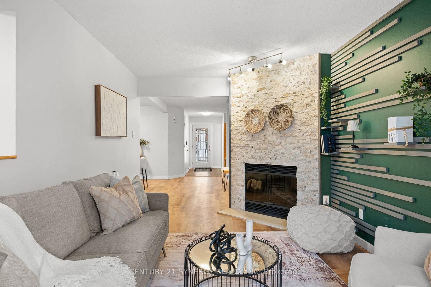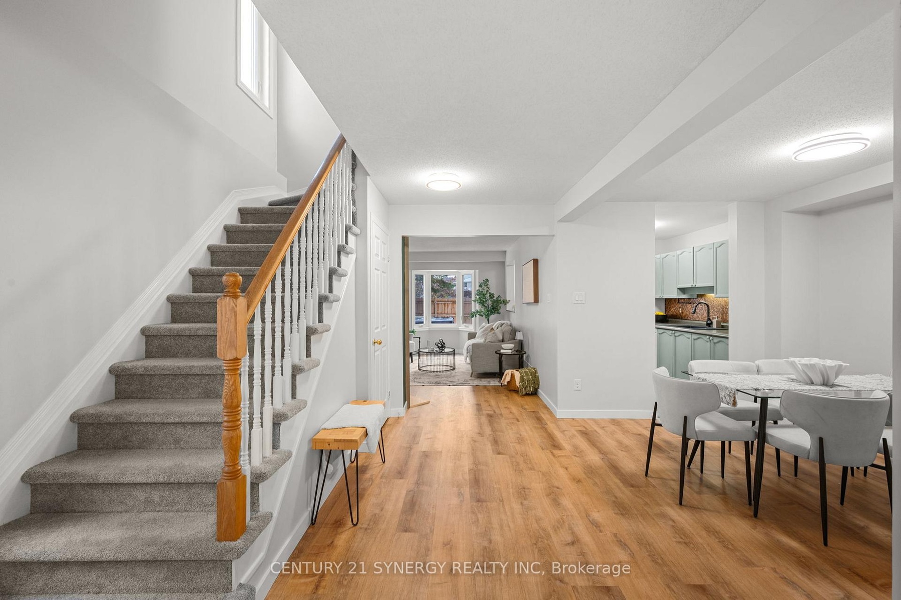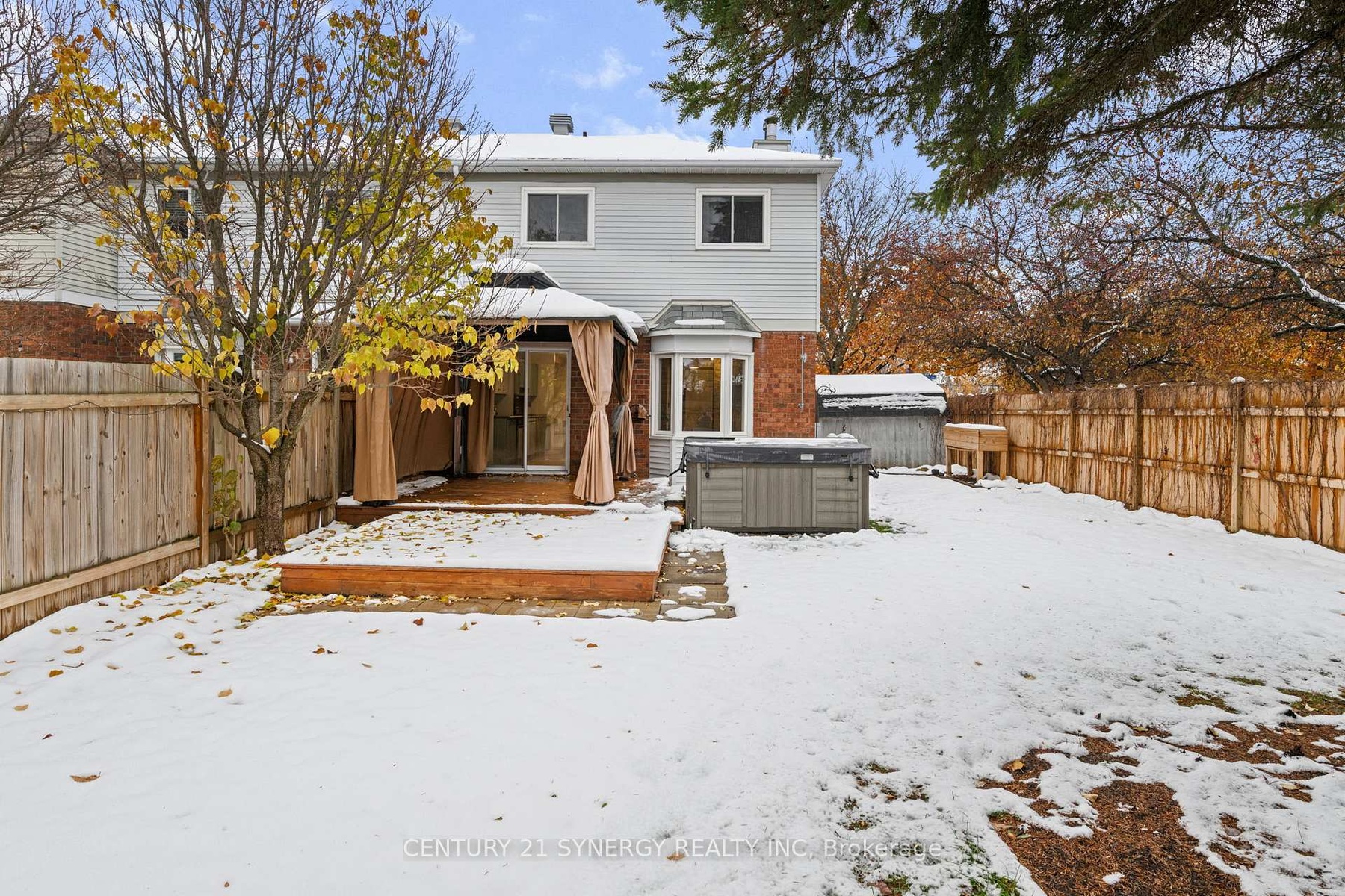 This bright and well-kept end-unit townhouse sits on a quiet cul-de-sac corner lot in Kanata, offering extra space, privacy, and a welcoming community feel. With three bedrooms, three bathrooms, a finished basement, and a tiny library, it's a great fit for families, professionals, or anyone looking for a move-in-ready home that blends comfort and practicality.The entryway makes a warm first impression with a custom-built wooden bench area and inside garage access. The main floor features a flowing layout that connects living and dining areas with ease. A cozy living room centers around a wood-burning fireplace, while a formal dining area and galley-style kitchen make entertaining simple. The kitchen includes stainless steel appliances, plenty of storage, and a convenient pass-through to the living room for an open, connected feel. Upstairs, three comfortable bedrooms offer flexibility for family life or guests. The primary suite features a private 2-piece ensuite that connects directly to a shared 4-piece bathroom-an ideal setup for convenience and function.The finished basement adds even more living space, perfect for a home office, rec room, or gym. Outside, enjoy a fully fenced, landscaped backyard built for relaxation, complete with a deck and hot tub. The corner lot allows for double gate access and adds extra privacy and outdoor space, all within a quiet, established neighbourhood close to parks, schools, and Kanata's many amenities. This home delivers warmth, space, and thoughtful details throughout. Ready for its next owner to move in and enjoy.