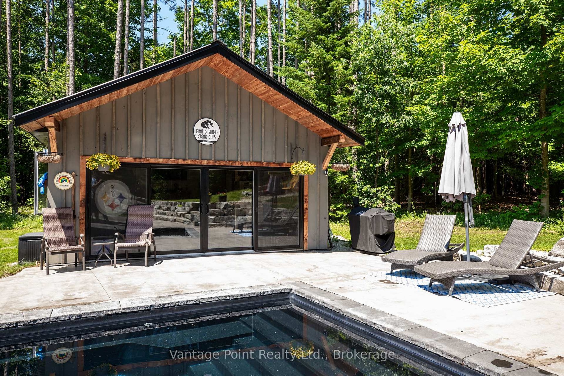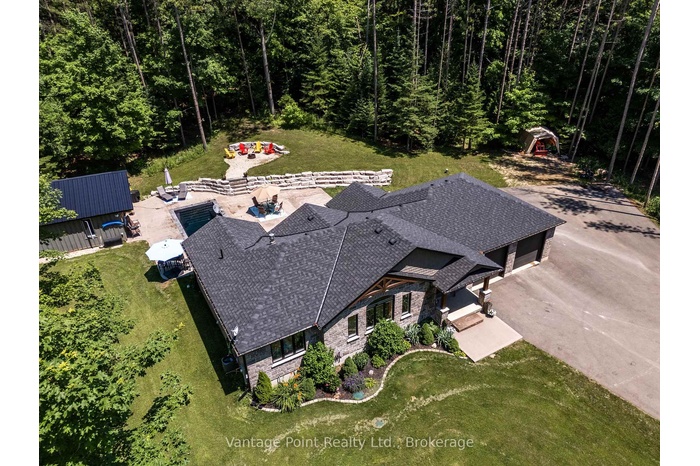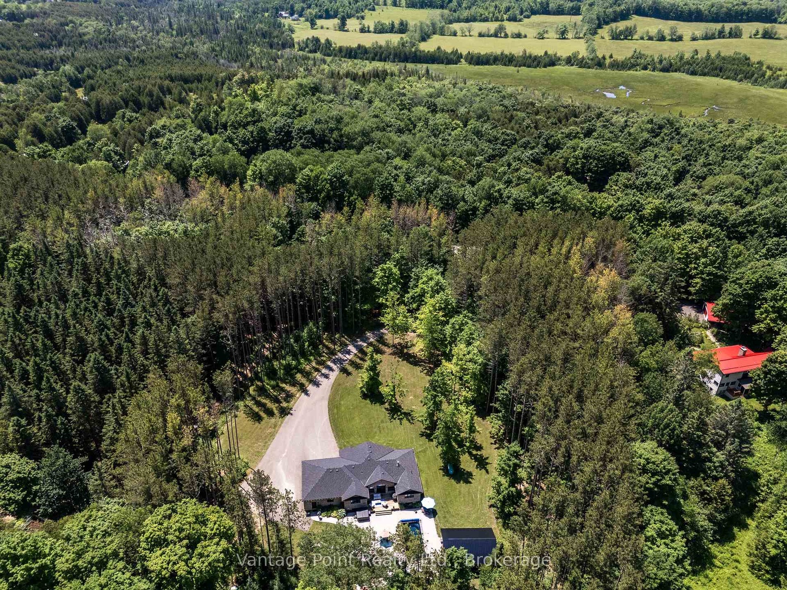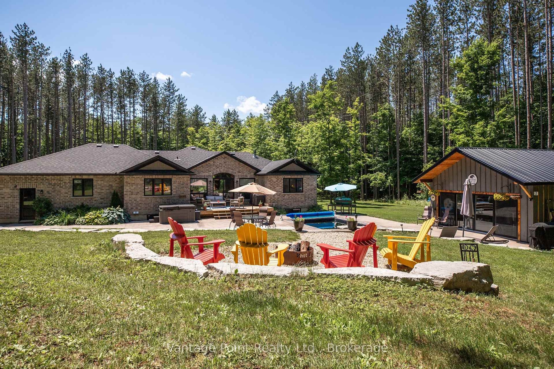 Welcome to your private oasis! Nestled on a private 6-acre property, this stunning estate offers the perfect blend of luxury, comfort, and tranquility. As you drive up the newly asphalted winding driveway, you'll immediately notice the exquisite landscape and privacy being surrounded by beautiful tall trees creating a picturesque and inviting entrance. The centerpiece of the beautiful backyard is the in-ground heated swimming pool, complete with a spacious concrete patio complimented by impressive armor stone retaining walls, making it perfect for lounging and entertaining. Adjacent to the pool, the 500 square foot pool lounge has the comfort of heating, cooling, a stylish bar, and a cozy gas fireplace, providing the ideal setting for year-round enjoyment. This exceptional property also includes a 2-car garage equipped with an electric car charging station. Inside, the home offers a seamless blend of elegance and practicality with an open concept kitchen and living area. The master bedroom is a true retreat, featuring access to the back deck by the hot tub, a walk-in closet and a luxurious ensuite bathroom, and for added convenience there's a laundry chute in the closet. The secluded deck and a soothing hot tub provide additional outdoor relaxation options, all surrounded by tall trees that enhance the sense of privacy and seclusion. The finished basement adds valuable living space, perfect for a family room, home office, or recreational area. Experience the ultimate in luxury living with this remarkable property. Close to multiple lakes such as Farden lake, Bells Lake, Townsend Lake, Irish lake, Robson Lake, and Eugenia lake. The Glenelg Klondike is also around the corner which features 400 acres of trails and groomed cross country skiing trails.