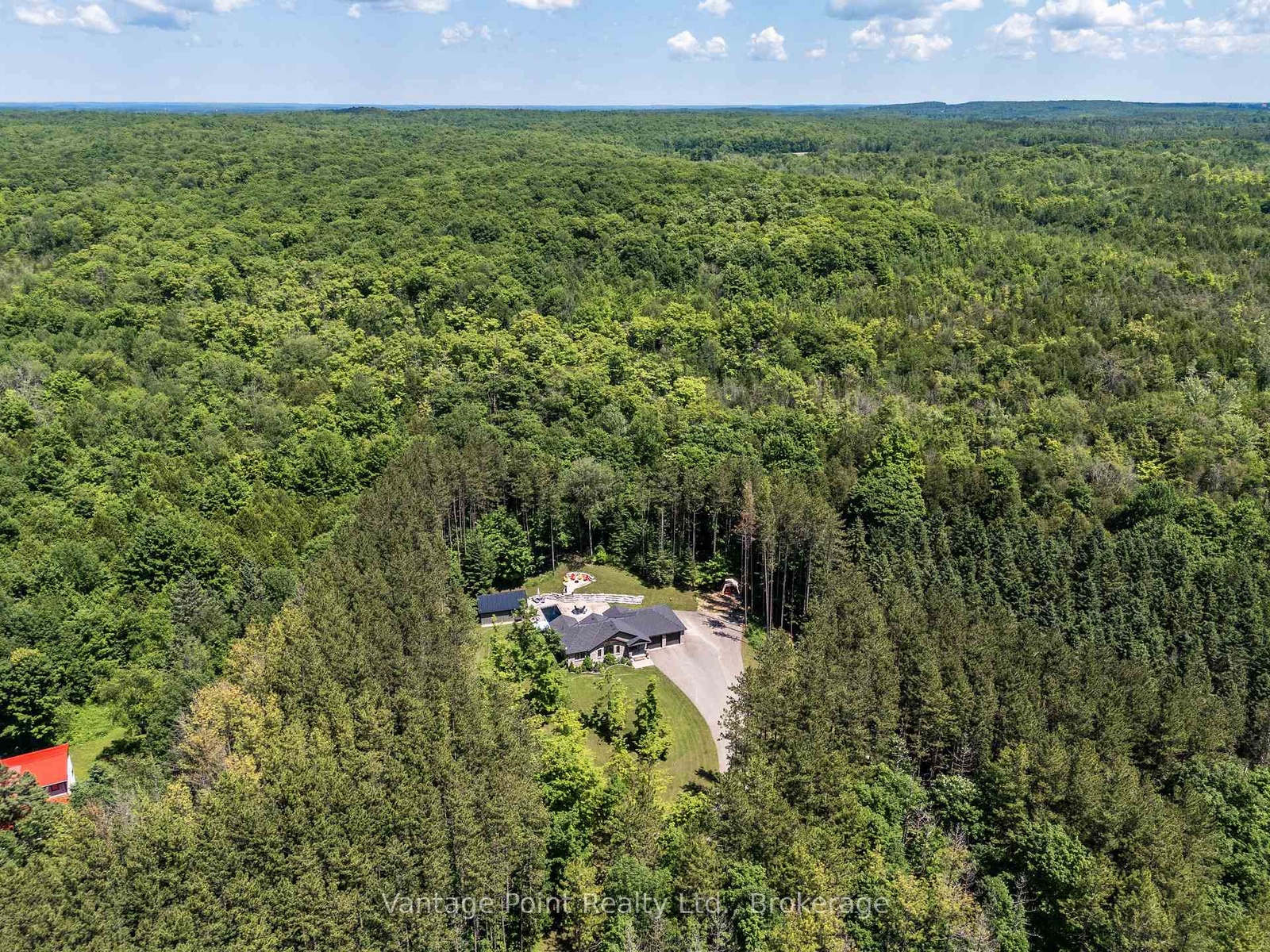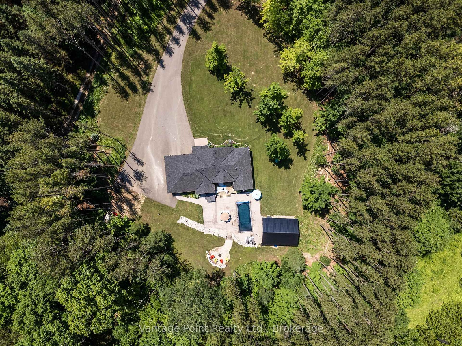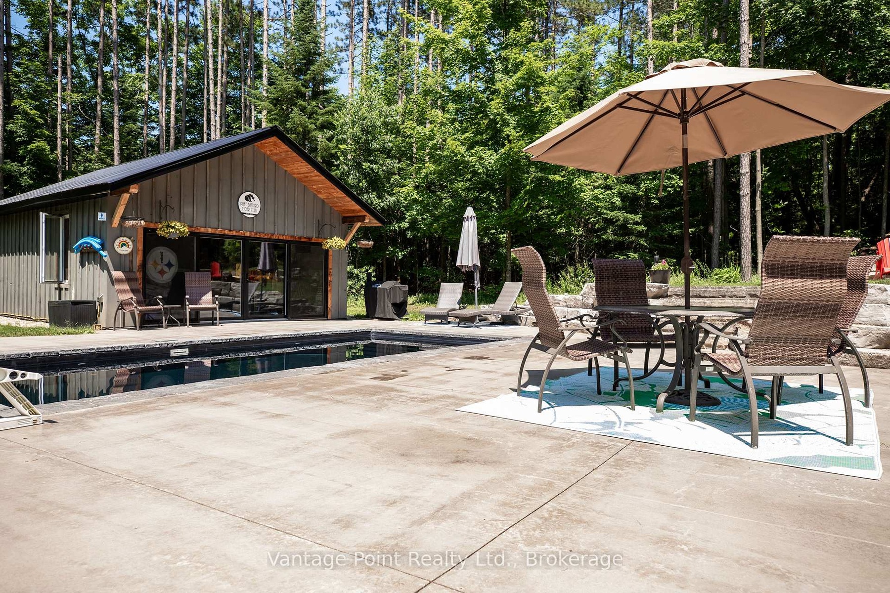 Welcome to your private oasis! Nestled on a private 6-acre property, this stunning estate offers the perfect blend of luxury, comfort, and tranquility. As you drive up the newly asphalted winding driveway, you'll immediately notice the exquisite landscape and privacy being surrounded by beautiful tall trees creating a picturesque and inviting entrance. The centerpiece of the beautiful backyard is the in-ground heated swimming pool, complete with a spacious concrete patio complimented by impressive armor stone retaining walls, making it perfect for lounging and entertaining. Adjacent to the pool, the 500 square foot pool lounge has the comfort of heating, cooling, a stylish bar, and a cozy gas fireplace, providing the ideal setting for year-round enjoyment. This exceptional property also includes a 2-car garage equipped with an electric car charging station. Inside, the home offers a seamless blend of elegance and practicality with an open concept kitchen and living area. The master bedroom is a true retreat, featuring access to the back deck by the hot tub, a walk-in closet and a luxurious ensuite bathroom, and for added convenience there's a laundry chute in the closet. The secluded deck and a soothing hot tub provide additional outdoor relaxation options, all surrounded by tall trees that enhance the sense of privacy and seclusion. The finished basement adds valuable living space, perfect for a family room, home office, or recreational area. Experience the ultimate in luxury living with this remarkable property. Close to multiple lakes such as Farden lake, Bells Lake, Townsend Lake, Irish lake, Robson Lake, and Eugenia lake. The Glenelg Klondike is also around the corner which features 400 acres of trails and groomed cross country skiing trails.