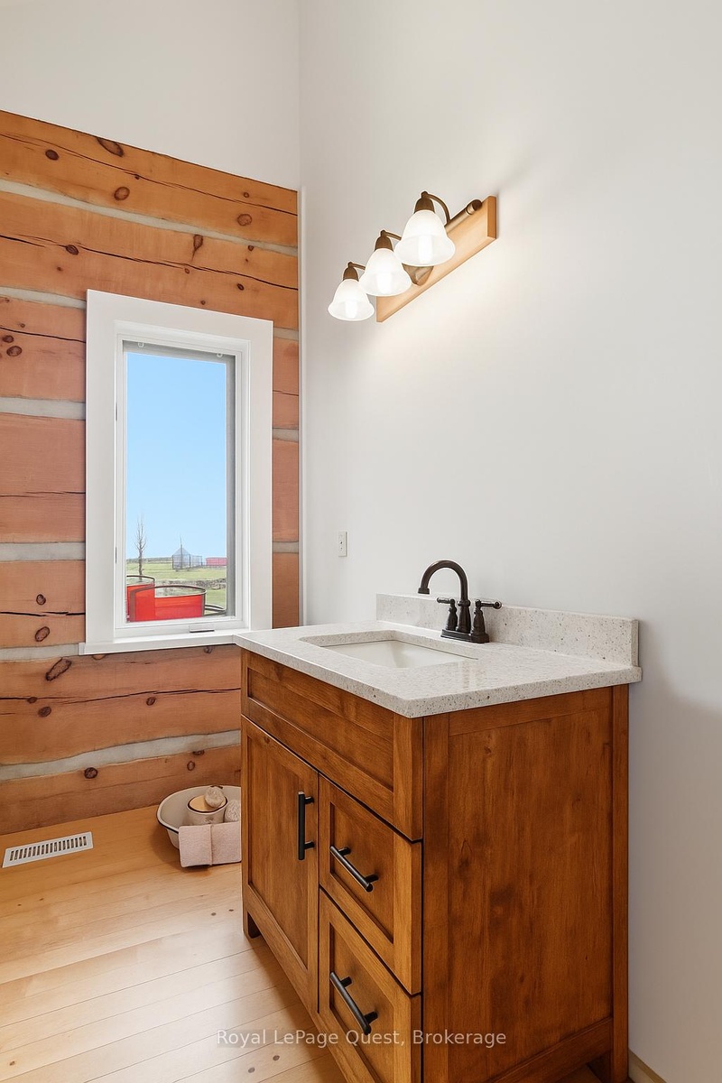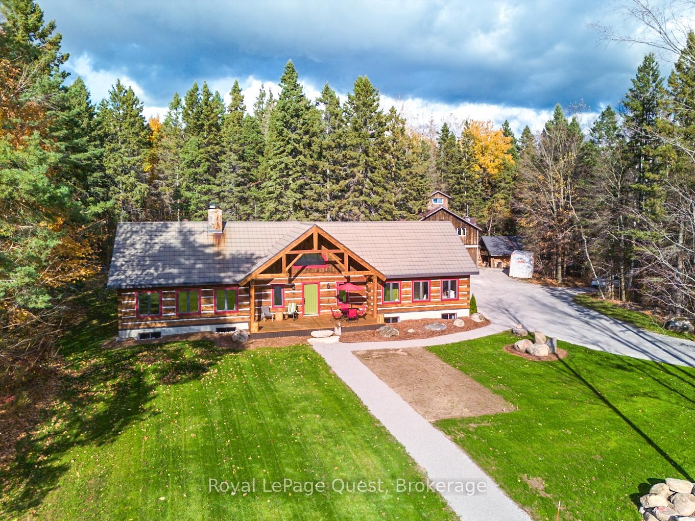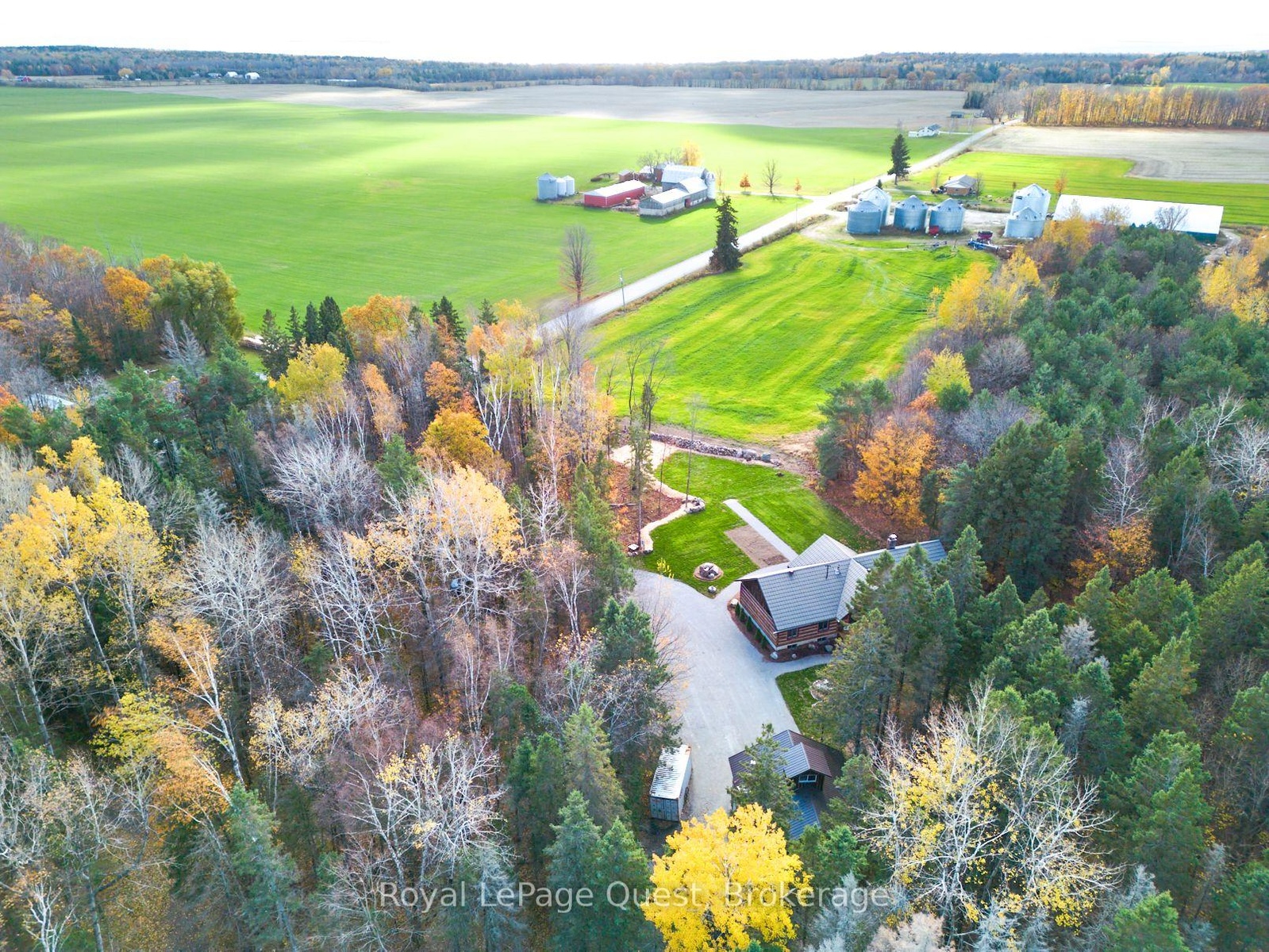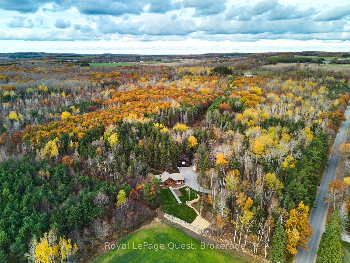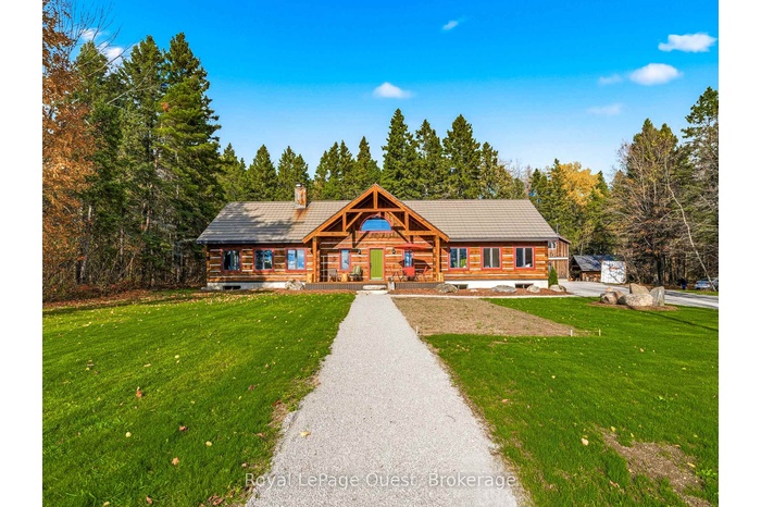 Custom home on 50.6 acres +/- with stunning views of Georgian Bay, farm land, and Blue Mountain seen from the living room, primary bedroom, and covered porch. The home offers privacy from the road, the convenience of a wrap-around driveway, and finished garage/shop.10 minute drive to all major shopping in the area and a three minute drive to the sandy beach at the bottom of Con 14 W. Note: The treed acreage is part of the Ontario managed forest tax incentive program. Also, one of the bedrooms was converted into a large walk-in closet for the primary, which can be changed back if the buyer wishes. The exterior of the home was just refinished (including new chinking) by an expert log home builder. Landscaping was also done this year and the view across the bay has been opened up. Come see this beauty!