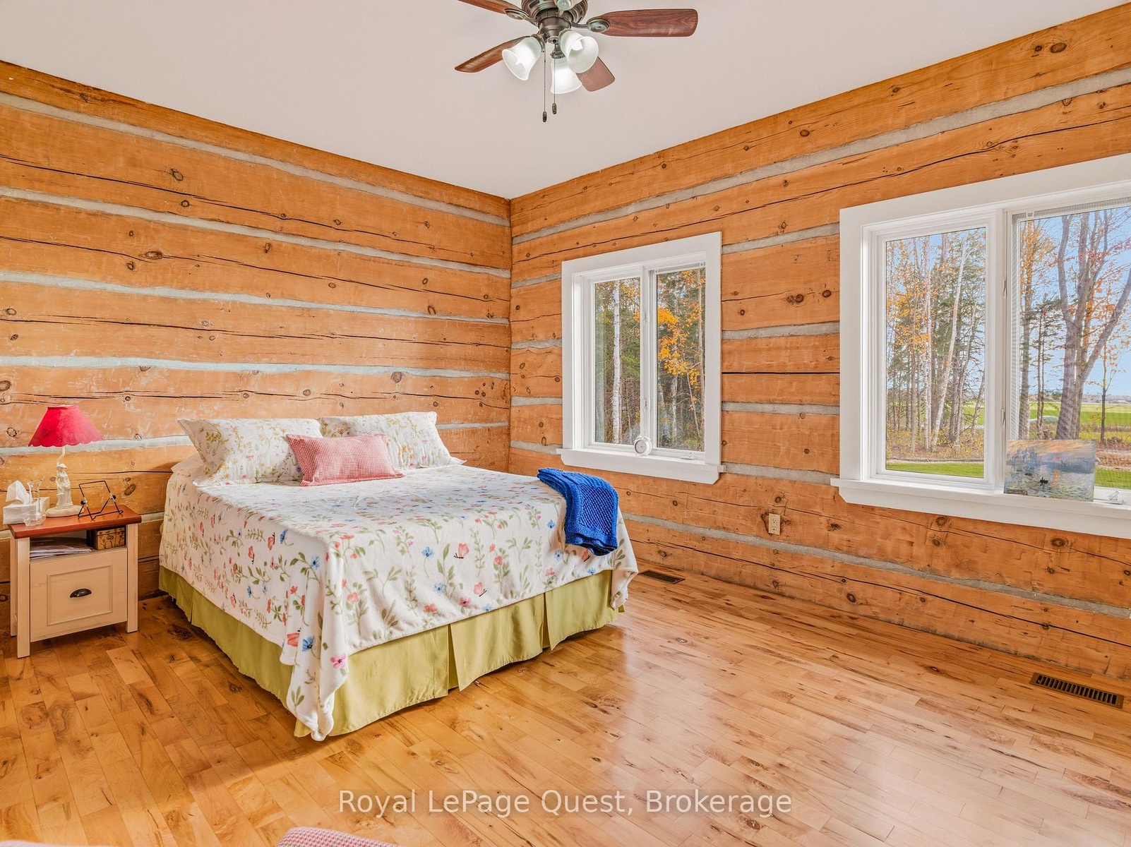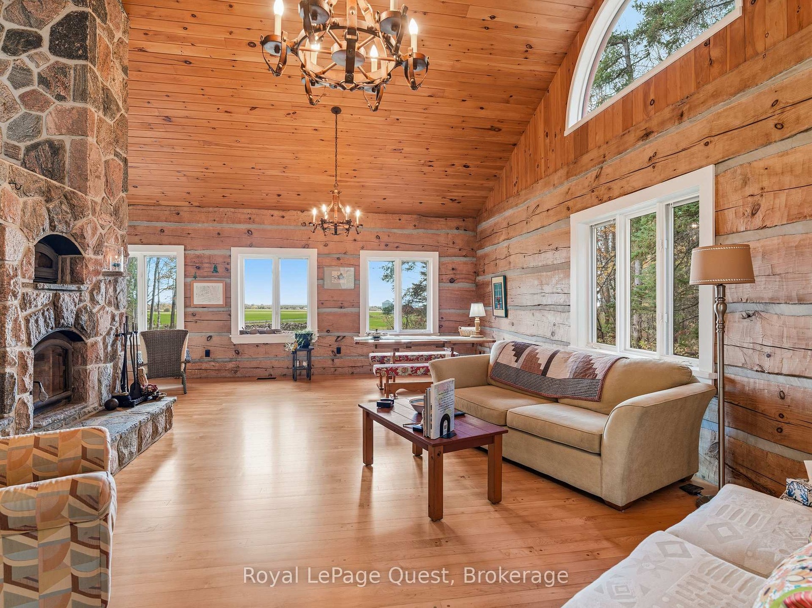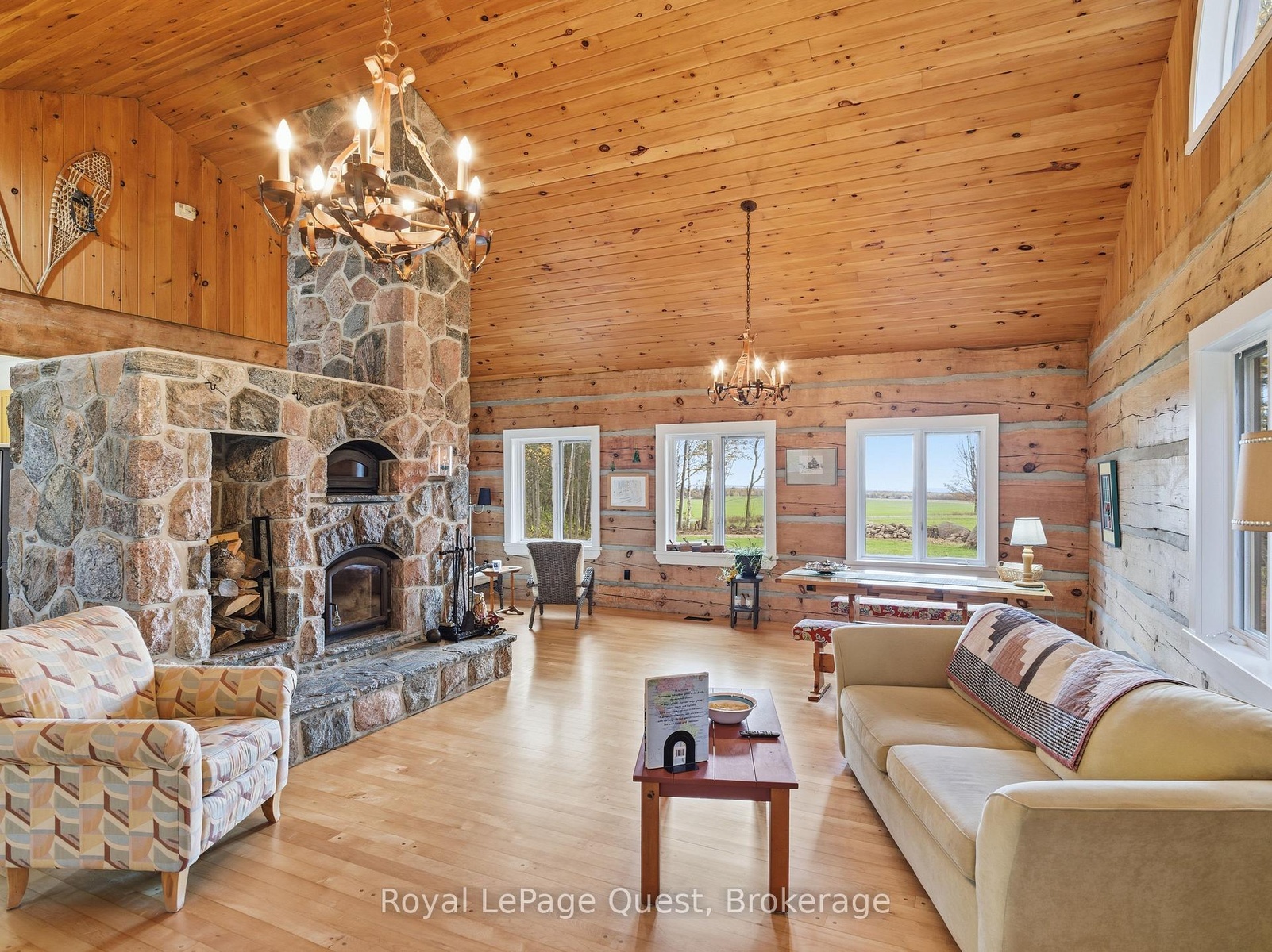 Custom home on 50.6 acres +/- with stunning views of Georgian Bay, farm land, and Blue Mountain seen from the living room, primary bedroom, and covered porch. The home offers privacy from the road, the convenience of a wrap-around driveway, and finished garage/shop.10 minute drive to all major shopping in the area and a three minute drive to the sandy beach at the bottom of Con 14 W. Note: The treed acreage is part of the Ontario managed forest tax incentive program. Also, one of the bedrooms was converted into a large walk-in closet for the primary, which can be changed back if the buyer wishes. The exterior of the home was just refinished (including new chinking) by an expert log home builder. Landscaping was also done this year and the view across the bay has been opened up. Come see this beauty!