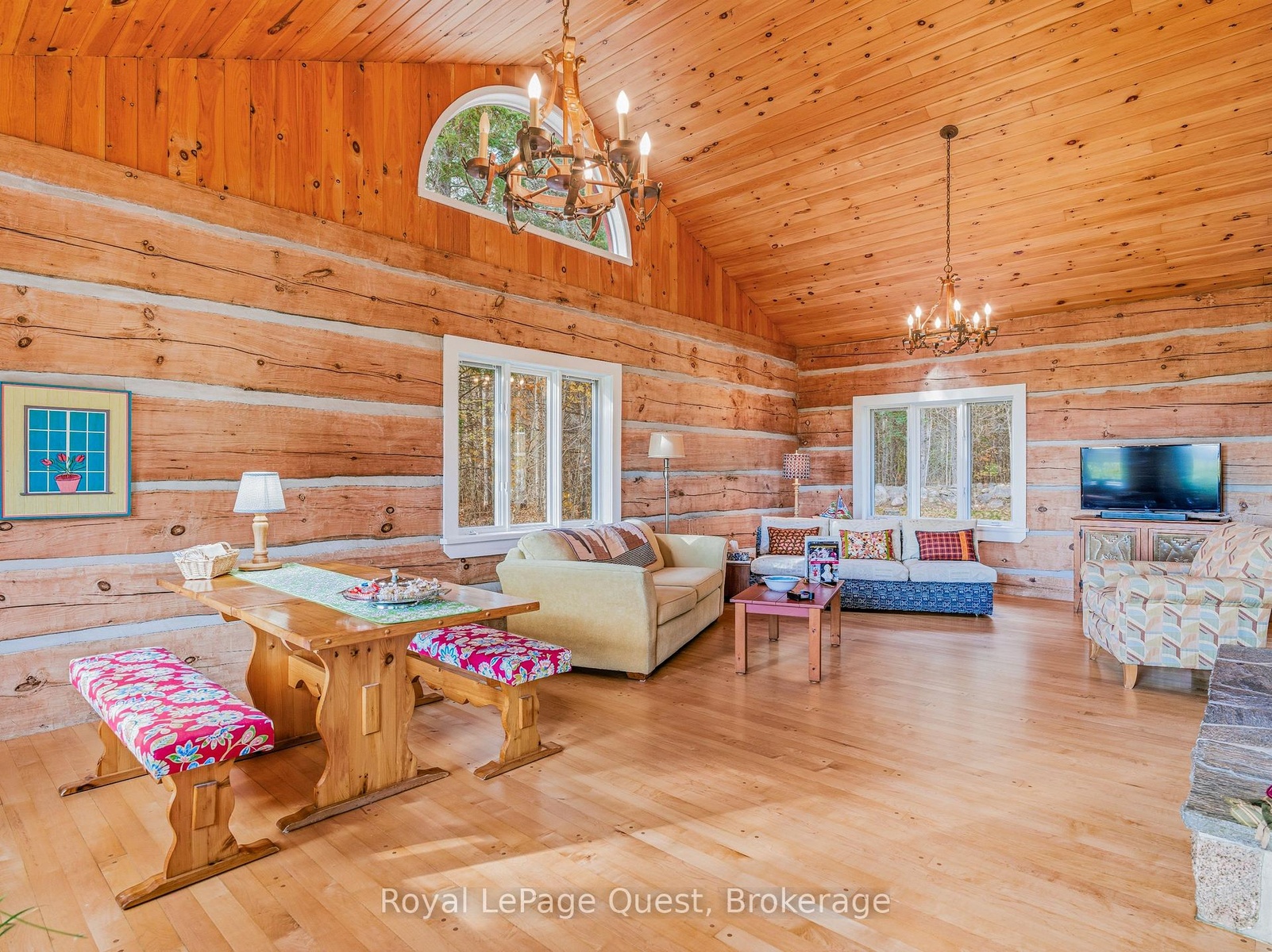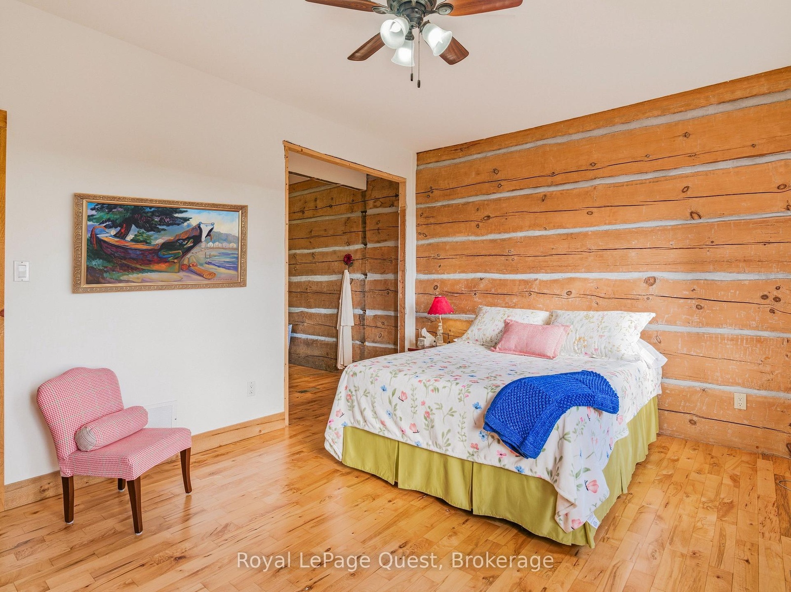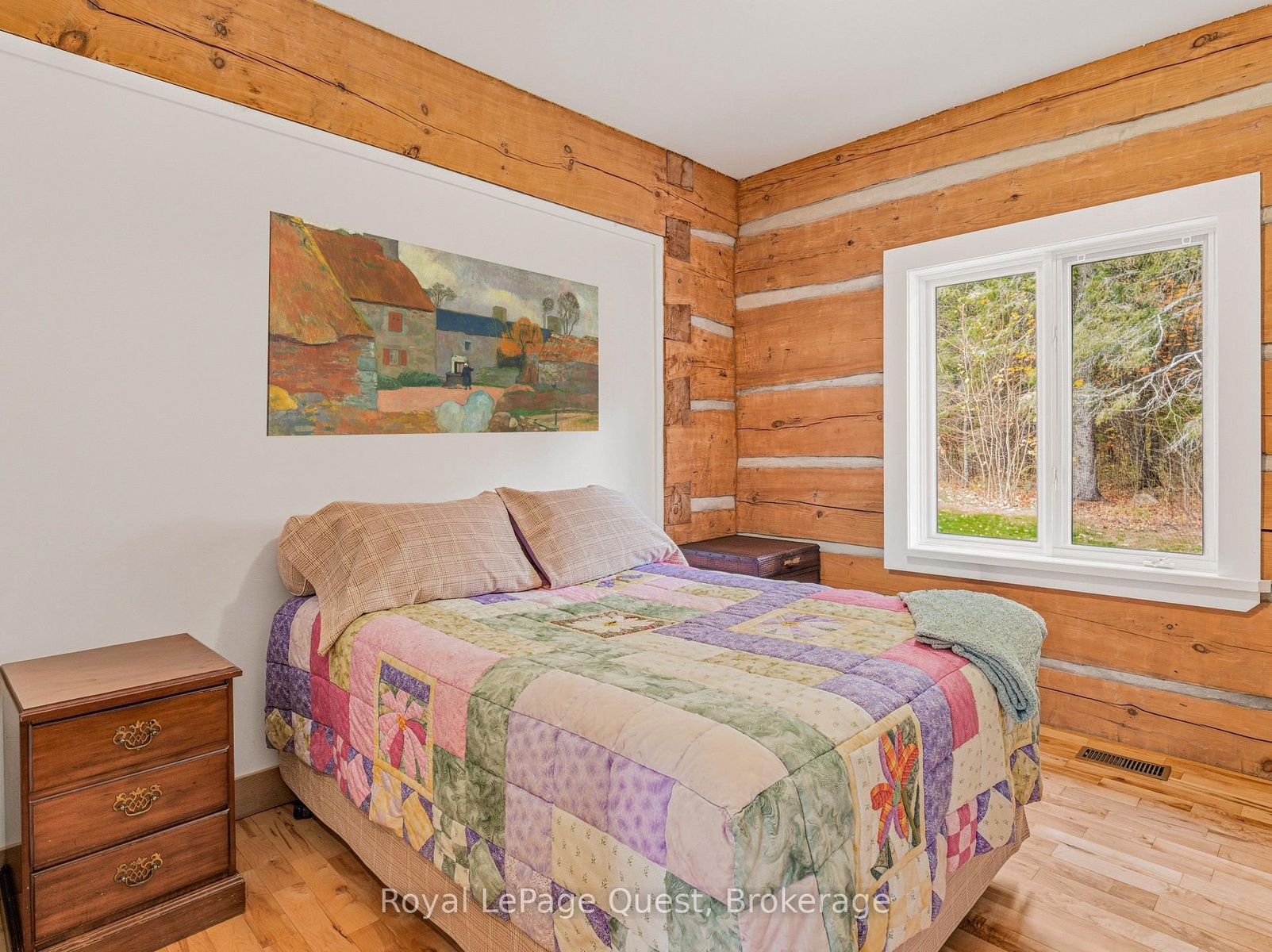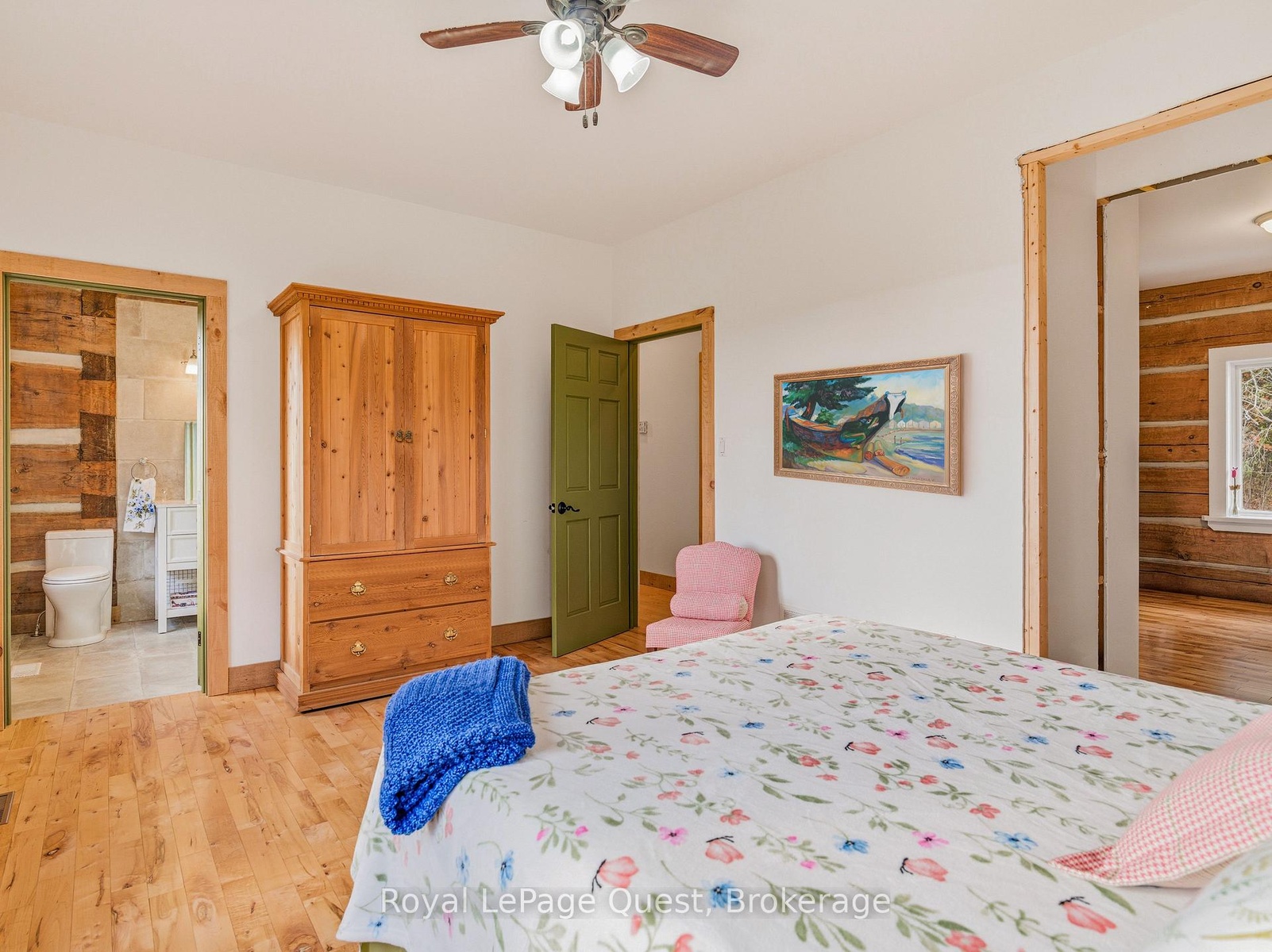 Custom home on 50.6 acres +/- with stunning views of Georgian Bay, farm land, and Blue Mountain seen from the living room, primary bedroom, and covered porch. The home offers privacy from the road, the convenience of a wrap-around driveway, and finished garage/shop.10 minute drive to all major shopping in the area and a three minute drive to the sandy beach at the bottom of Con 14 W. Note: The treed acreage is part of the Ontario managed forest tax incentive program. Also, one of the bedrooms was converted into a large walk-in closet for the primary, which can be changed back if the buyer wishes. The exterior of the home was just refinished (including new chinking) by an expert log home builder. Landscaping was also done this year and the view across the bay has been opened up. Come see this beauty!