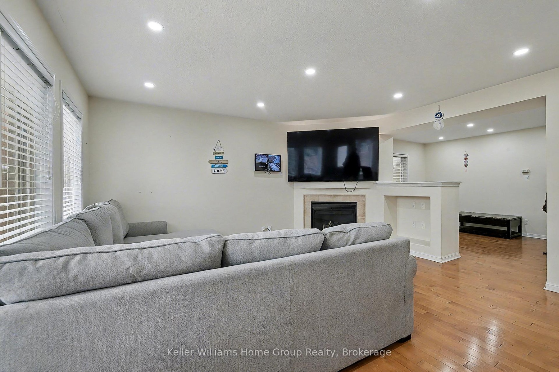 Enjoy uninterrupted views over green space from this bright and spacious 3 bed, 2.5 bath two-story home. From the moment you step onto the covered front porch, this home pulls you in with the promise of comfort, light, and room to breathe. Sun pours through the open concept main floor that features a spacious kitchen with Stainless Steel appliances, a breakfast bar and built-in seating in the dining room. A gas fireplace is visible from the living room, dining room, and kitchen. A second family room and a convenient powder room complete the main level, along with a walkout to your patio and low-maintenance yard. It's the kind of layout that keeps everyone connected, whether you're cooking, relaxing, or hosting. Upstairs, you will find three spacious bedrooms and a dedicated laundry room. The primary suite offers a little sanctuary of its own, complete with incredible views, a generous walk-in closet, and a relaxing 4-piece ensuite with a separate shower and deep soaker tub. The additional bedrooms are connected by a shared Jack-and-Jill bathroom-ideal for kids, siblings, or guests who appreciate a bit of privacy. Backing onto walking trails, 24 Baintree Way is located minutes from the 401, shopping, schools, great dining and everything this popular North Galt neighbourhood has to offer.