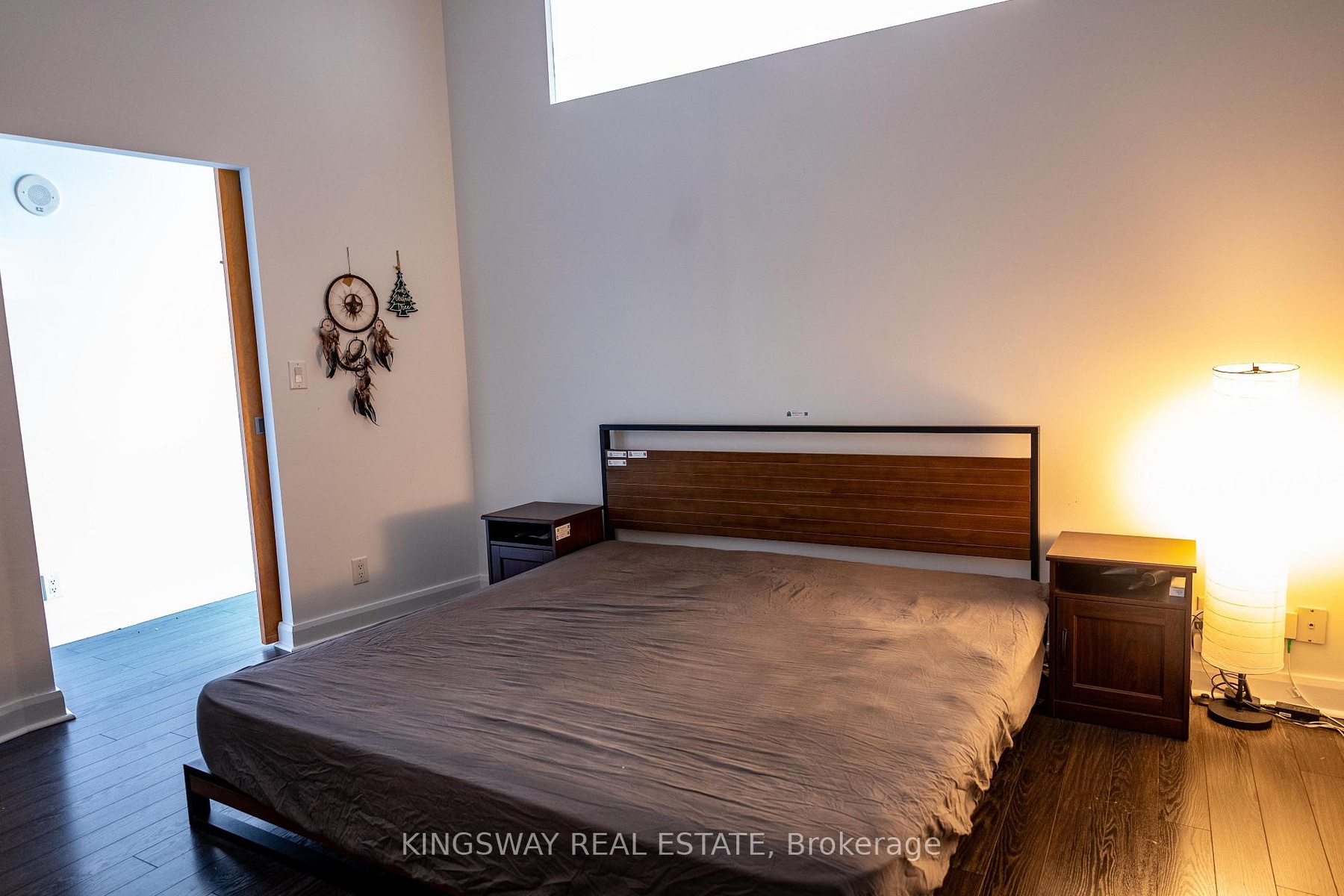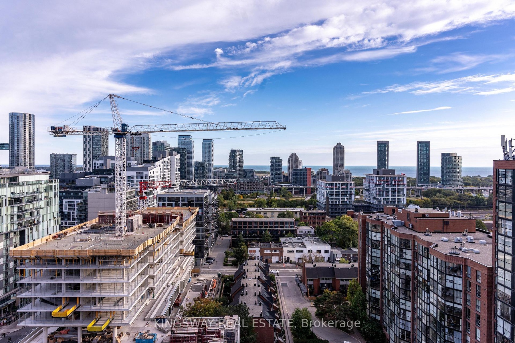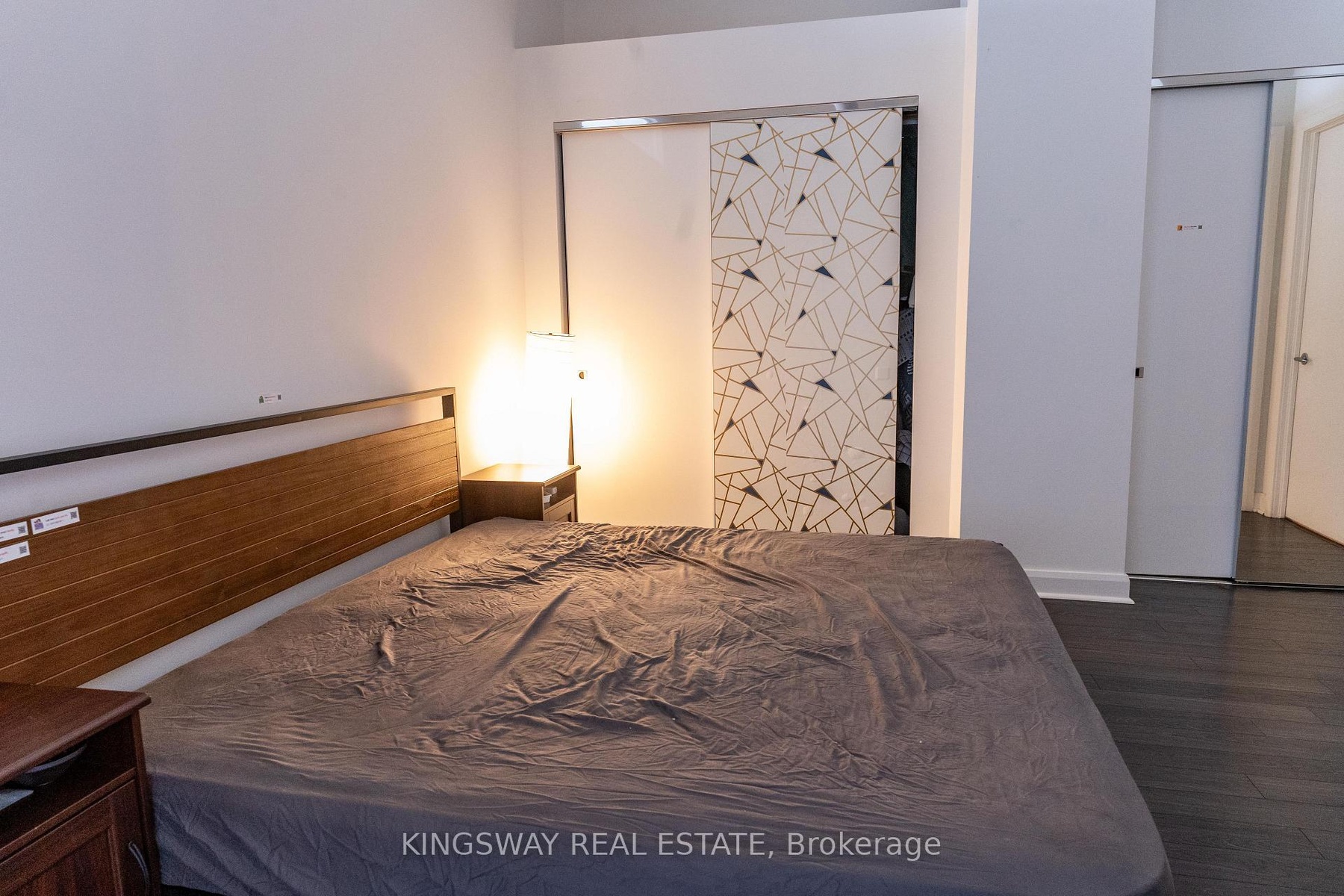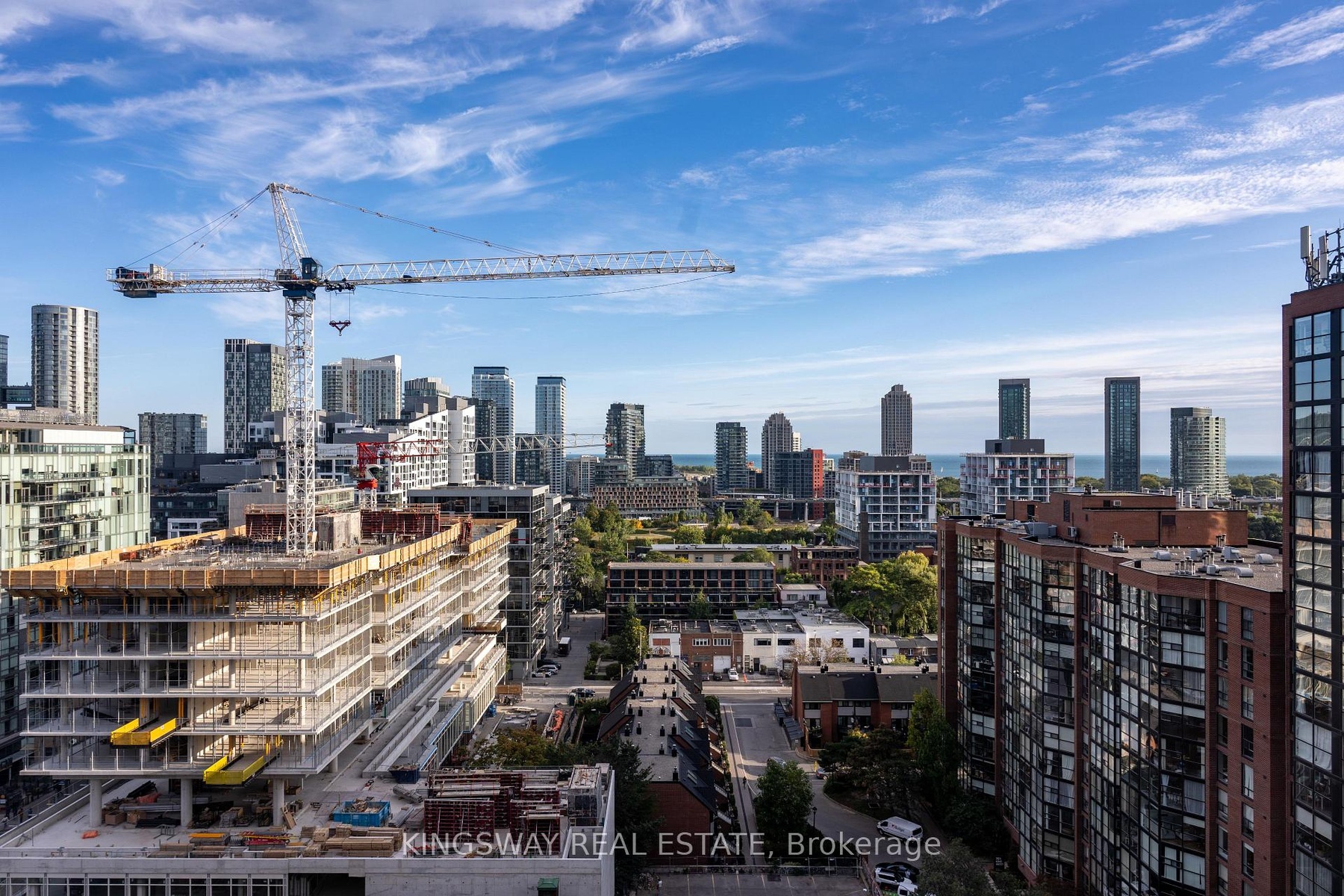 Lower Penthouse Hard Loft in the heart of King West. Experience true hard loft living with soaring 11-foot ceilings and sun-filled south exposure offering stunning city and lake views. Built from a former office building, this suite features thicker concrete construction for excellent sound insulation. Open-concept layout with sleek laminate flooring throughout. Enjoy the best of downtown living with shops, restaurants, and transit at your doorstep.