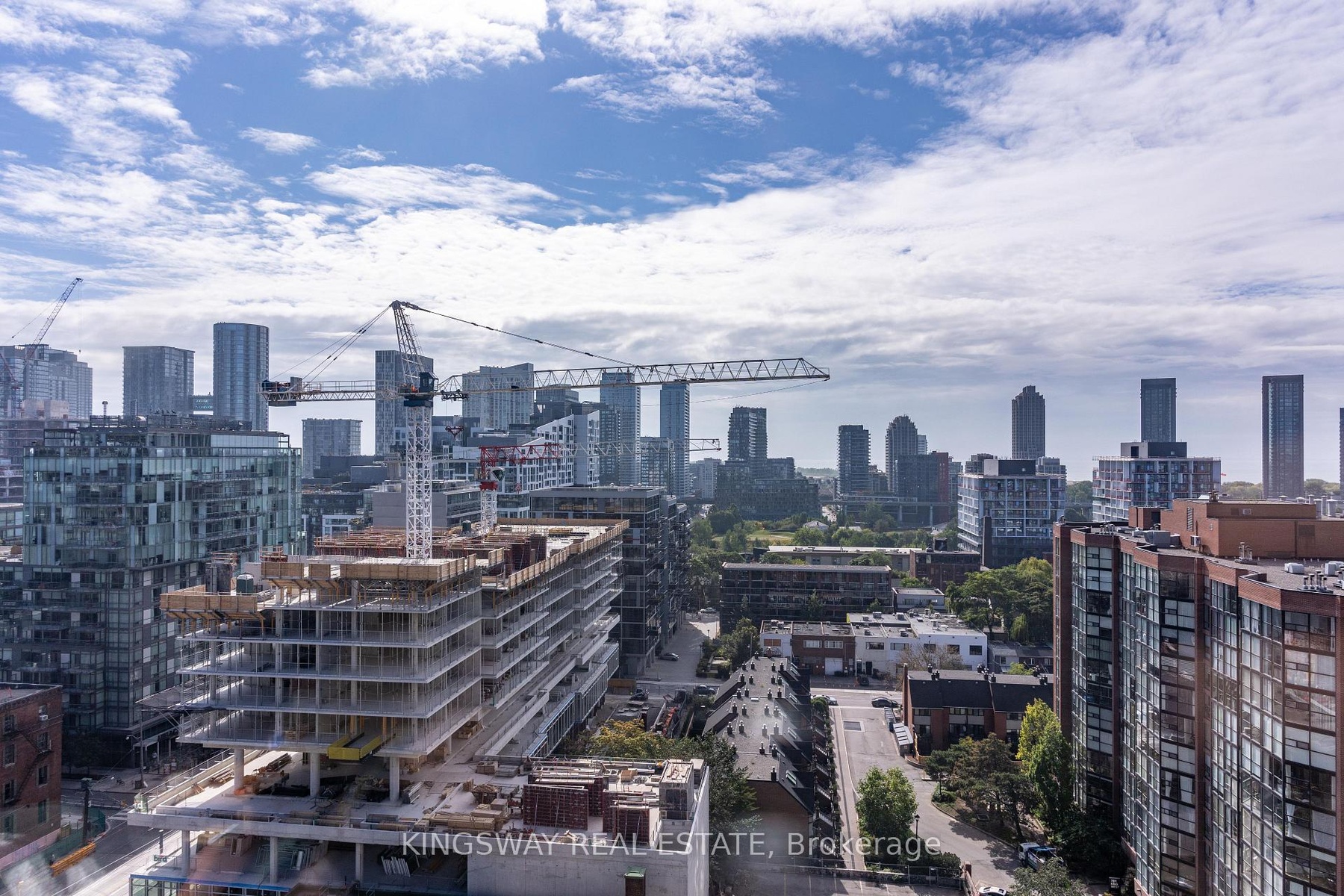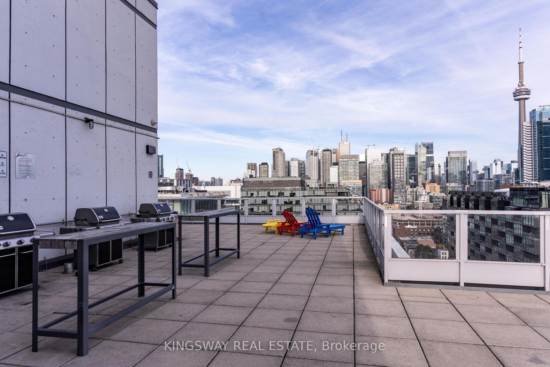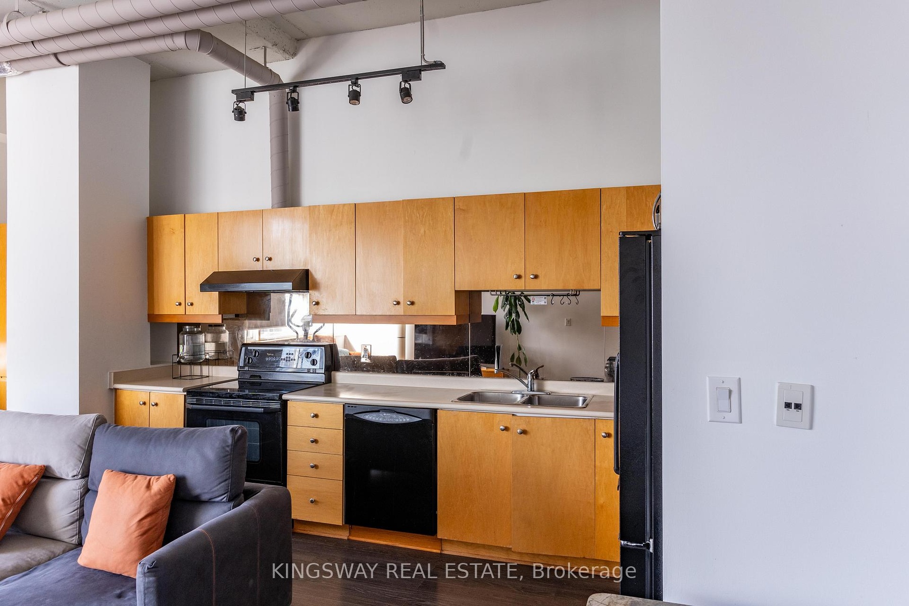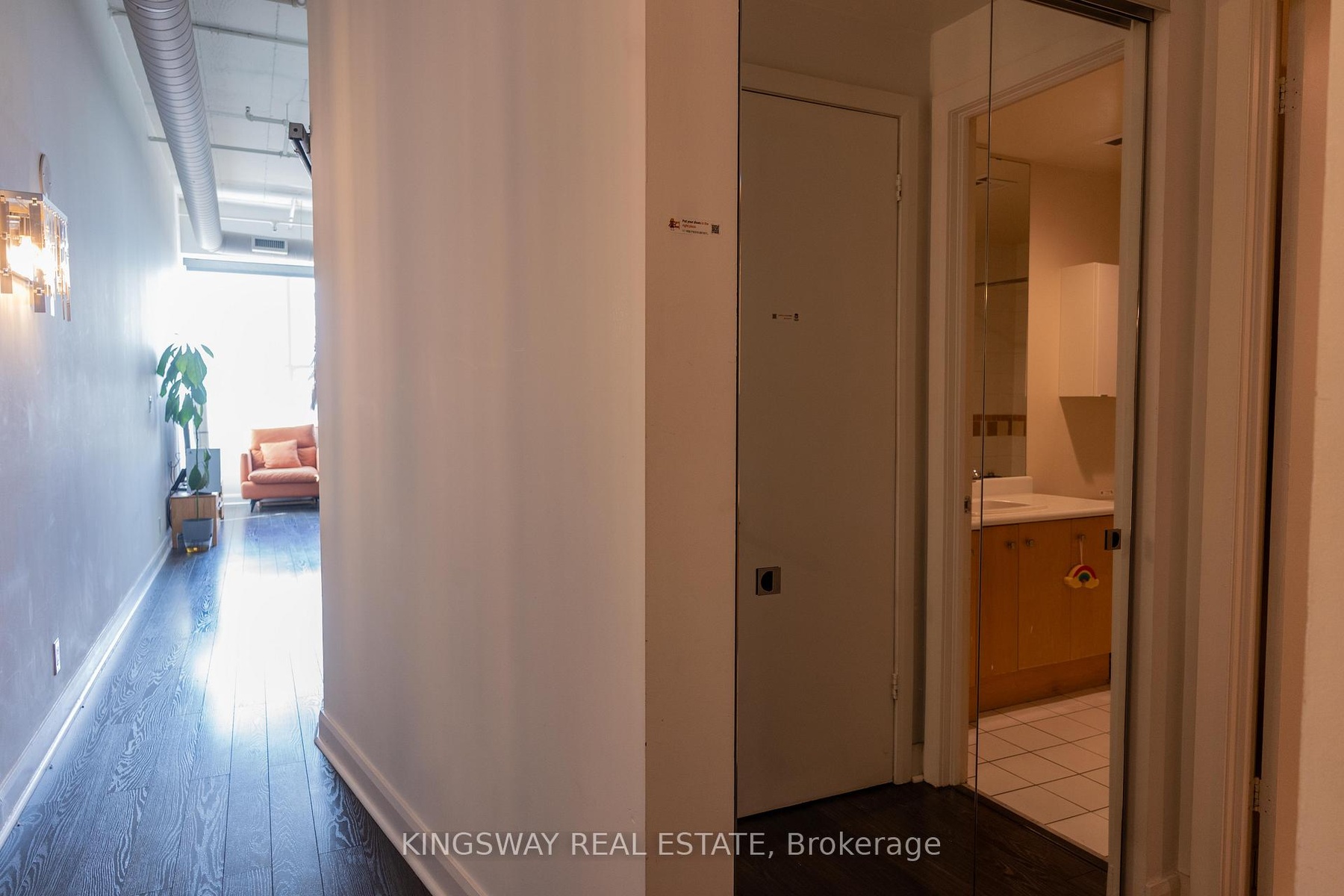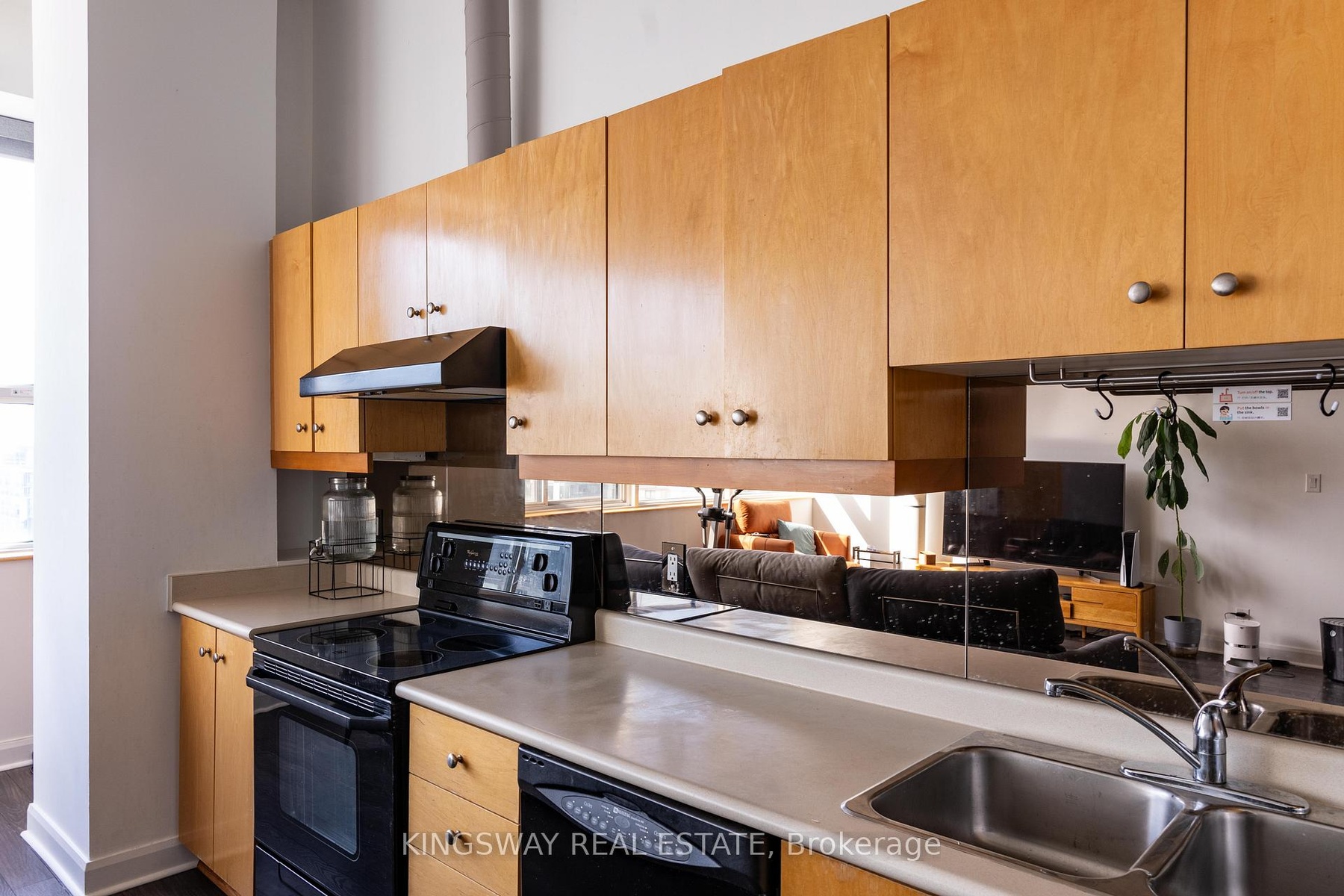 Lower Penthouse Hard Loft in the heart of King West. Experience true hard loft living with soaring 11-foot ceilings and sun-filled south exposure offering stunning city and lake views. Built from a former office building, this suite features thicker concrete construction for excellent sound insulation. Open-concept layout with sleek laminate flooring throughout. Enjoy the best of downtown living with shops, restaurants, and transit at your doorstep.