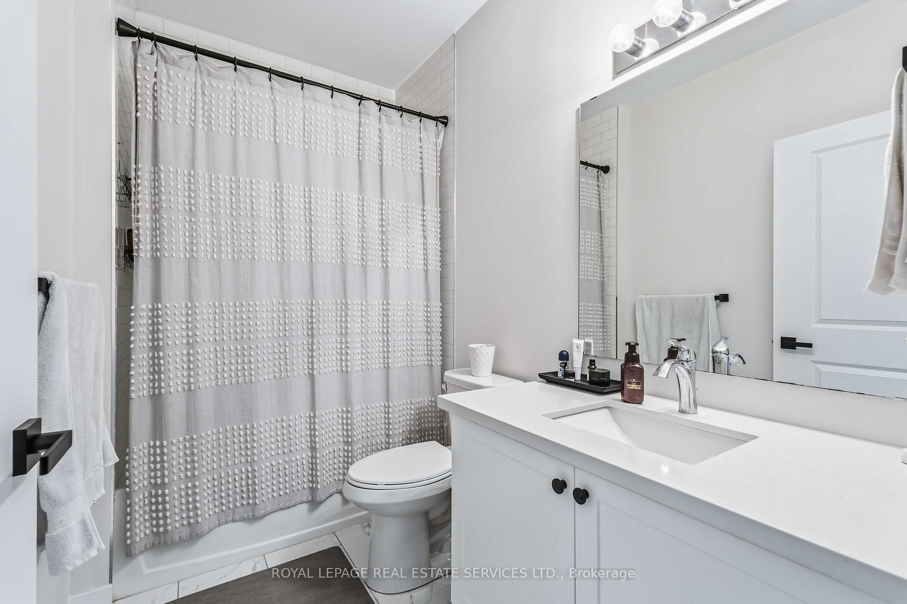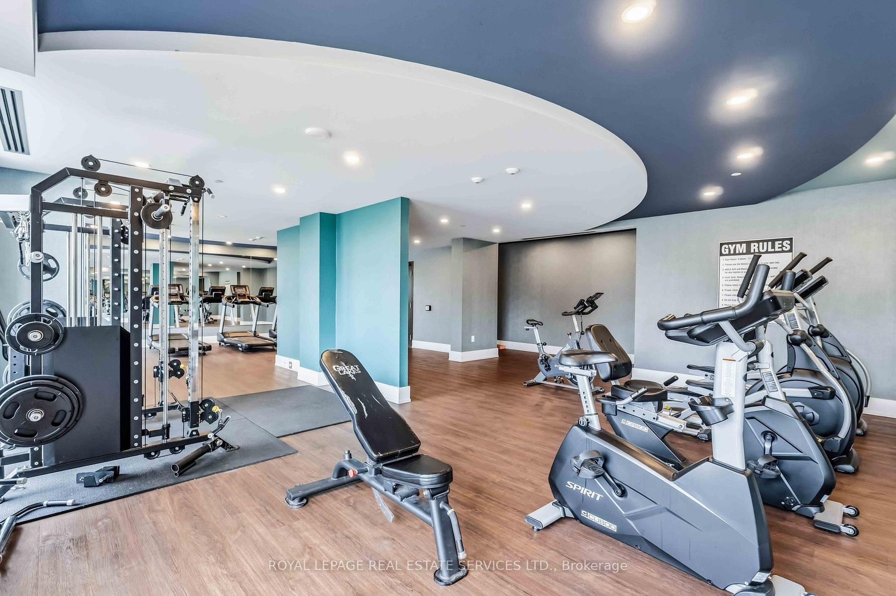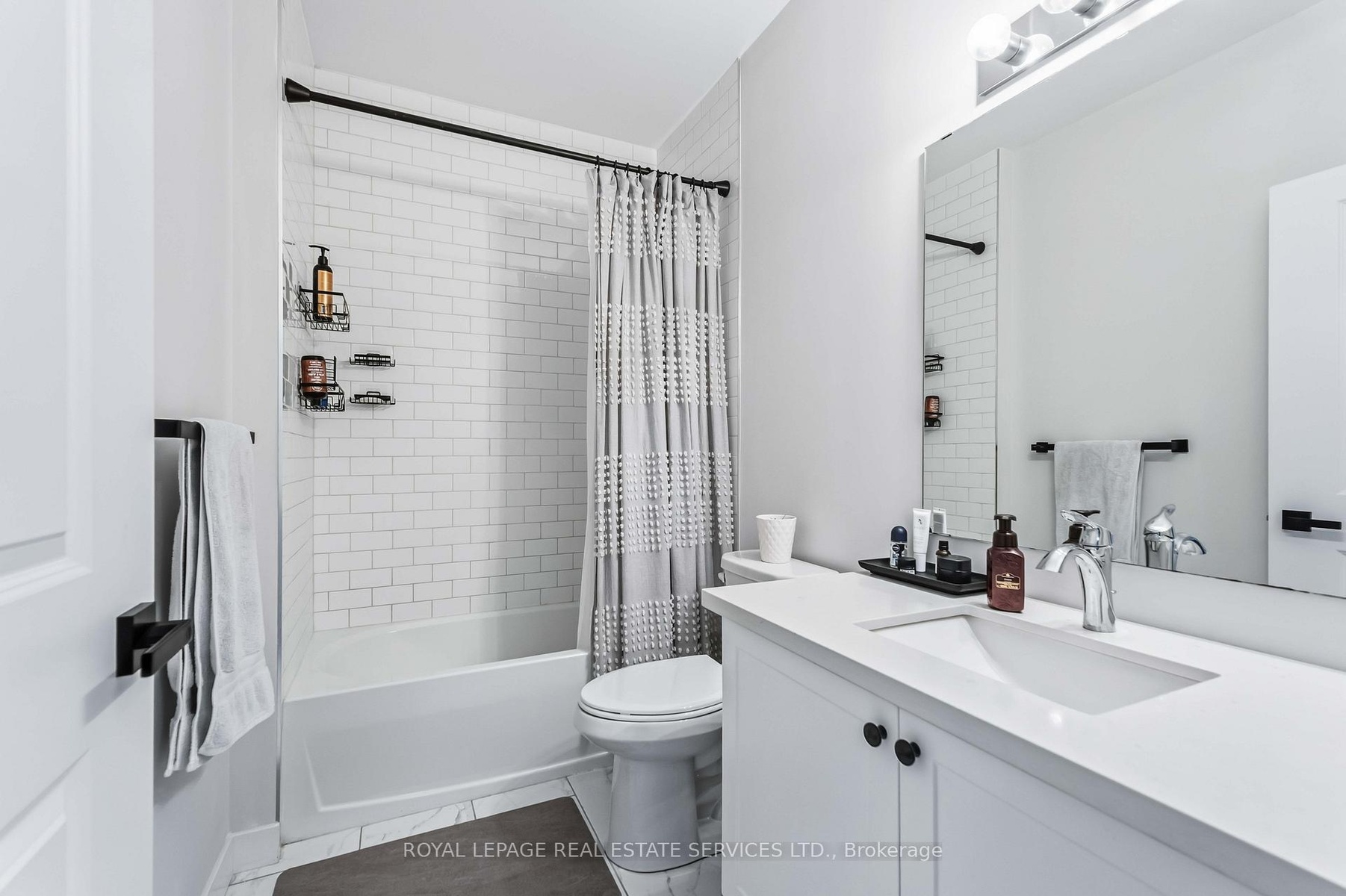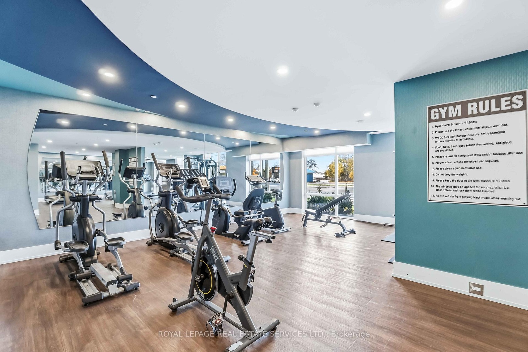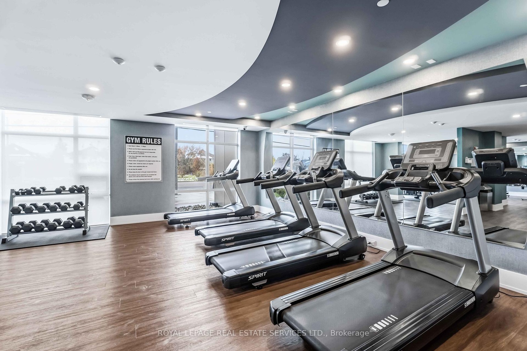 Experience modern living with this stunning 1-bedroom + den residence. The heart of the home is a modern, open-concept kitchen featuring a quartz peninsula island, subway backsplash, stainless steel appliances, and upgraded lighting. This flows seamlessly into a living and dining area defined by luxury vinyl plank flooring, a custom wall cabinet structure, and electric blinds, all leading to a sun-filled balcony walk-out. Beyond the main living space, you will find a versatile den perfect for a home office, a foyer with double mirrored closets, a 4-piece bathroom, and a bright primary bedroom with large windows. Perfectly situated for convenience, this unit is located just steps from the elevator, garbage chute, and your storage locker. Residents enjoy fabulous building amenities including a gym, party room, and meeting room, plus easy highway access for commuters. Don't miss out on this blend of luxury and convenience!