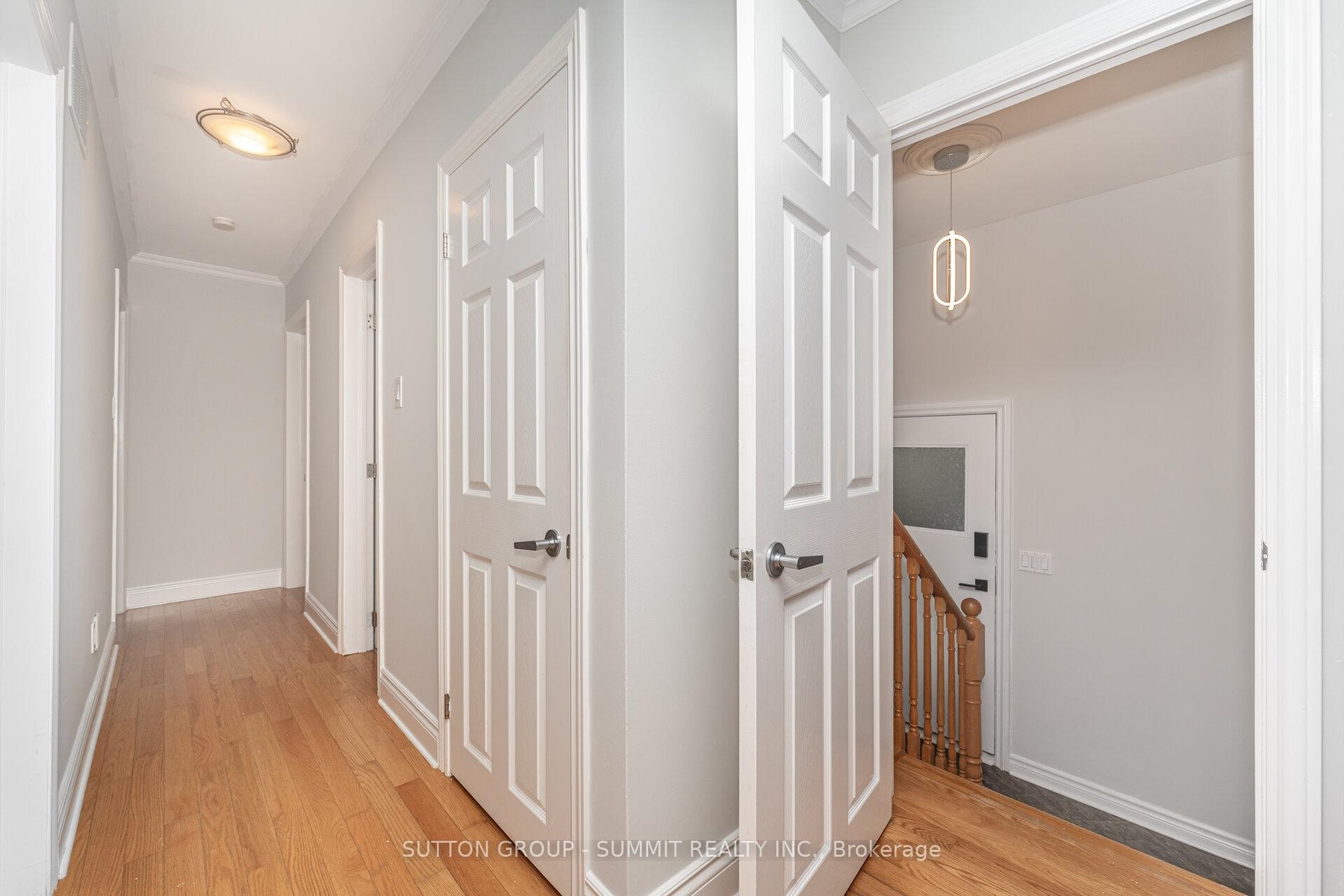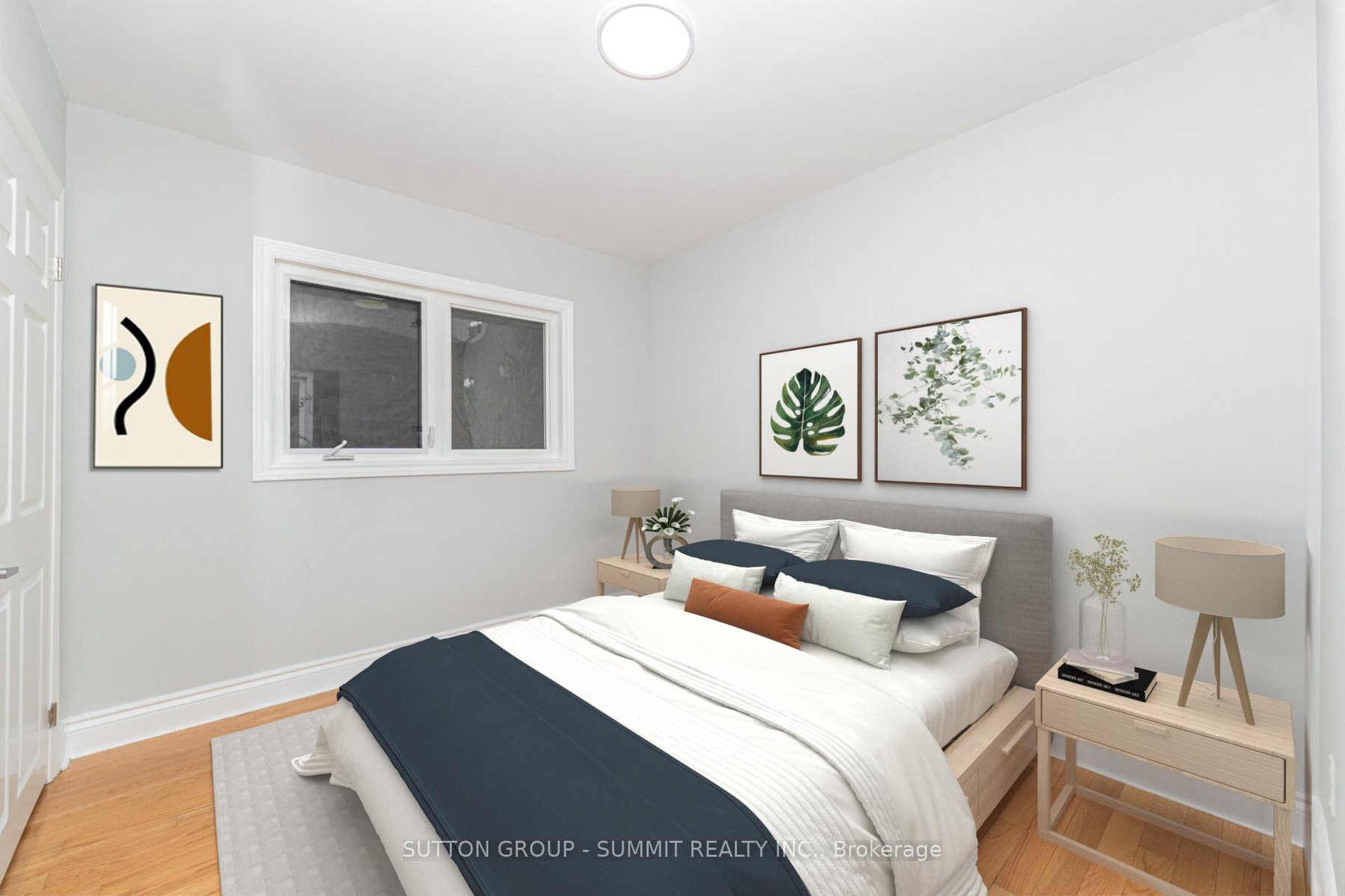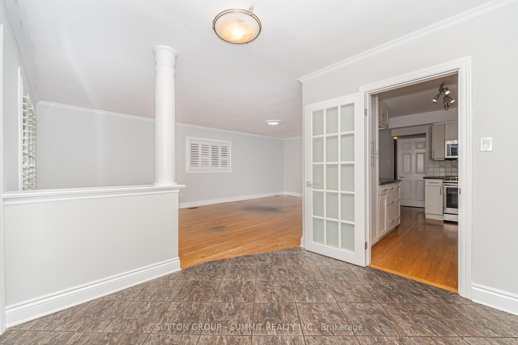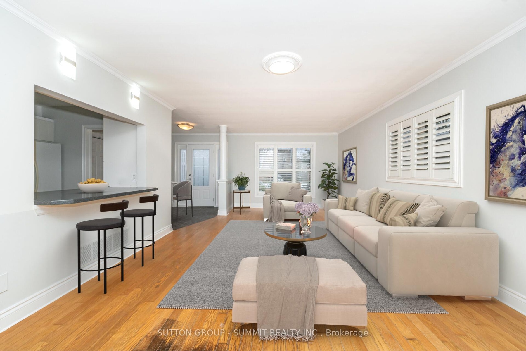 A RARE FIND IN A SOUGHT AFTER NEIGHBOURHOOD! Discover this exceptional bungalow with a 2 car garage on a beautiful 60 foot lot, surrounded by larger homes, a true gem in this area! This clean, spacious bungalow offers much more room than most, featuring a self-contained nanny or inlawsuite with its own separate entrance, kitchen, large family room with fireplace, storage room,and more. Perfect for extended families, investors, or anyone seeking versatile living options.Live separately, yet together, under one roof. Freshly painted throughout in November 2025, the home feels bright and welcoming. The white, neutral toned kitchen offers a clean, airy atmosphere, while the oversized foyer with wall to wall closet makes a grand first impression, ideal for entertaining. With no stairs on the main floor to the bedrooms, this home offers effortless, main level living that suits all ages. Enjoy your morning coffee on the charming front porch, surrounded by mature homes and friendly neighbours.Conveniently located near highways, shopping malls, big box stores, schools, parks, and public transit, this home offers both comfort and accessibility.Don't miss this rare opportunity. Spacious bungalows with 2 car garages like this are hard to find! Perfect for multi-generational living or potential rental income. Furnishings now removed. There are dark stains on the living room/dining room floor but nowhere else. The problem was rectified but left. The hardwood floors are in excellent condition throughout the house except these 2 rooms