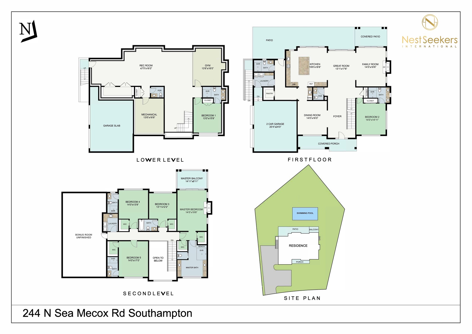 Welcome to your brand-new Hamptons oasis, nearing completion in early 2026, ideally located less than two miles from the Village of Southampton and just minutes from world-class ocean beaches. This thoughtfully designed residence by renowned Architect, Ryan Kesner, offers six bedrooms, seven full and two half bathrooms, and nearly 6,000 square feet of luxurious living space across three meticulously finished levels. Enter through a grand foyer and immediately appreciate the craftsmanship and attention to detail evident throughout. The first floor features an open and airy layout highlighted by a formal dining room, great room, and living room with a propane fireplace. The chef's kitchen is equipped with top-of-the-line appliances and is complemented by a butler's pantry. Additional first-floor amenities include a primary ensuite bedroom, powder room, full bath, and a laundry/mudroom providing access to the attached two-car garage. Three sliding glass doors open to the beautifully landscaped backyard, bringing natural light into the interior while revealing a 20' x 40' heated gunite pool that serves as the focal point of the outdoor living space, seamlessly blending indoor and outdoor living. Upstairs, the expansive primary suite features a fireplace, dual walk-in closets and vanities, a soaking tub, and a private balcony overlooking the grounds-providing a covered terrace below on the poolside patio. Three additional ensuite bedrooms and a versatile bonus space as well as a second laundry room complete this level. The finished lower level is designed for relaxation and recreation, offering a sixth ensuite bedroom, gym, an additional powder room and large media or game room. With its exceptional attention to detail, refined finishes, and ideal proximity to Southampton Village, 244 North Sea Mecox embodies the pinnacle of modern Hamptons luxury living.