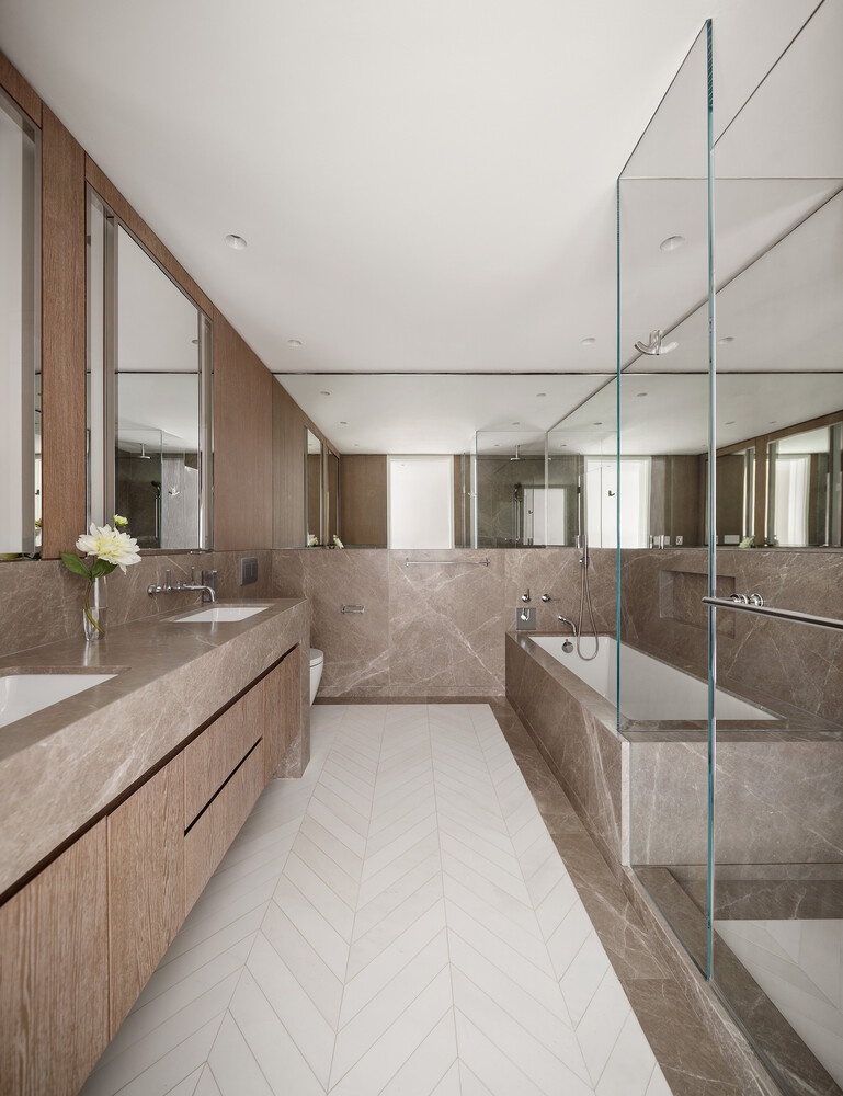 Designed by the visionary Rawlings Architects with interiors by Ryan Korban, 40 Bleecker embodies refined downtown sophistication. Korban's signature aesthetic: rich materials, graceful lines, and a muted yet luxurious palette which creates an atmosphere of quiet glamour. Inside the residence, Listone Giordano wide-plank chevron-patterned French oak floors, custom millwork, and elegant marble finishes complement an open-plan layout perfectly suited for both everyday living and grand entertaining.