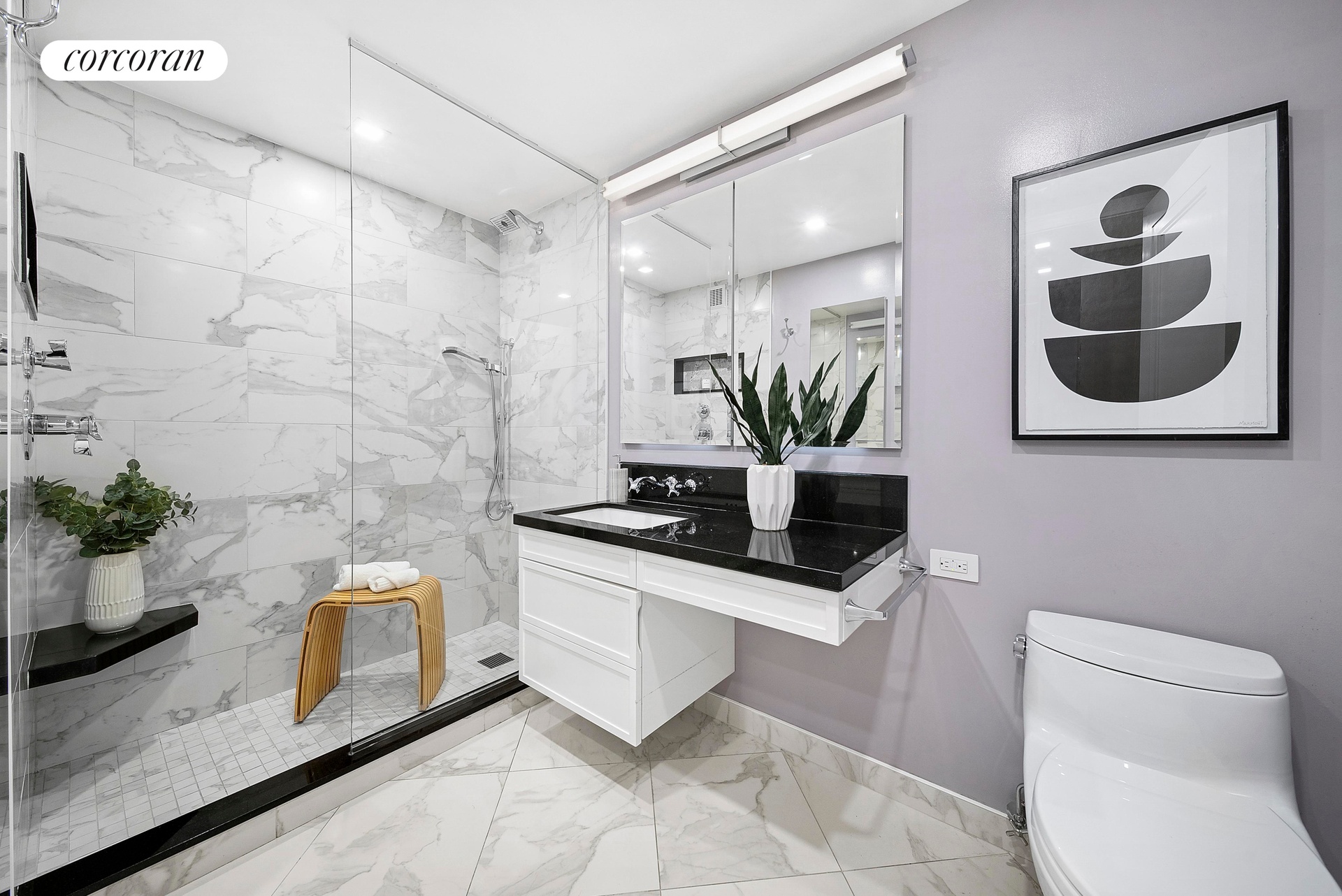 121 East 23rd Street, Residence 4D has been completely transformed from a traditional two-bedroom into an expansive one-bedroom plus den with two full bathrooms. This home offers both scale and style in the heart of the Flatiron District.