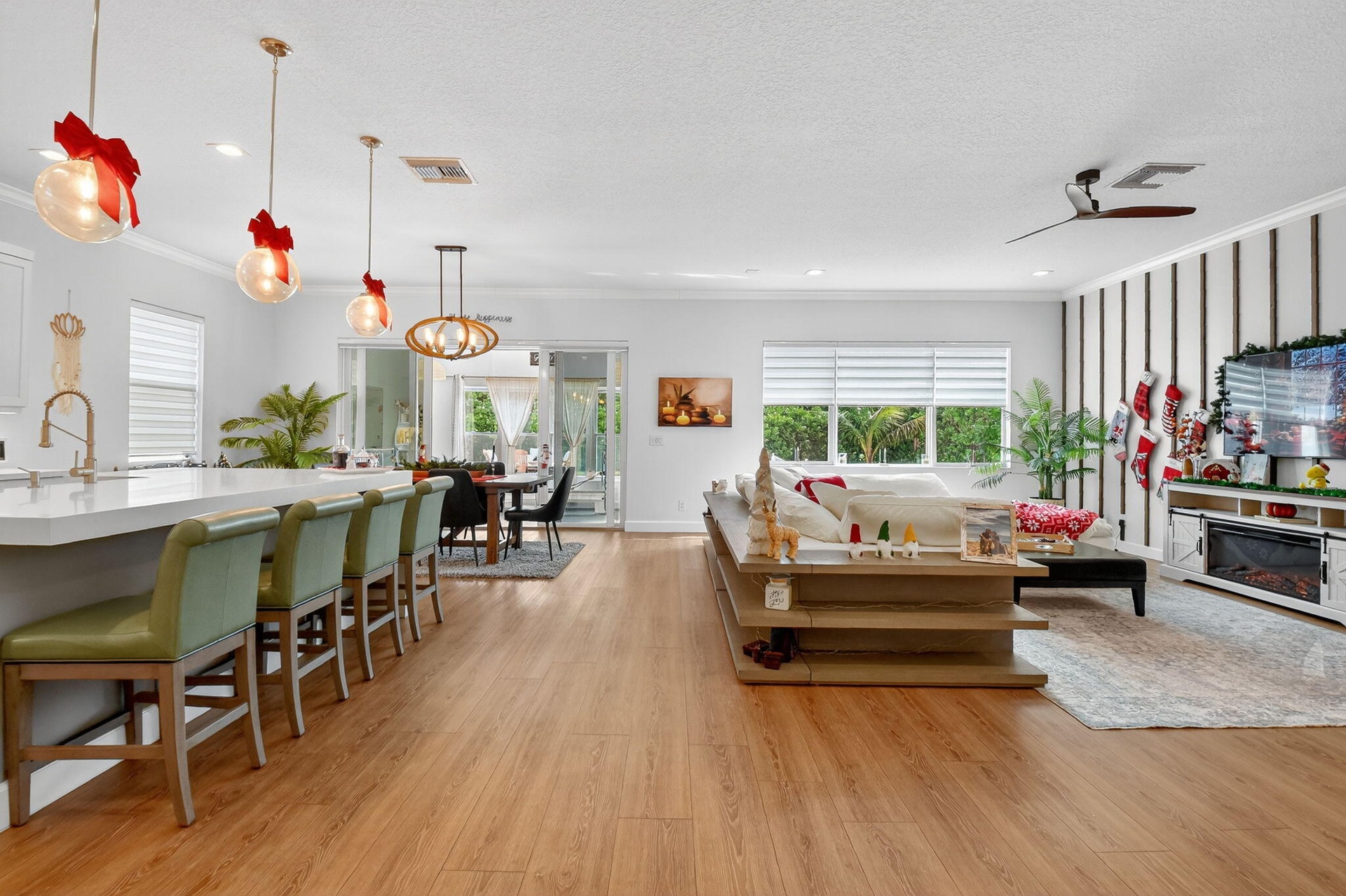 Welcome to this beautifully renovated 4-bedroom, 4-bathroom home with a loft, located in the gated community of Andalucia. This residence features a spacious loft and a chef's kitchen equipped with a gas stove, quartz countertops, premium cabinetry, and designer lighting. The updated flooring and crown molding enhance the home's elegance, while the remodeled primary bath adds modern comfort. Enjoy the bright Florida room that opens directly to a private heated salt water pool and spa surrounded by lush landscaping. Additional highlights include Hurricane impact glass, newer A/C system, upstairs washer/dryer for convenience, tankless water heater and a split 3-car garage with a 240V EV charger hook-up. This home is designed for both luxury and practicality with 100% LED lighting
