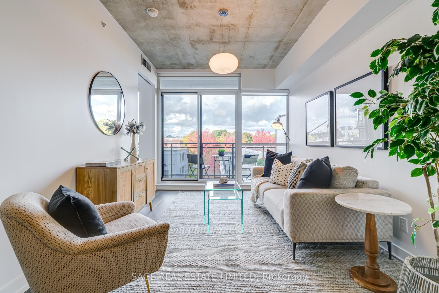 Bright, airy, and impeccably designed. This loft at The Carlaw offers two generous bedrooms, two full bathrooms, and a den that can serve as a dedicated home office or flex space. It's perfectly suited for modern living with 9-foot exposed concrete ceilings, floor-to-ceiling windows, and a north-facing balcony with a gas hookup. The open-concept layout is ideal for both entertaining and daily comfort. The upgraded kitchen features quartz countertops, extended cabinetry, and full-size stainless steel appliances, all finished in a contemporary palette. Hardwood flooring flows seamlessly throughout the space. The locker is conveniently located on the same floor as the unit. Building amenities include a rooftop terrace with a picture-perfect City Skyline View, a fully equipped gym, a party room, and a 24-hour concierge. This loft offers a rare blend of effortless living in the East End, with Crows Theatre and the newly opened Piano Piano just downstairs. The best of Leslieville's shops, cafes, parks, and transit are within steps. Don't miss out on this incredible opportunity. Welcome home.