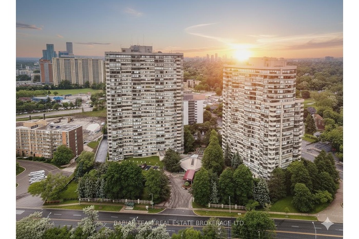 Welcome to Suite #1601 - 2-bedroom plus den, 2-bathroom corner suite boasting panoramic golf course and sunset views in the sought-after Barclay Terrace. Spanning approximately 1,485 sq. ft., this light-filled residence offers generous living spaces, including combined living & dining rooms with a walkout to a covered balcony, a window-wrapped den, a family room with a passthrough to an eat-in kitchen featuring stainless steel appliances. The spacious primary retreat features both a double closet and a walk-in closet, along with an ensuite bath complete with a large soaking tub, separate shower, and vanity. Additional highlights include in-suite laundry and storage locker, and one parking space.Monthly maintenance fees conveniently cover cable TV, A/C, heat, hydro, and water. Residents enjoy an impressive array of amenities such as an indoor pool, fitness centre, squash and tennis courts, sauna, concierge, and visitor parking. Ideally located just steps to charming Islington Village with its shops, cafés, and pubs, the Islington subway, Mimico Creek trails, and Montgomery's Inn with its popular farmer's market. A rare opportunity to own a spacious and sunlit suite in a desirable Etobicoke community.