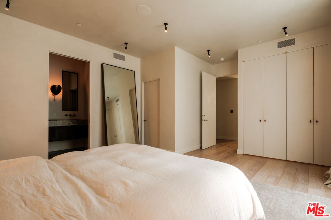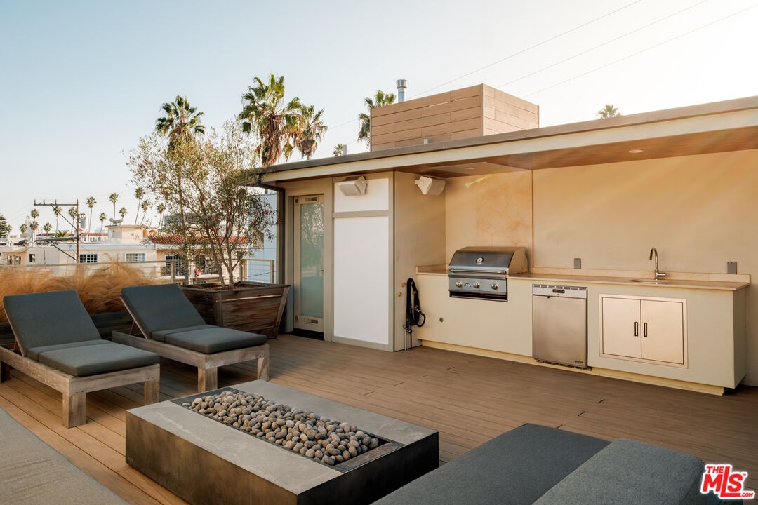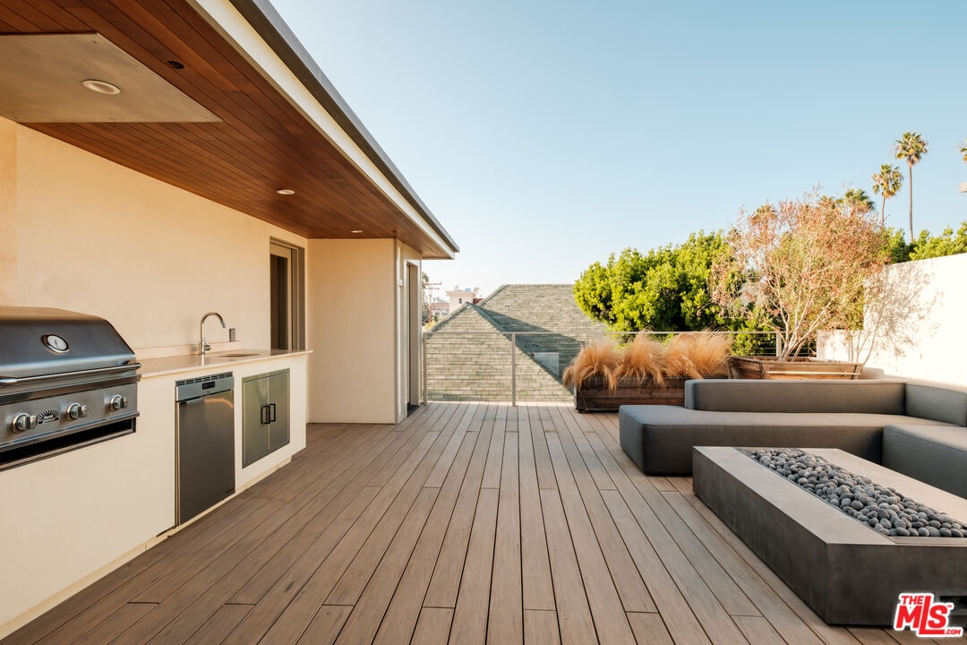 Nestled just five blocks from the Santa Monica Beach, this meticulously crafted townhome offers an incredibly unique opportunity to move into a fully furnished and styled residence. Meticulously executed by a renowned interior designer, this home represents a rare chance to acquire a living space where every detail has been carefully curated.Top-of-the-line finishes, including custom hardware, paint treatments, furniture, and curated art, create an exceptionally design-forward home. These elements combine imported pieces from Europe, South America, and local Los Angeles sources to create a warm, peaceful space filled with light and purposeful flow.The home's interior showcases a thoughtful layout with an elegantly crafted living, dining, and kitchen area. The living room features a Samsung ultra-short throw smart laser home theater projector, creating an immersive entertainment experience. The kitchen boasts unique cabinetry with a custom brass sink and Brazilian quartzite countertop, complemented by a professional-grade Bertazzoni gas range. Adjacent to this space, a versatile first-floor bedroom is currently configured as a high-end home office with built-in cabinetry, desk, and furniture. A full bathroom featuring a Belgian limestone sink, travertine tub, and contemporary shower completes the ground floor.Ascending the stairs reveals a primary bedroom with floor-to-ceiling sliding doors and windows and two closetsincluding a spacious walk-in. The en-suite bathroom features double sinks and elevated fixtures from Waterworks, creating a spa-like retreat. A naturally lit hallway leads to the third bedroom with its own en-suite bathroom.The ~750 sq ft rooftop deck extends the home's living space, featuring a Sol built-in BBQ, Brown and Jordan fire table, and mini fridge. A Sonos sound system throughout the home and deck creates an immersive audio experience. The upstairs sanctuary offers sweeping views of the city and mountains. Located in the acclaimed Roosevelt Elementary School district and steps from Montana Avenue.With a two-car garage featuring built-in storage and direct interior stair access, this property provides seamless urban convenience. List price is for the unfurnished home.