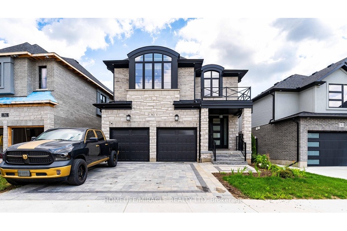 Welcome to 80 Doon Creek! Custom-built detached home by Kenmore located in highly sought-after community of Doon South with 4 bedrooms, 3 baths and an office on the main floor. This detached property boasts a stunning luxury design throughout with 10' ceilings and hardwood flooring on the main floor. Living room features a striking accent wall. The spacious kitchen/living/dining area offers an open concept layout with a large island and breakfast bar. Stainless steel appliances, including a Samsung touch screen fridge, hood range and a bar fridge, add a modern touch. Enjoy ample natural light in the large family room. The primary bedroom features a walk-in closet and ensuite. The double car garage has a separate entrance to the basement. Outside, a stamped driveway adds curb appeal. Steps to schools, parks, trails, public transit. 10 mins to HWY 401, 7/8, shopping amenities and Conestoga college.