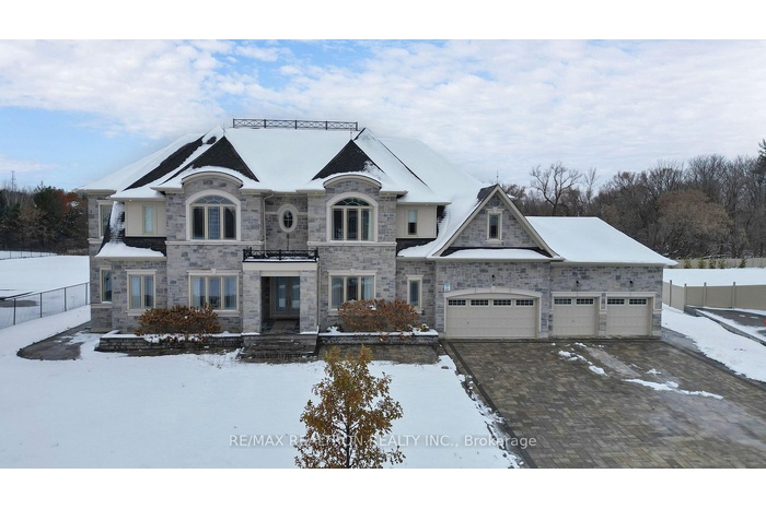 Spectacular-A True Castle-Inspired Masterpiece On Over 1 Acre! Situated on a premium 133Ft x 324Ft estate lot at the end of a quiet cul-de-sac, this residence showcases custom finishes throughout and an impressive 6,739 sq/ft above grade (per MPAC) of extraordinary luxury. Built with exceptional imported materials and superior craftsmanship, this home offers 6 bedrooms, 7 bathrooms, and soaring ceiling heights with 11 ft on the main, 10 ft on the second, and 9 ft in the large ~3,300 sq/ft unfinished basement. The main level features a nanny/in-law 6th bedroom with ensuite & walk-in closet, a private office, and expansive principal rooms. The 22 ft open-to-above family room provides breathtaking views of the massive backyard, lush conservation land, and mature trees. The custom chef's gourmet dream kitchen is adorned with high-end appliances, marble finishes, detailed crown mouldings, elegant hardwood floors, pot lights, and crystal chandeliers - every corner exudes sophistication. Upstairs, you'll find 5 spacious bedrooms each with its own ensuite, including a luxurious primary retreat with a 5-piece spa-like ensuite, a large walk-in closet, and a separate sitting area. Additional highlights include an indoor sprinkler system, oversized septic tank suitable for large families, and remarkable parking capacity with a 4.5-car garage plus 12 additional spots on the newly installed professional interlocking driveway. Outside, endless landscaping, pool, and entertainment possibilities await on this rare, private estate lot. Located in the exclusive enclave of luxury homes known for privacy and tranquility, yet minutes to Lincolnville GO, shops, dining, and all amenities. This home perfectly blends small-town charm with full-service convenience.